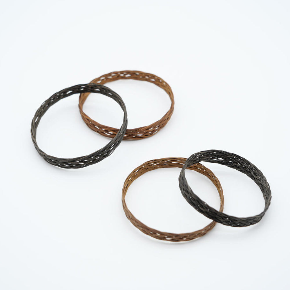 インドネシア先住民の中でも、頑なに独自の文明を保っているバドゥイ族により、1本の籐のつるを器用に手編みして製作したバングル。これらは当方がサイズを別注したもので黒と茶色のそれぞれSとLサイズがございます。手首に通す際には、ビニールの切れ端等を内側に入れ、回しながら押し込んで下さい。