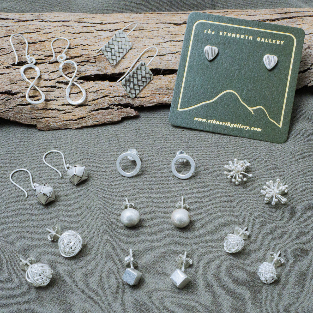 タイ北部からミャンマーにかけて分布する少数民族、カレン族が製作したシルバーアクセサリー。92.5%以上の高純度のシルバーで、軽くて柔らかいのが特徴です。さりげなく特徴的なデザインでとても付けやすいです。こちらは全てピアスタイプになります。黒ずみなどの使用感が気になる場合は、歯磨き粉で擦ると良くなります。