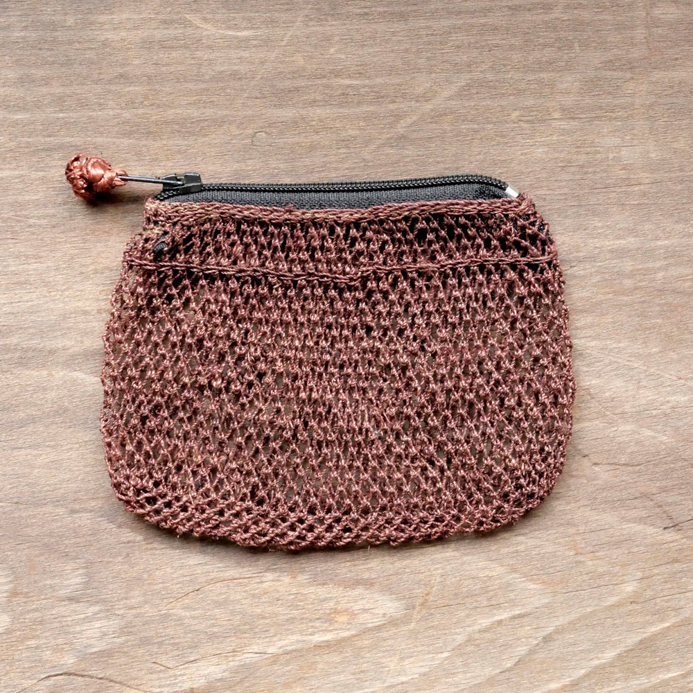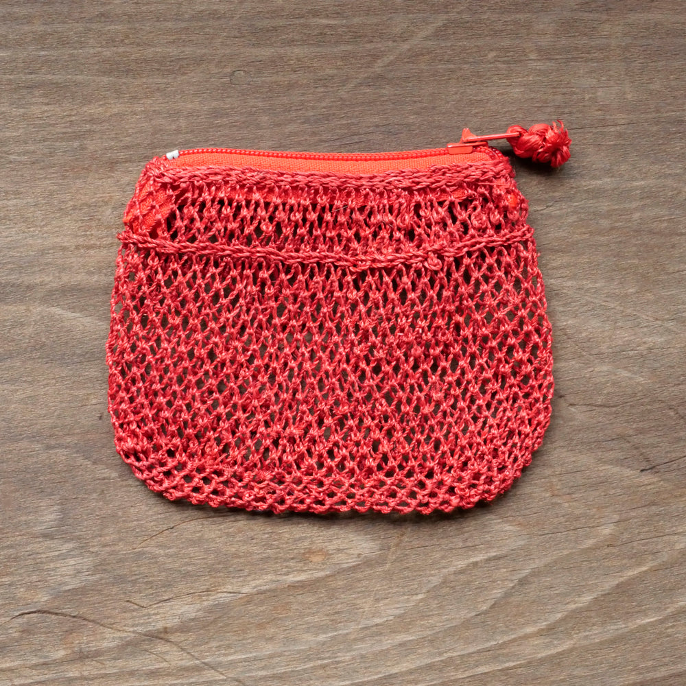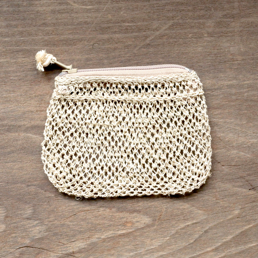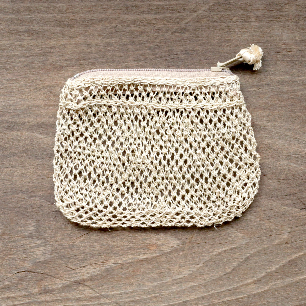 古くはラオスのカム族によって、魚の網を編むようにして作られていた、葛の繊維で出来たポーチ。シースルーでプリミティブな雰囲気がオシャレです。こちらは小型のコインケースサイズのもので中身が見えるので便利です。ファスナー部分にはタッセルが付いています。レッド、ナチュラル、ブラウン、ブルーの4色展開で、生成りのナチュラル以外はすべて現地の植物で染められています。