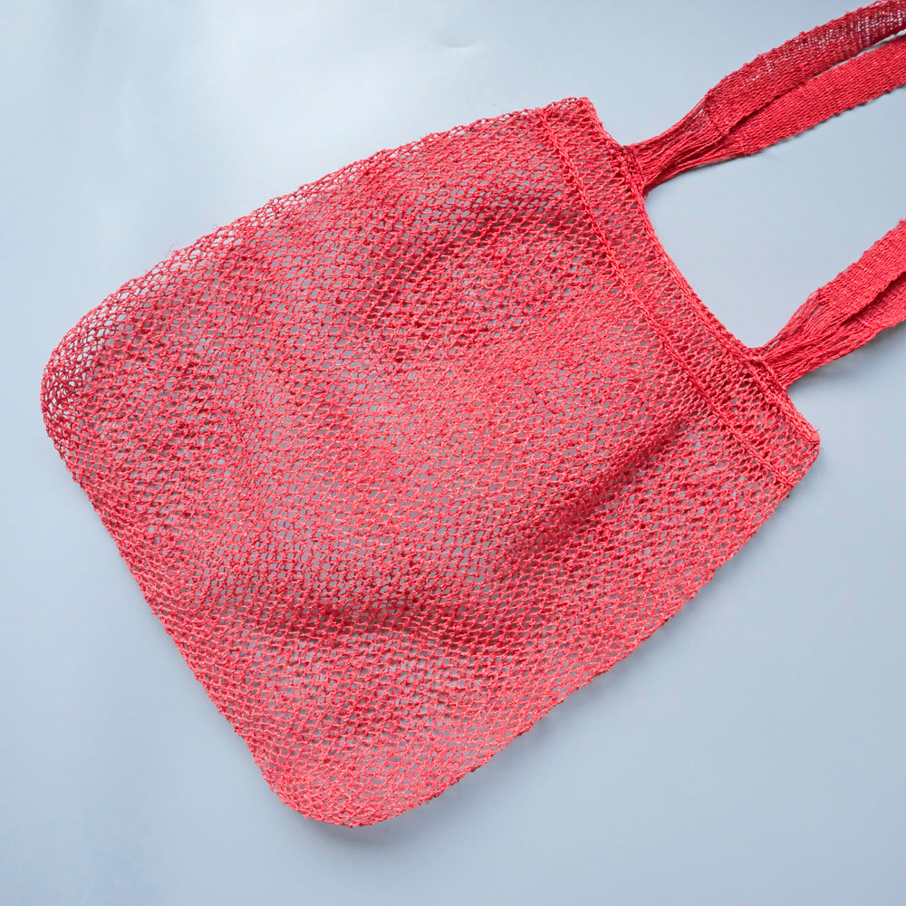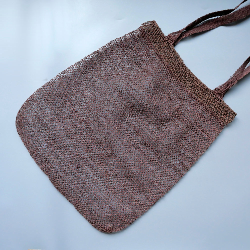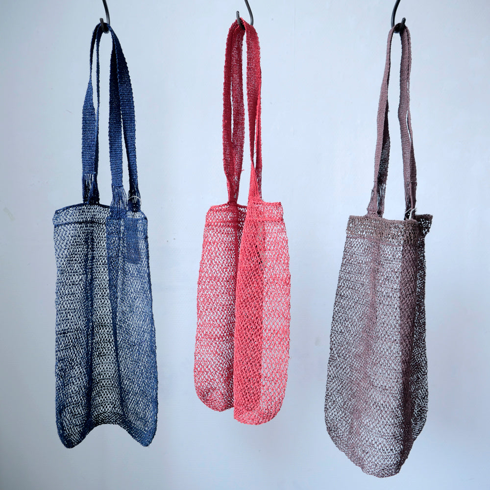 古くはラオスのカム族によって、葛の繊維を魚の網を編むようにして作られたバッグ。シースルーでプリミティブな雰囲気が素敵です。こちらは縦長のA4サイズが入るくらいの使い勝手が良い大きさです。ブルー、レッド、ブラウン、ナチュラルの4色展開で、すべて現地の植物で染められています。
