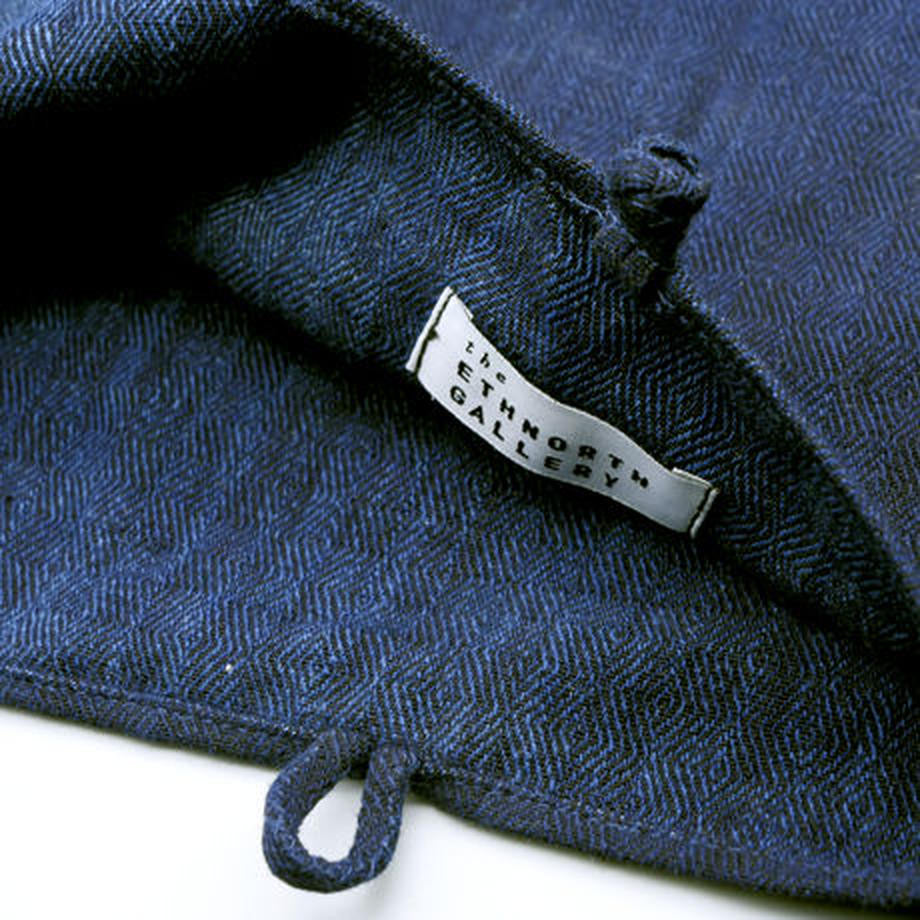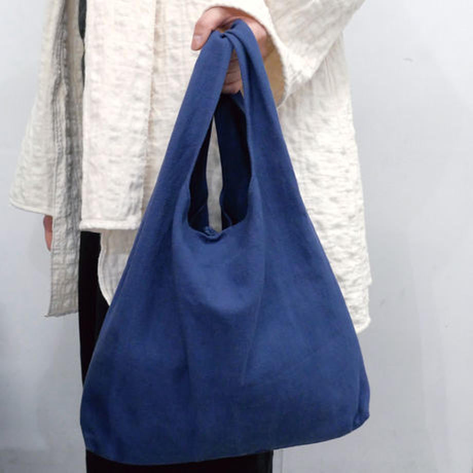 中国南部の貴州省のプイ族の手織り生地と藍染を使用したワンマイルバッグ。ちょっと したお出かけに便利なサイズで、かさばらないので折りたたんでカバンにしまっておく ことも可能です。物凄く細かい手織り模様が入っています。