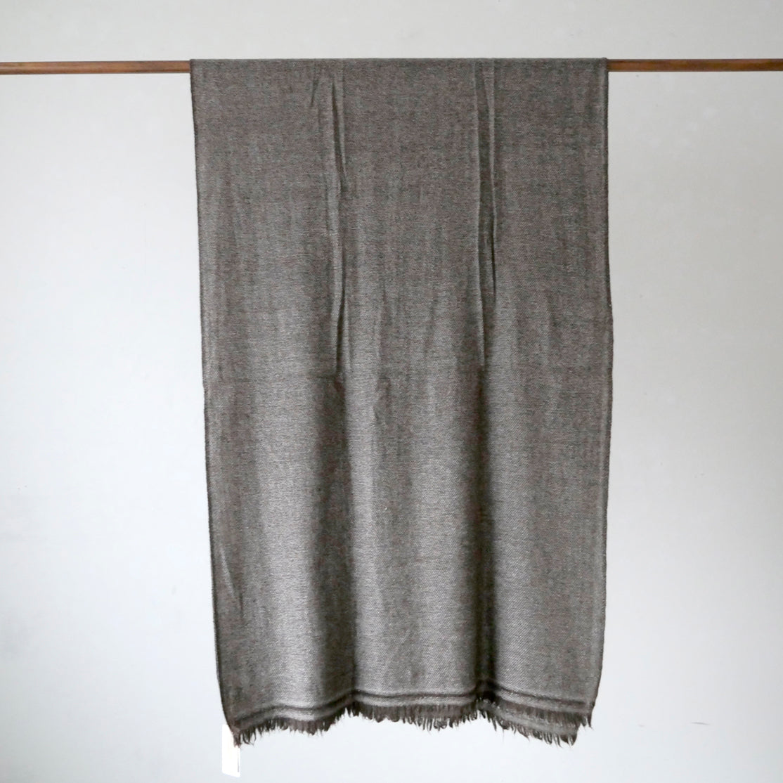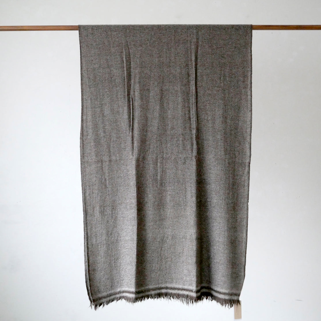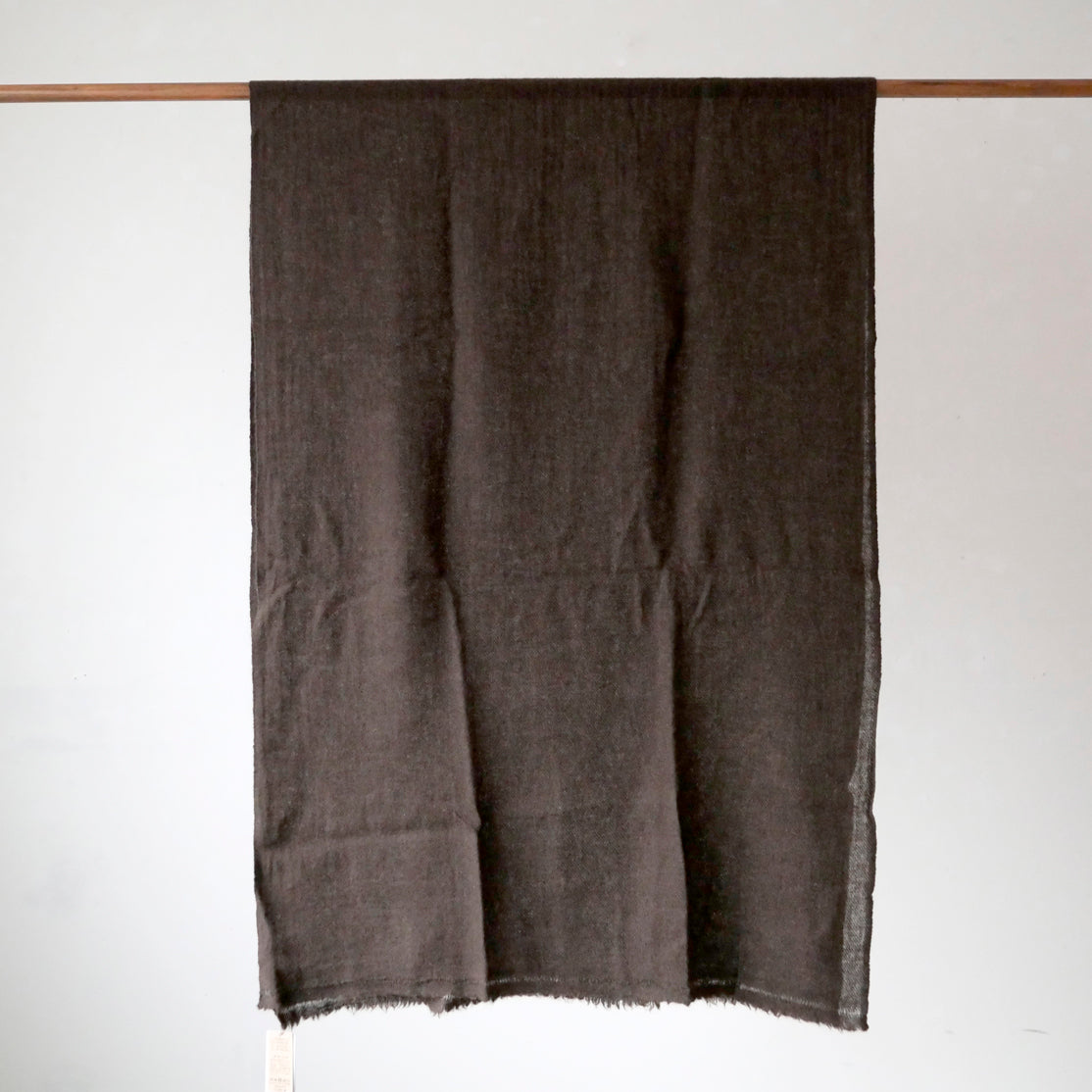 カシミヤ同様に滑らかな柔らかさや、高い保温性と通気性を兼ね備えたヤクの手織りストール。ヤクはチベット高原を中心とする高い標高に生息するウシ科の動物で、一頭から取れる毛の量が限られているので、とても貴重な素材です。また毛玉になりにくいという特性があるのも嬉しいです。お洗濯の際にはドライクリーニングに出してください。
