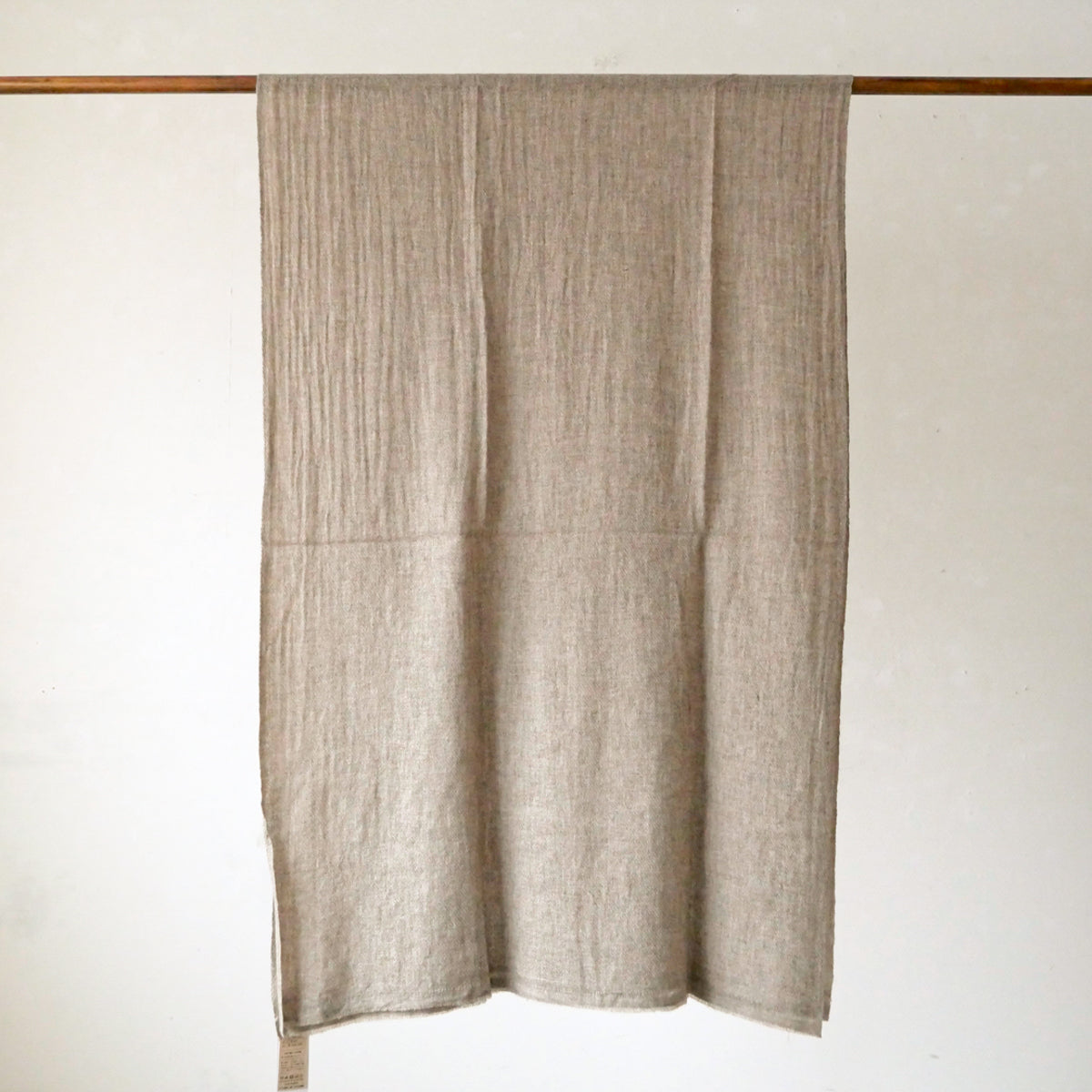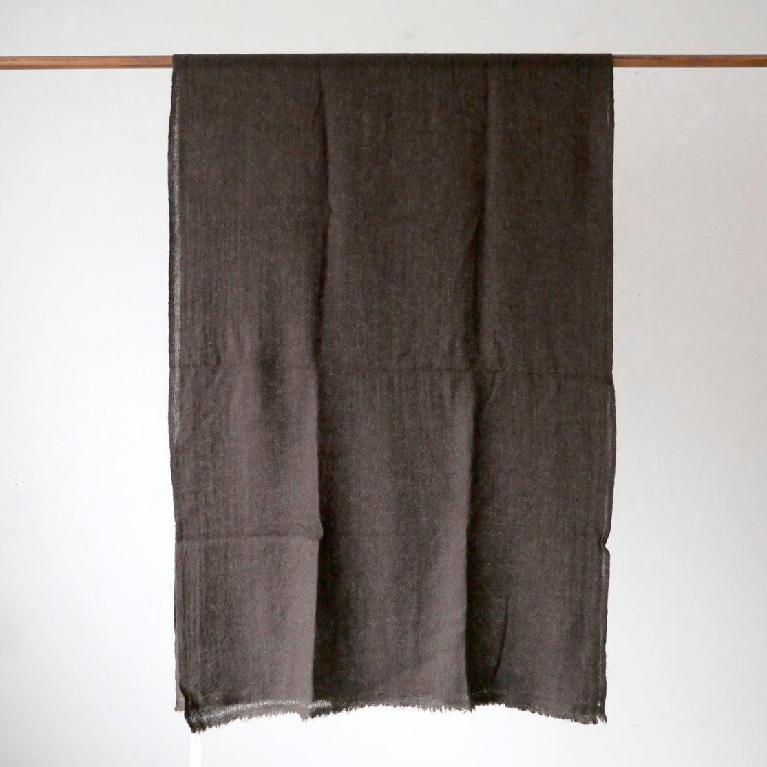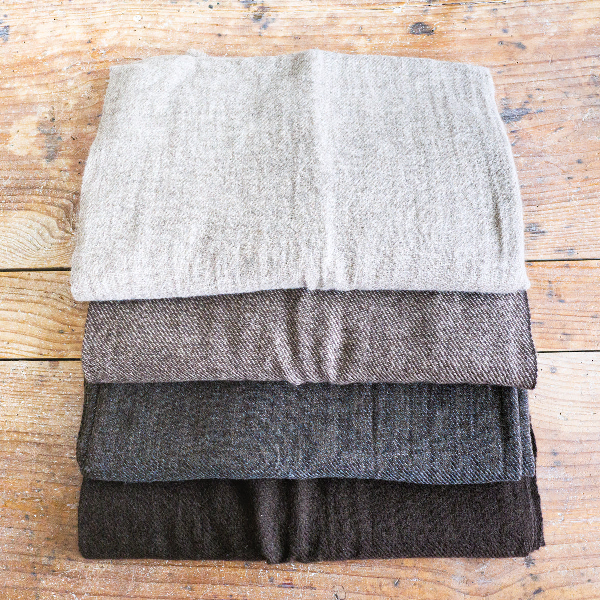 カシミヤ同様に滑らかな柔らかさや、高い保温性と通気性を兼ね備えたヤクの手織りストール。ヤクはチベット高原を中心とする高い標高に生息するウシ科の動物で、一頭から取れる毛の量が限られているので、とても貴重な素材です。また毛玉になりにくいという特性があるのも嬉しいです。お洗濯の際にはドライクリーニングに出してください。