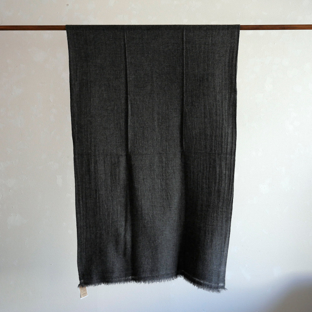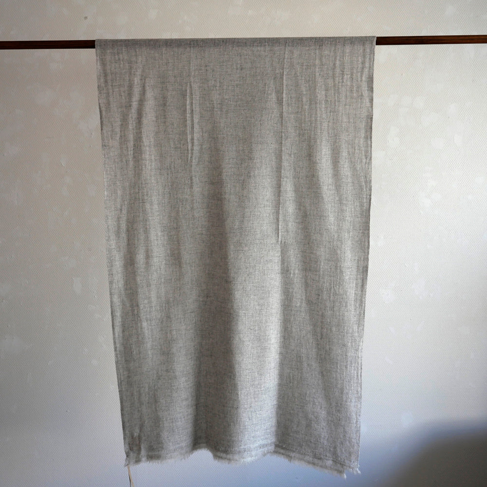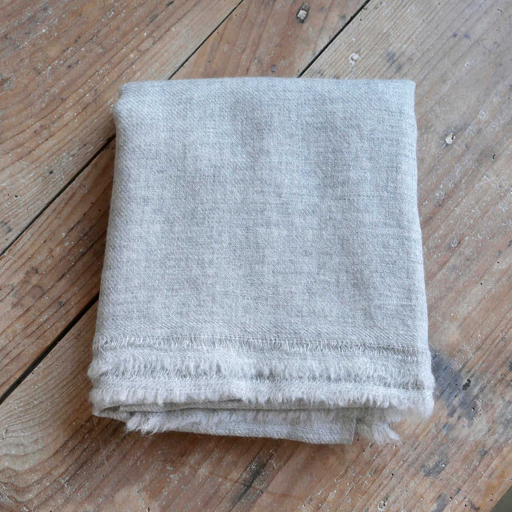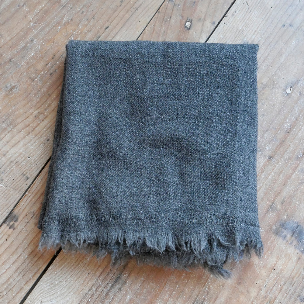 とても繊維が細く弾力性があり、極上の柔らかさを誇る高級素材である手織りのカシミヤのストール。ヒマラヤ山脈に生息する山羊の毛を使用したもので、こちらは原毛色でウールとの混紡タイプになります。保温性や保湿性に優れており、とても重宝します。お洗濯の際にはドライクリーニングに出してください。