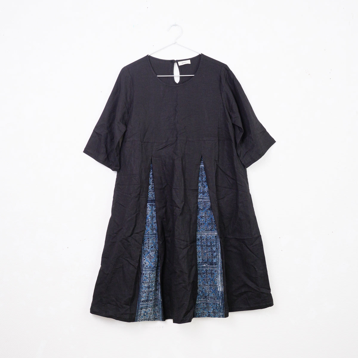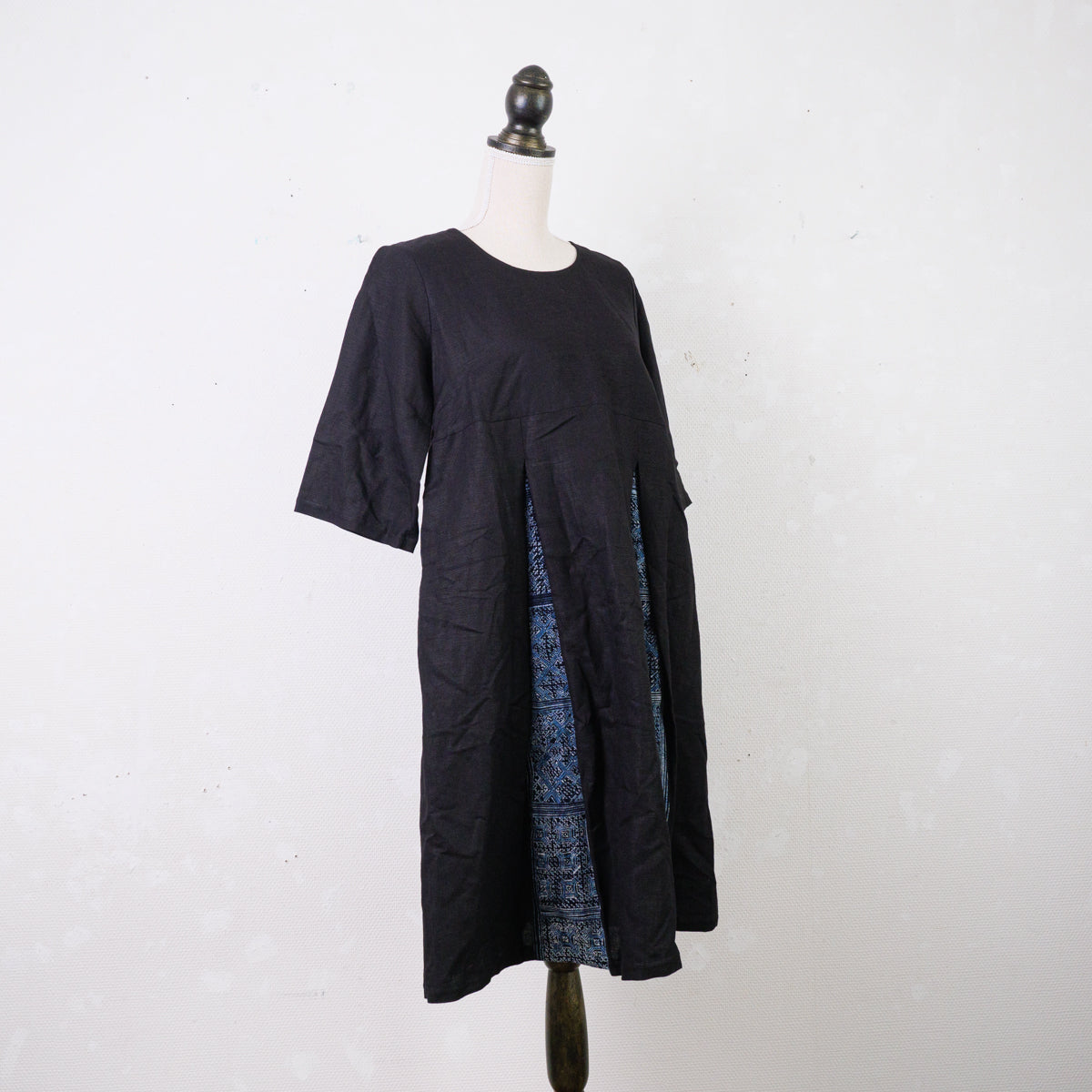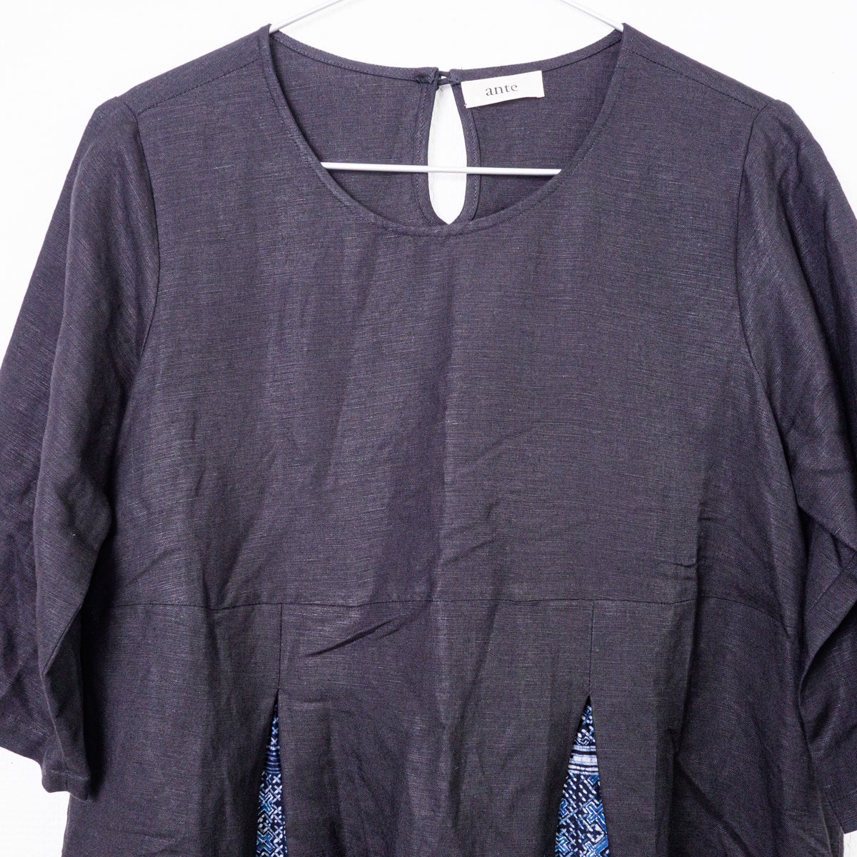 ベトナムのハノイを拠点にアパレル服を展開している日本ブランドante(アンテ)による人気のワンピース。ポイントとしてあしらわれている、ろうけつ染め布は現地の少数民族黒モン族のもので、1つとして同じものがございません。