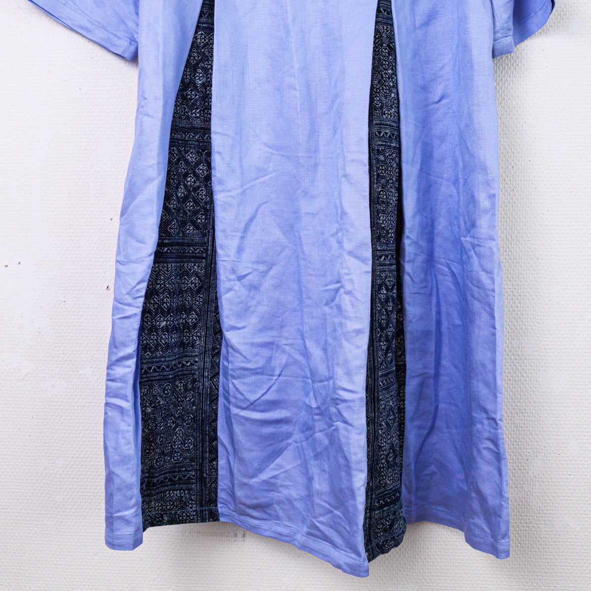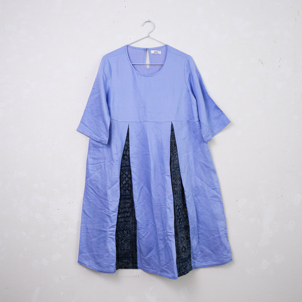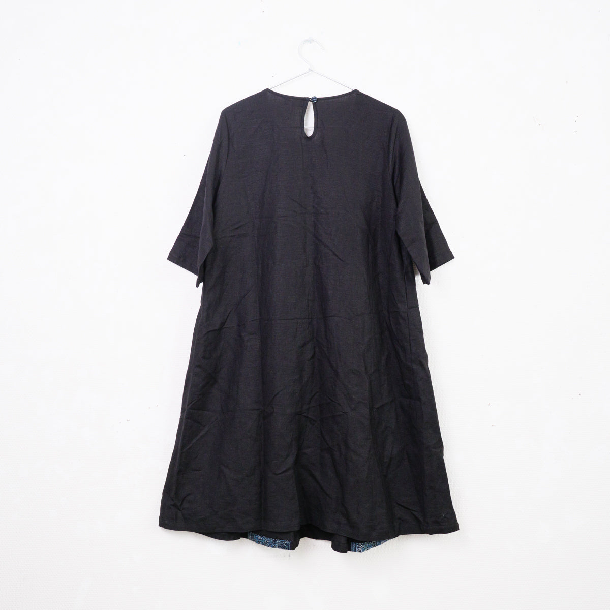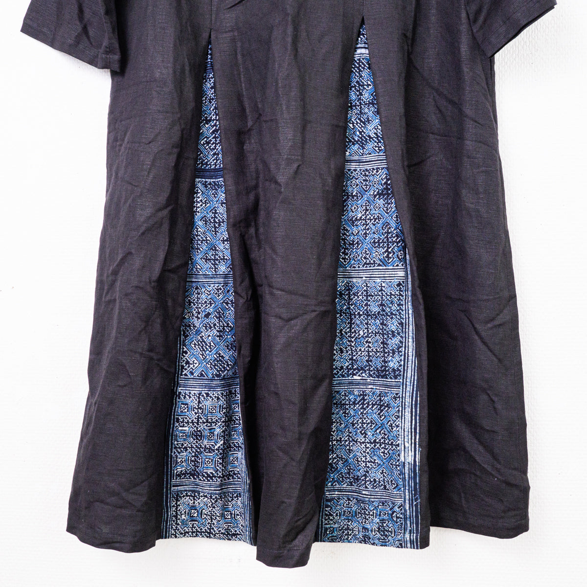 ベトナムのハノイを拠点にアパレル服を展開している日本ブランドante(アンテ)による人気のワンピース。ポイントとしてあしらわれている、ろうけつ染め布は現地の少数民族黒モン族のもので、1つとして同じものがございません。