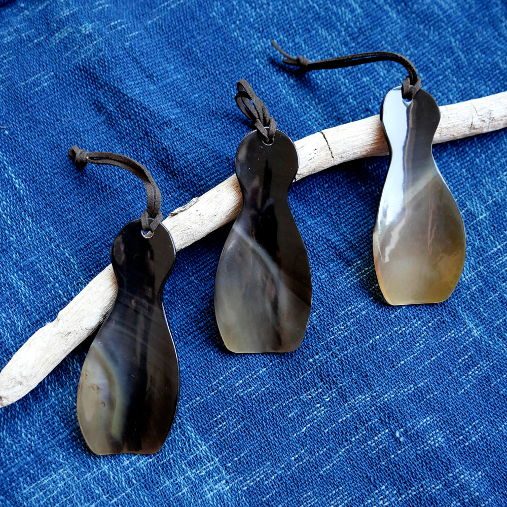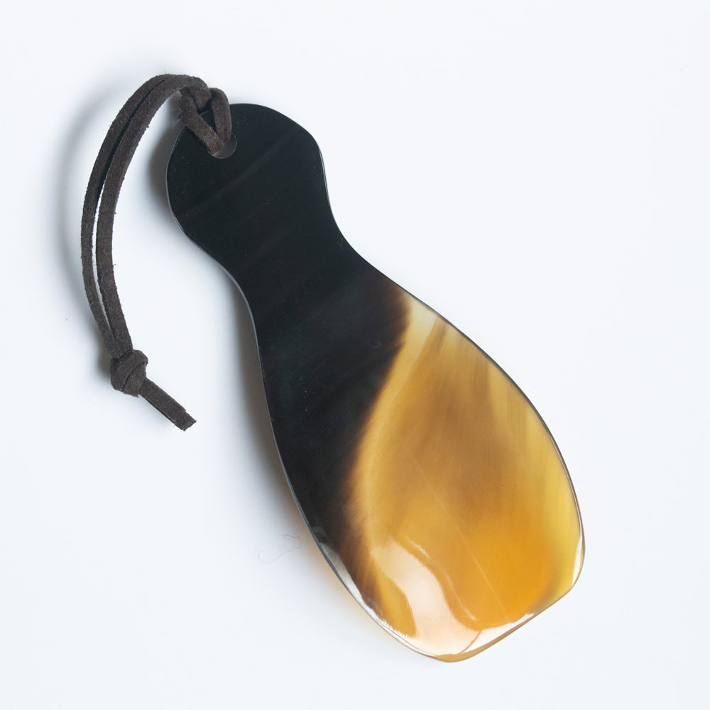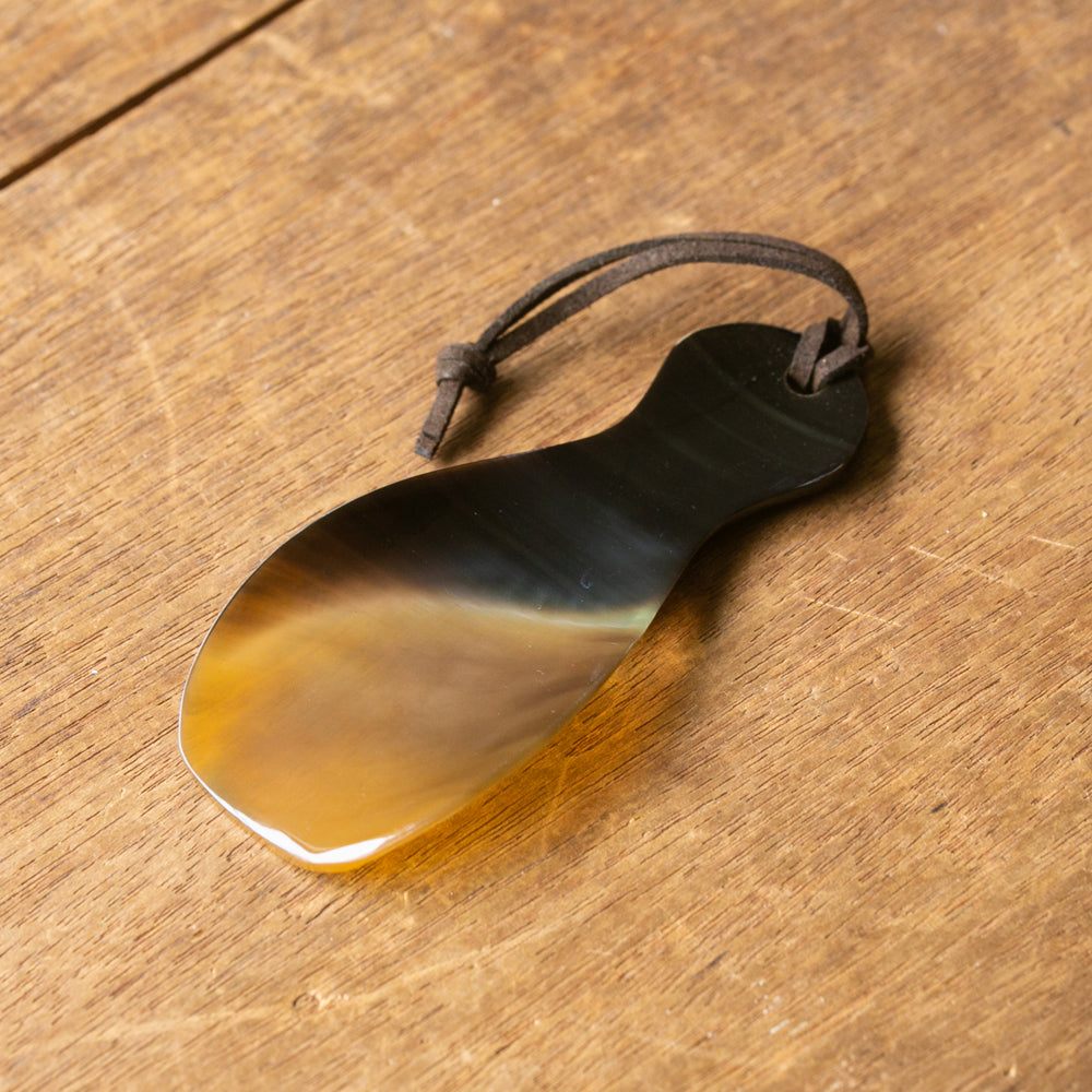 水牛の角を整形、手彫りして制作された美しい靴べら。どれも水牛の角そのもののお色なのですが、一つとして同じものがございません。小型なので、携帯性に大変優れています。