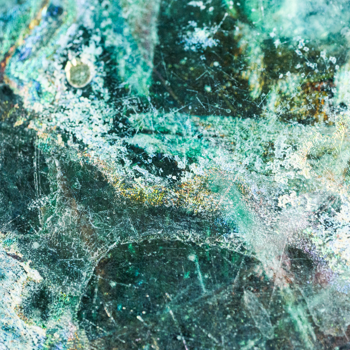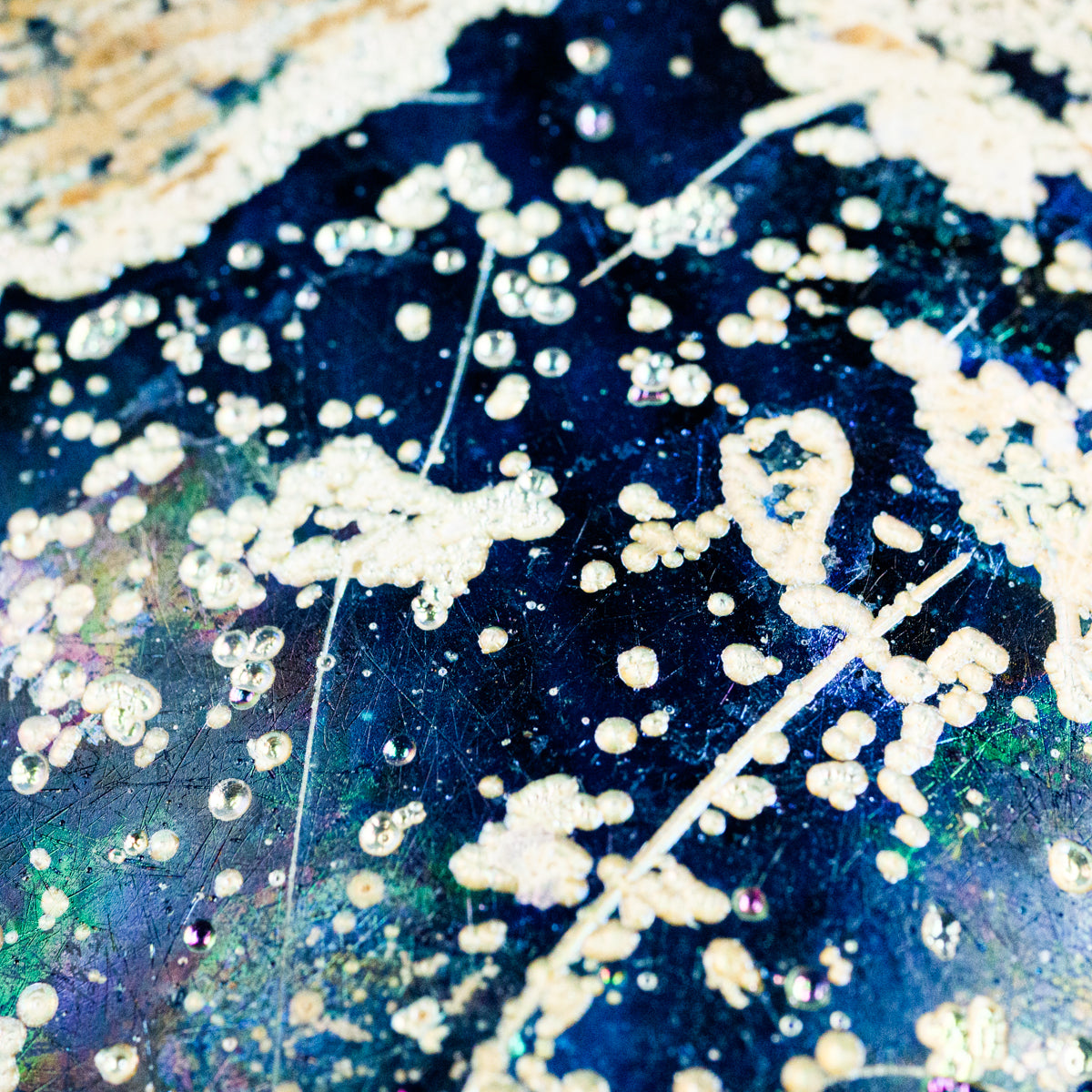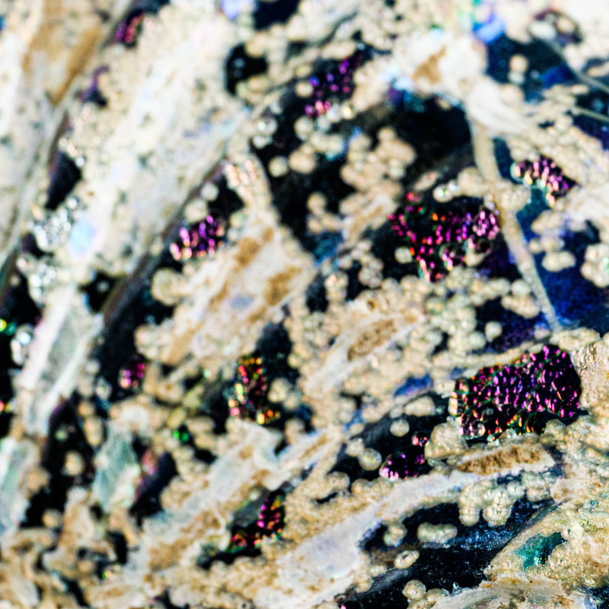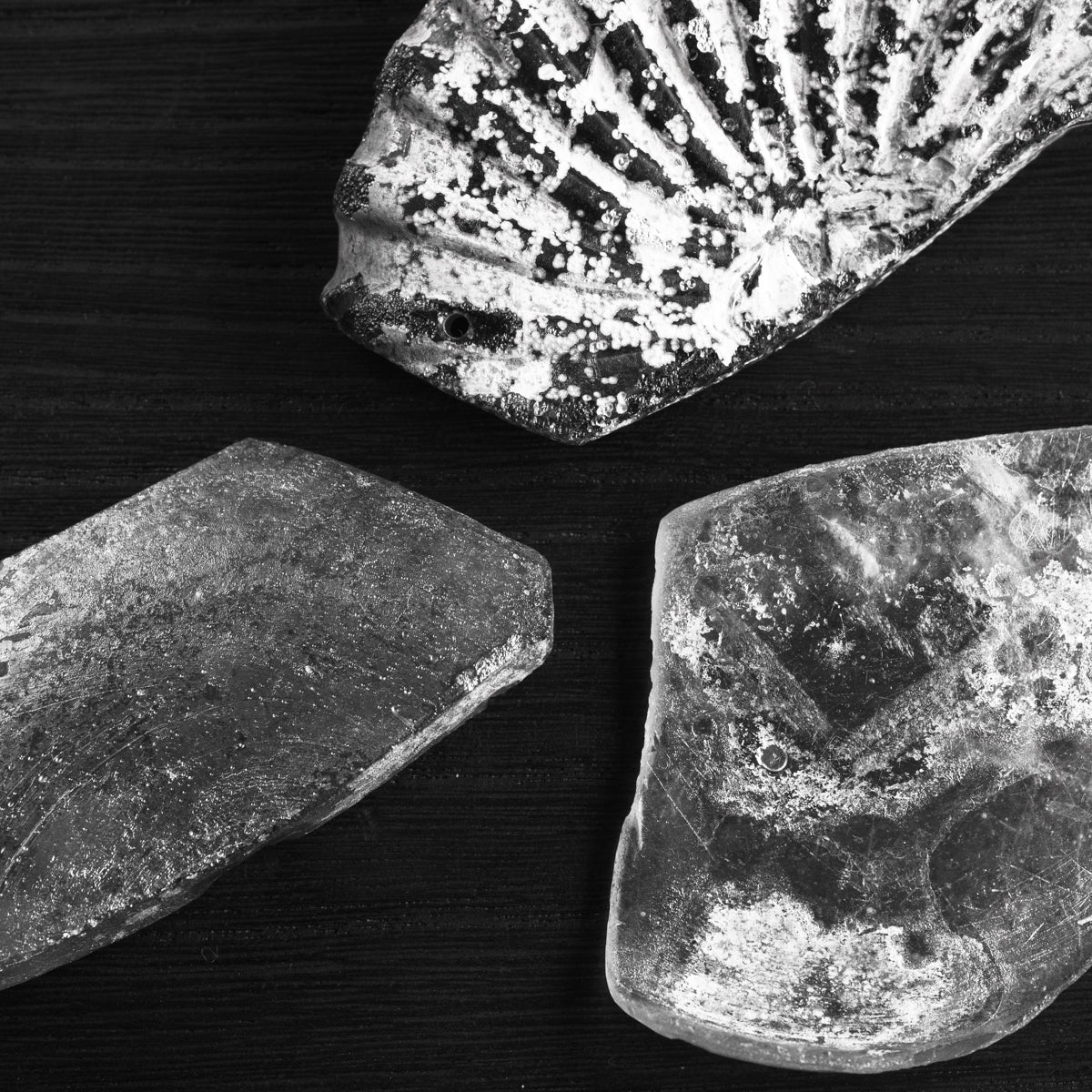 今から約1600年から2000年前のローマ時代からササン朝ペルシャ時代にかけて作られたガラス製品はローマングラスと呼ばれています。時代に渡る厳しい自然の中で、砂はガラスの表面に化学反応を起こさせ、銀化と云われる荘厳な輝きを与えました。こちらはその美しい破片たちになり、中くらいのサイズのものになります。