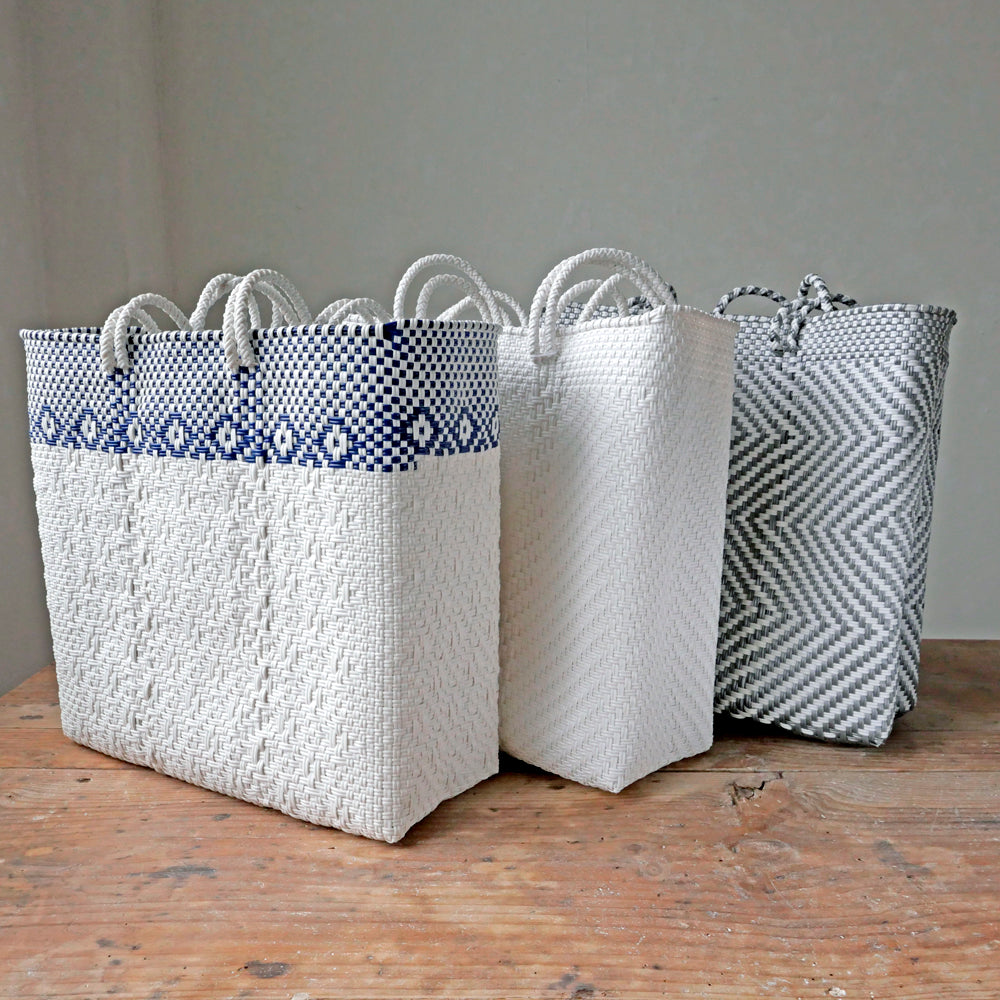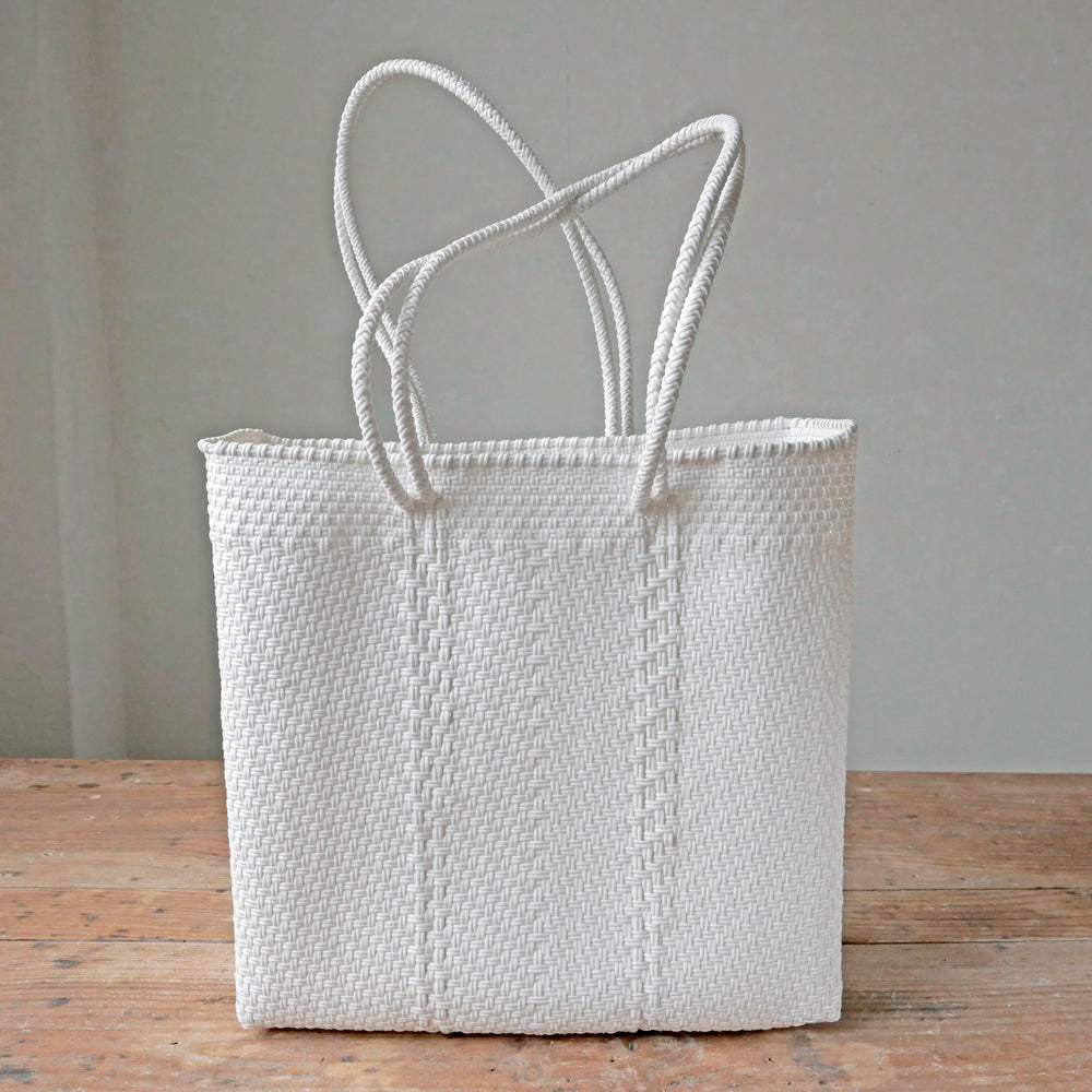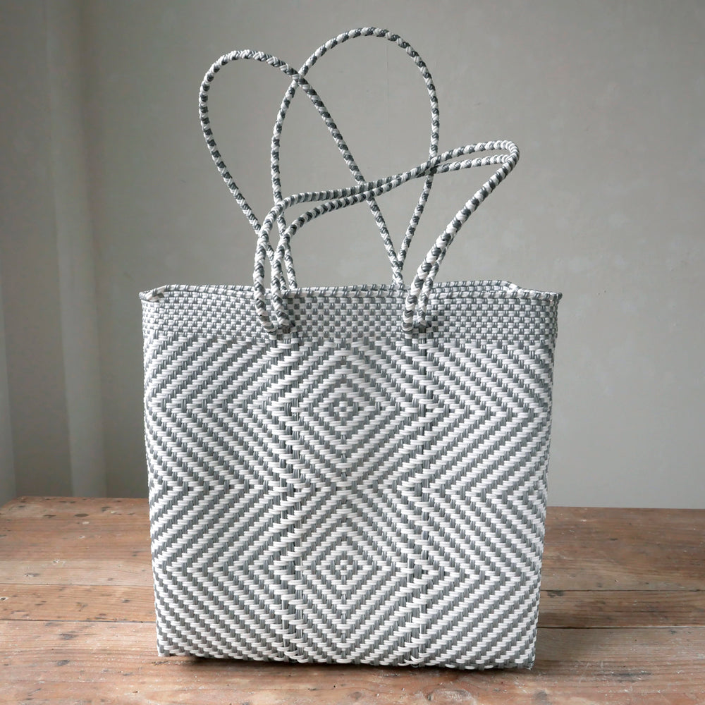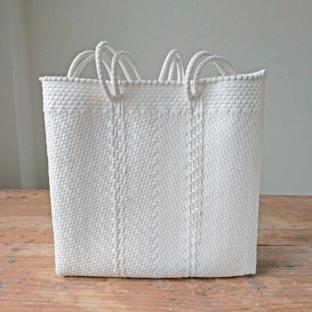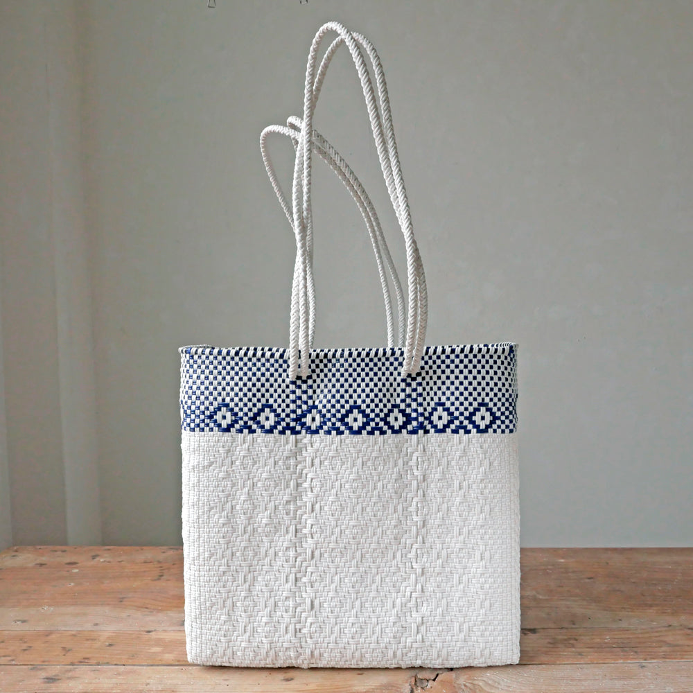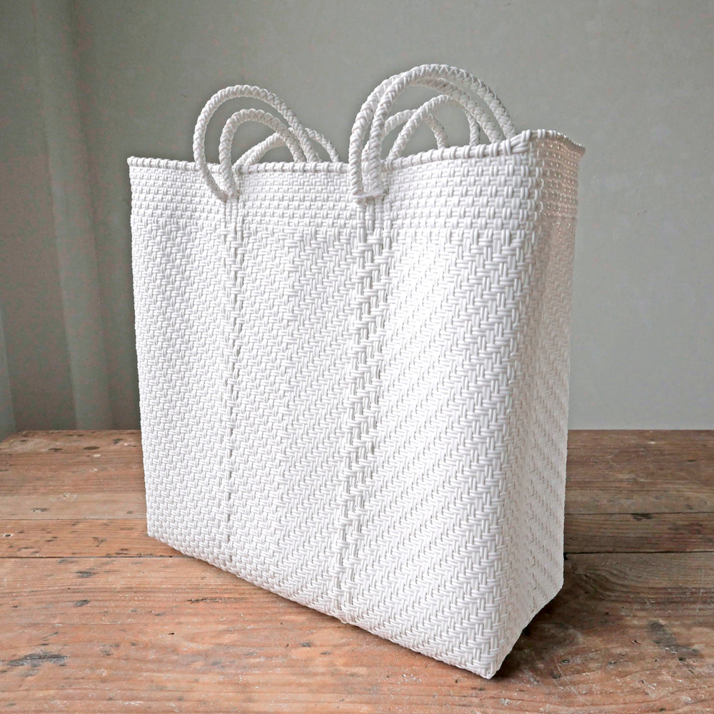 メキシコ名物の手編みのメルカドバッグ。メルカドバッグとは市場バッグの意味で、強度が強くて軽いので、市場でのお買い物に重宝されております。濡れてもさっと拭くだけで済むので、ビーチサイドでも活躍します。ちょっとしたお買い物にとてもオススメです。こちらはたっぷり入るMサイズになります。持ち手が長く、肩に掛けるタイプとなりますが、重さの負担軽減のために持ち手が二重になっているタイプです。