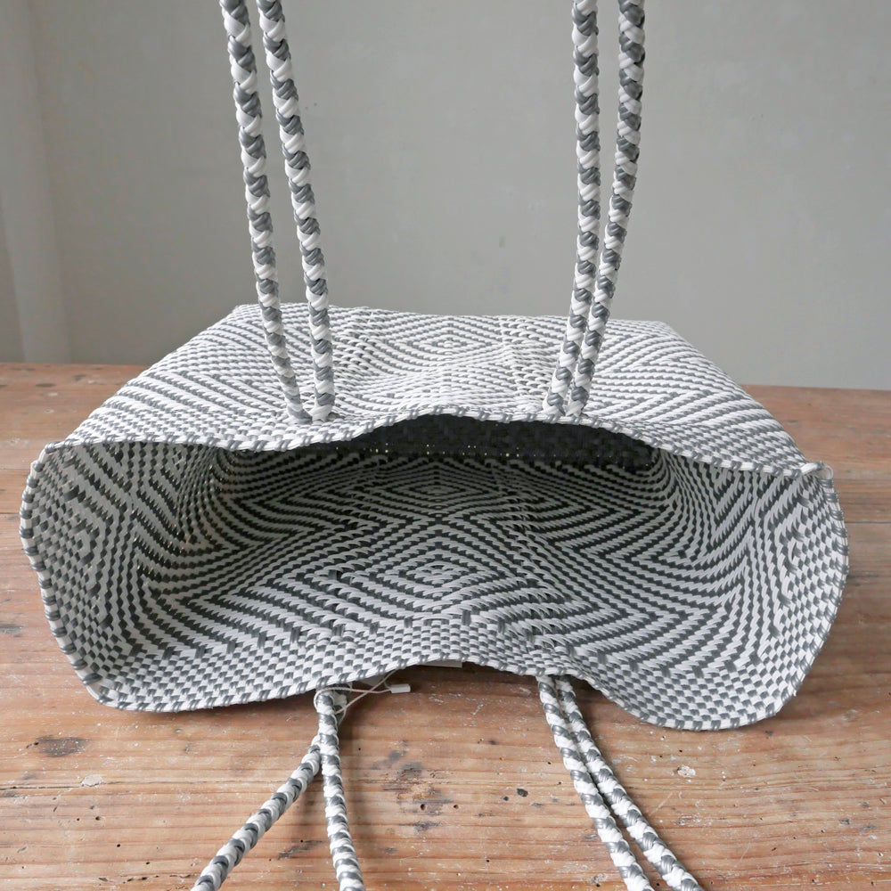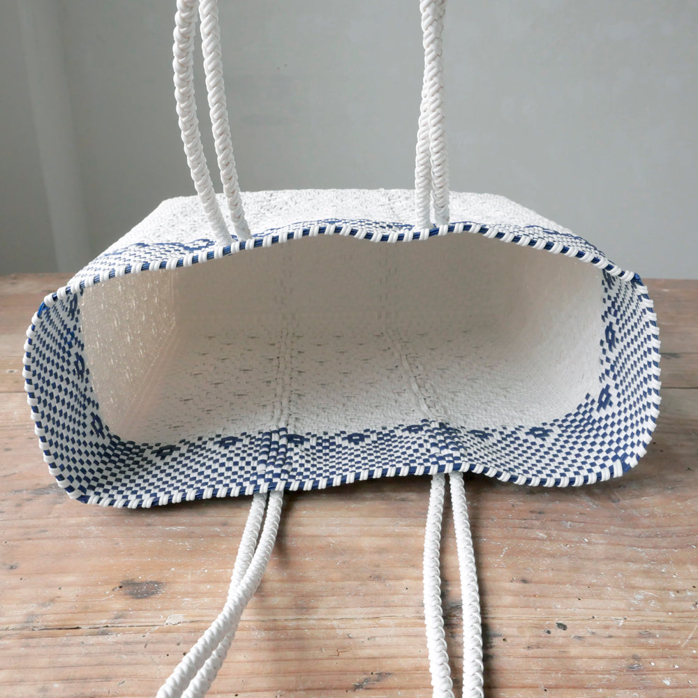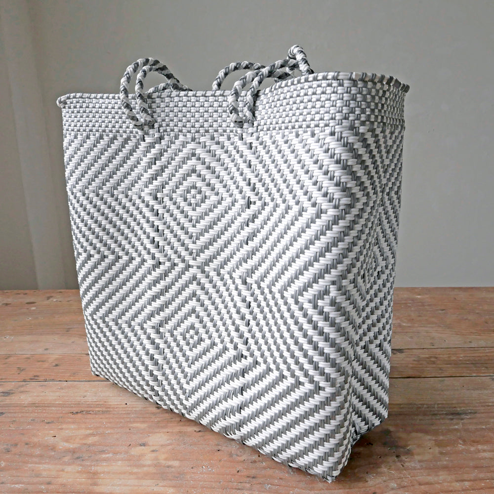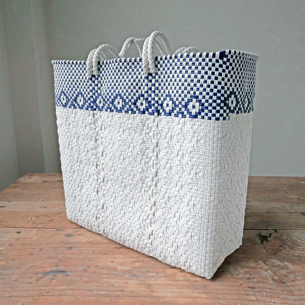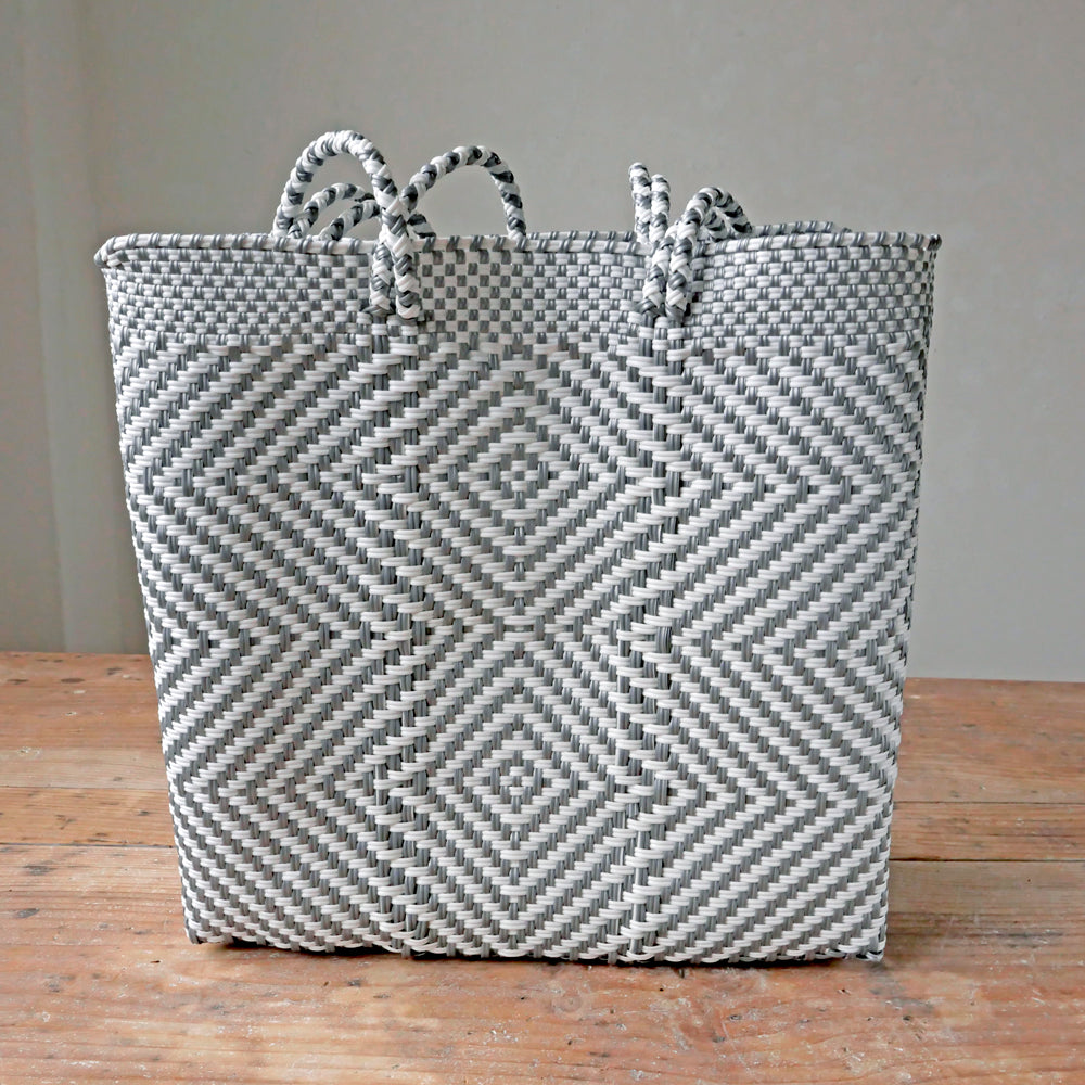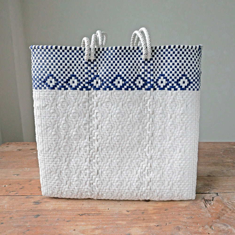 メキシコ名物の手編みのメルカドバッグ。メルカドバッグとは市場バッグの意味で、強度が強くて軽いので、市場でのお買い物に重宝されております。濡れてもさっと拭くだけで済むので、ビーチサイドでも活躍します。ちょっとしたお買い物にとてもオススメです。こちらはたっぷり入るMサイズになります。持ち手が長く、肩に掛けるタイプとなりますが、重さの負担軽減のために持ち手が二重になっているタイプです。