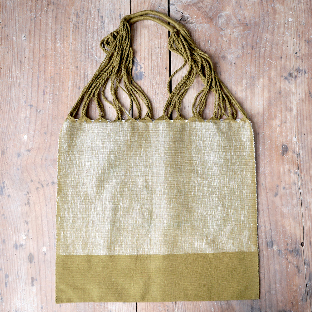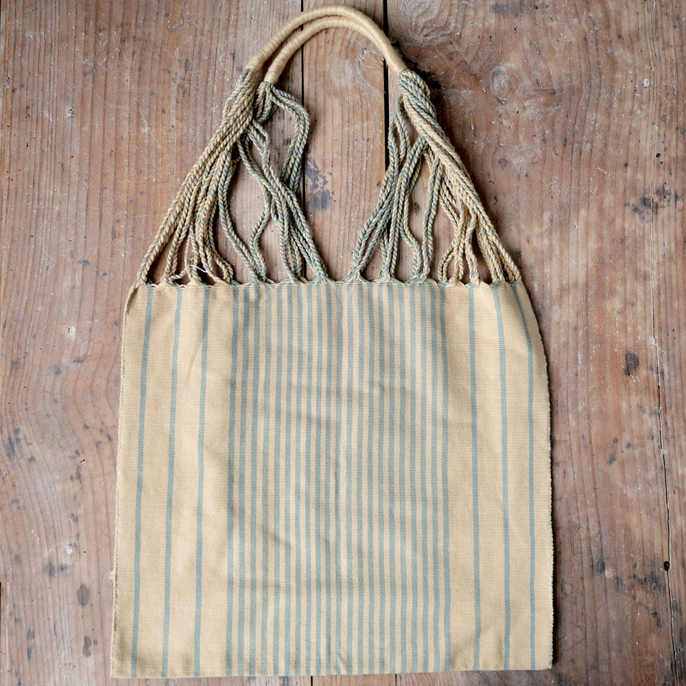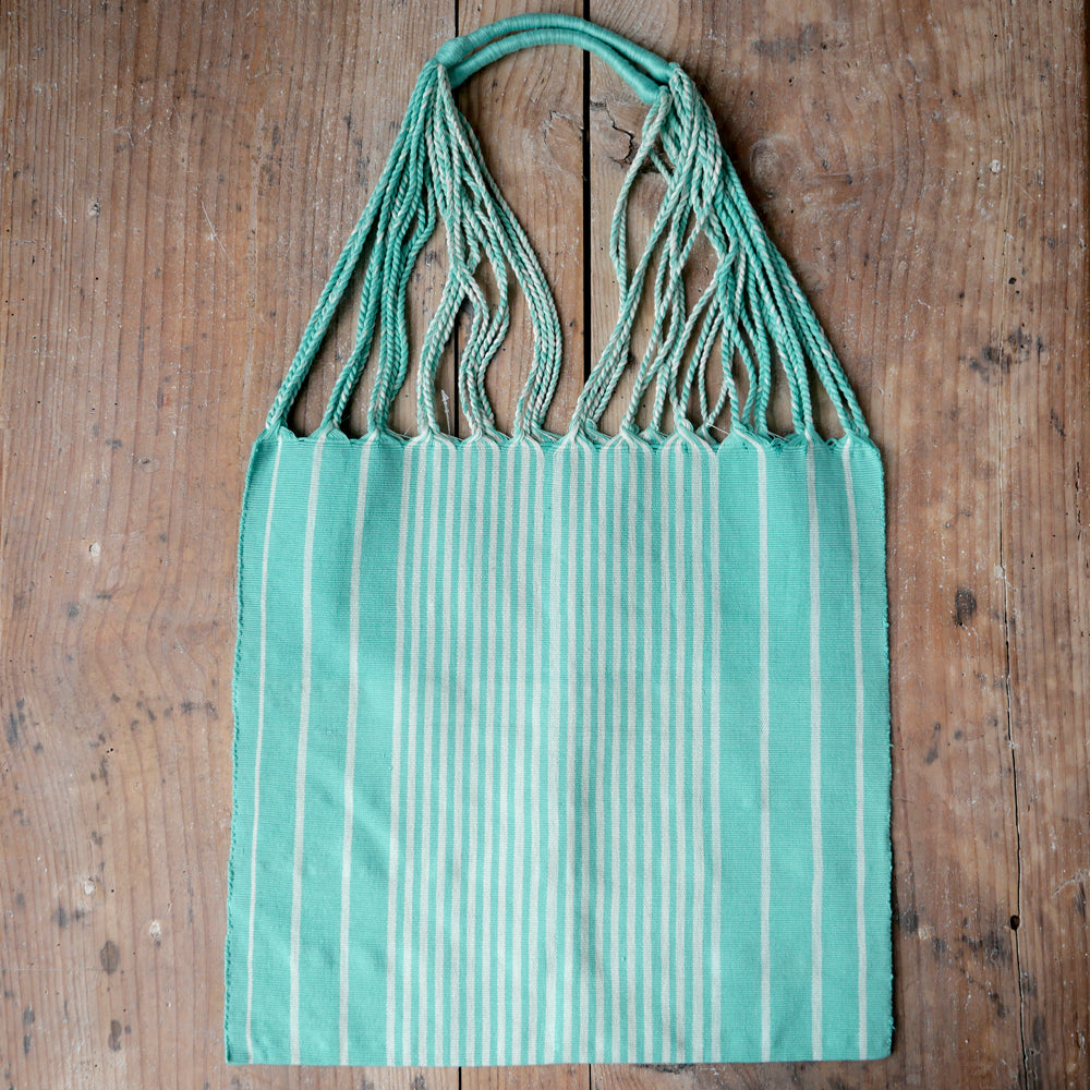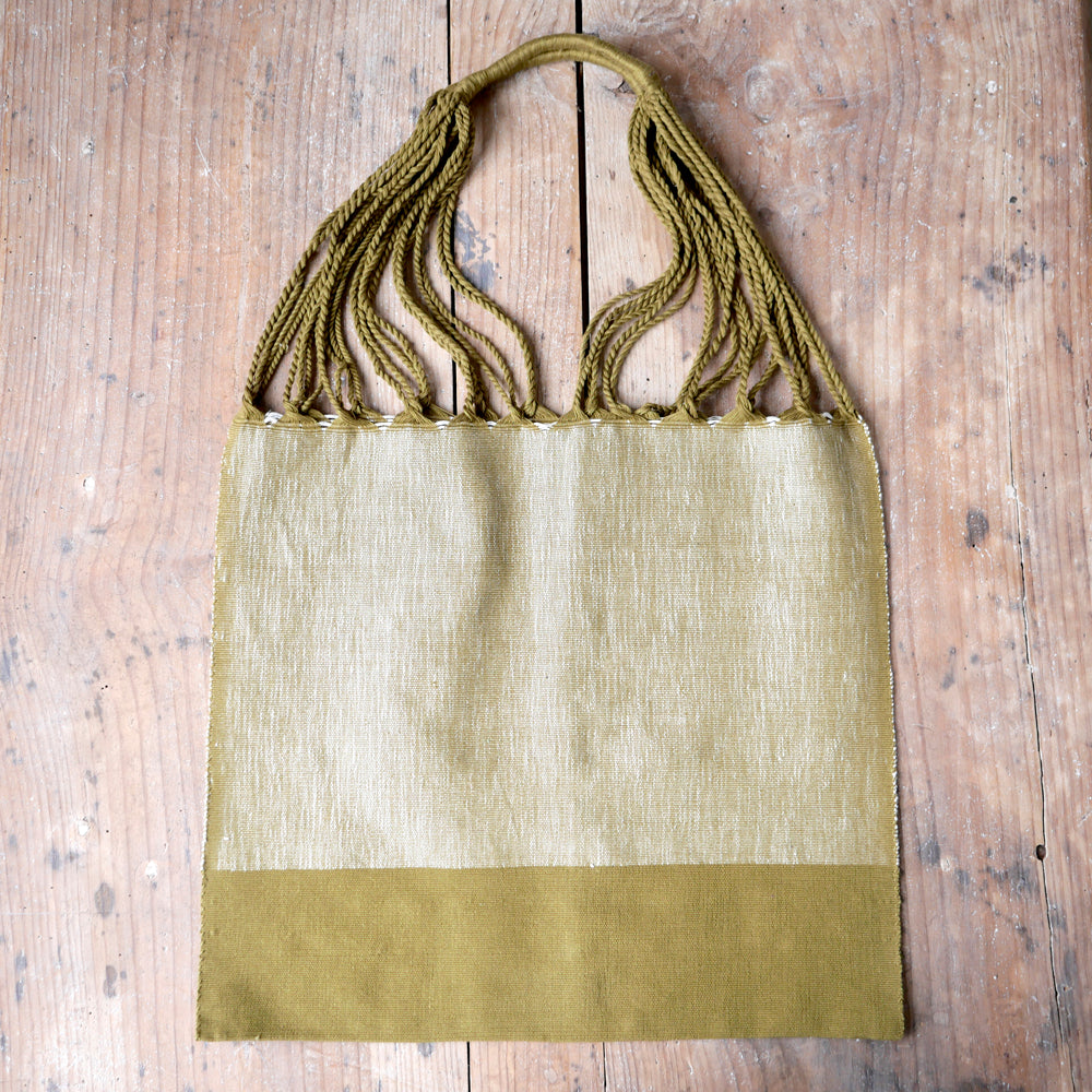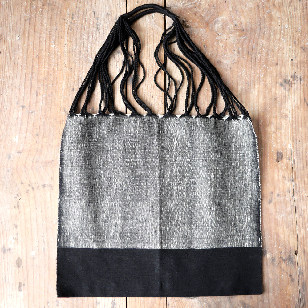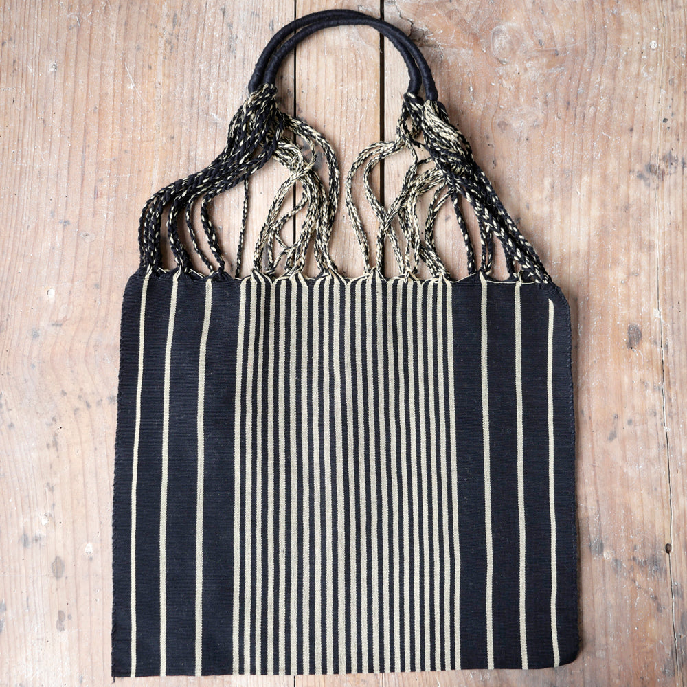 大人気のメキシコはチアパス州の手織り生地を使用したハンモックバッグ。上から広げると、まるでハンモックのような形をしております。布端のフリンジを持ち手にした独創的なデザインがなんとも可愛らしいです。マチはございませんが、見た目以上にたっぷり入り、物を入れた時の形もふんわりしていて綺麗です。こちらはMサイズになります。