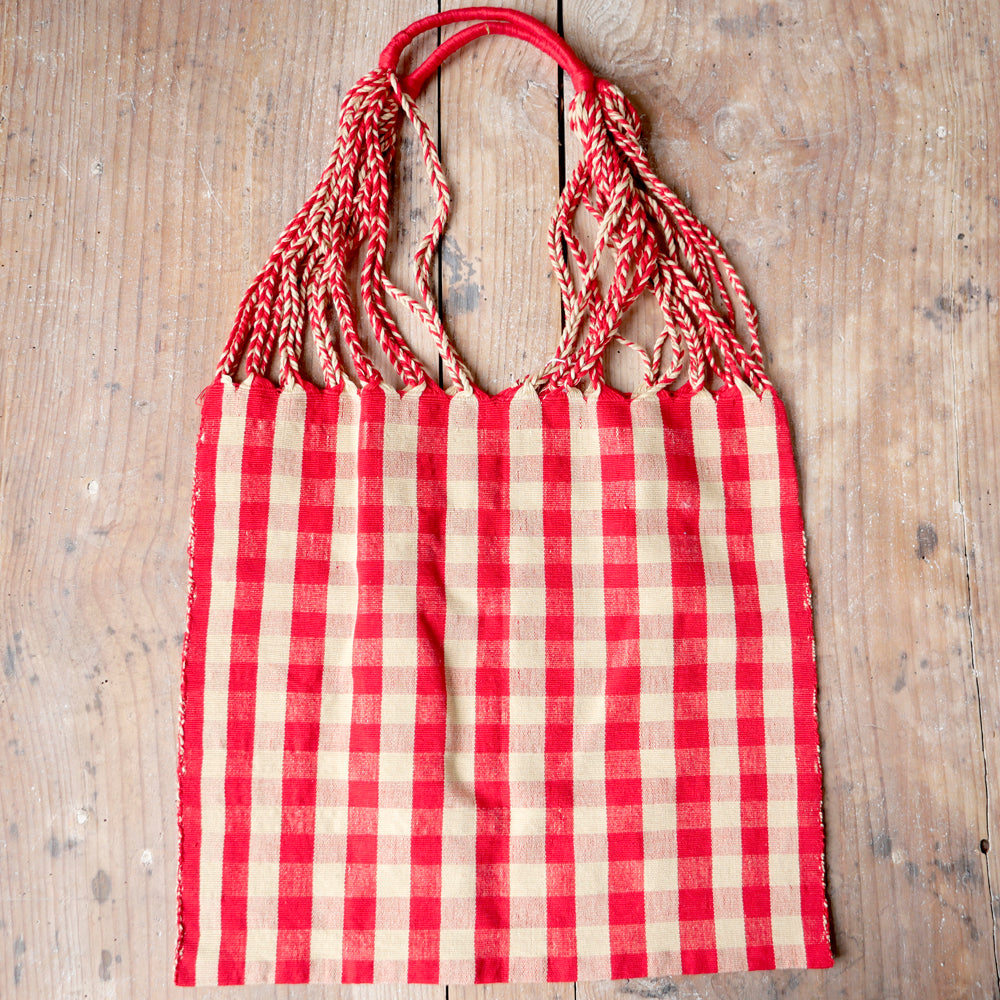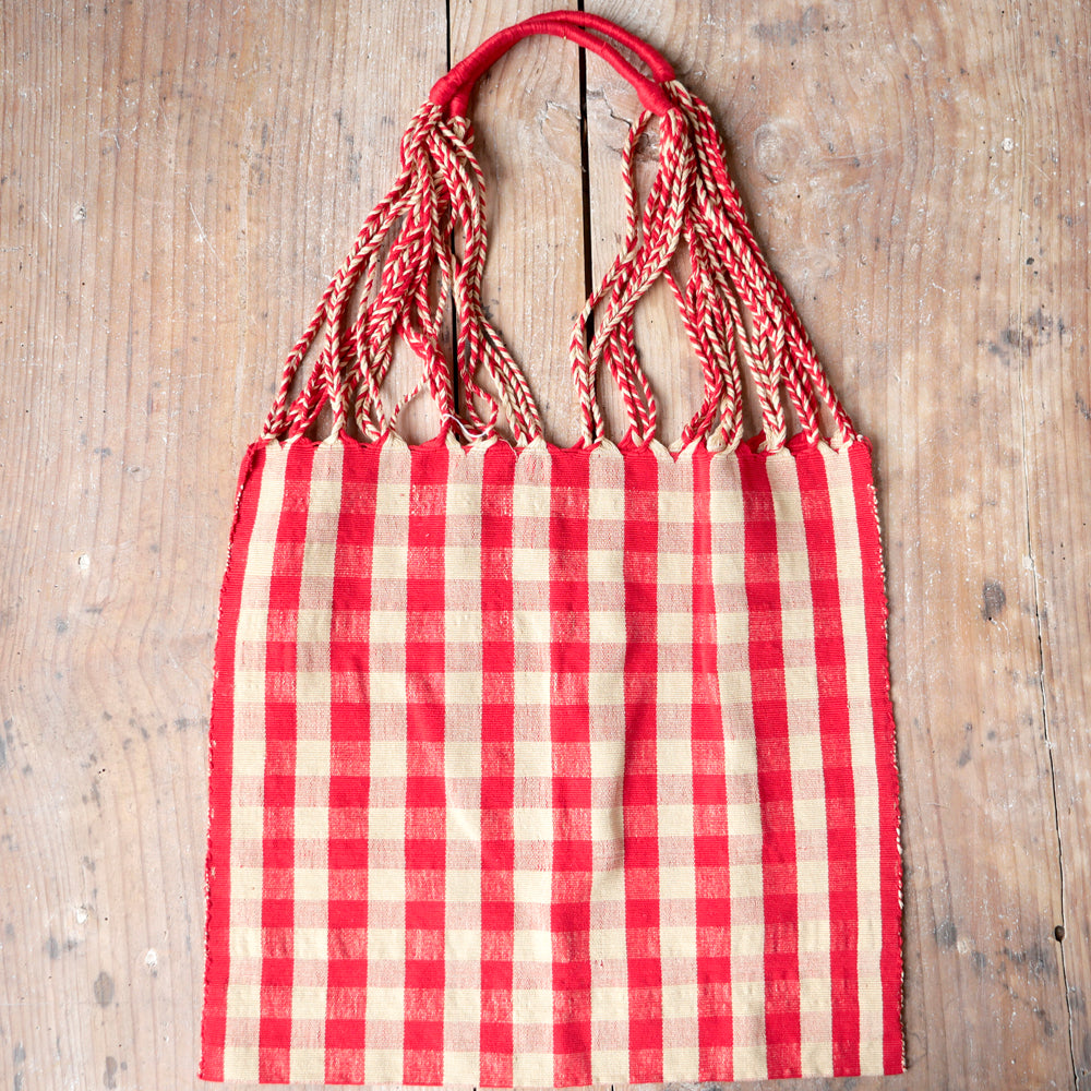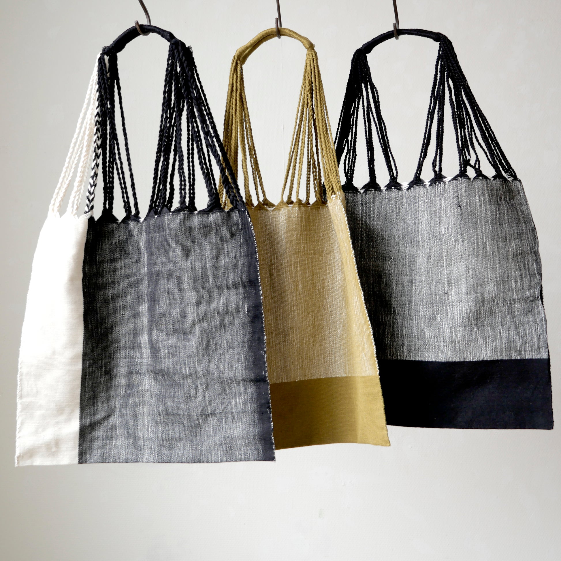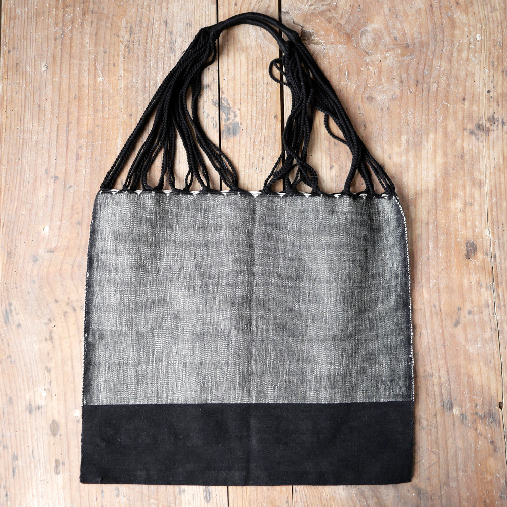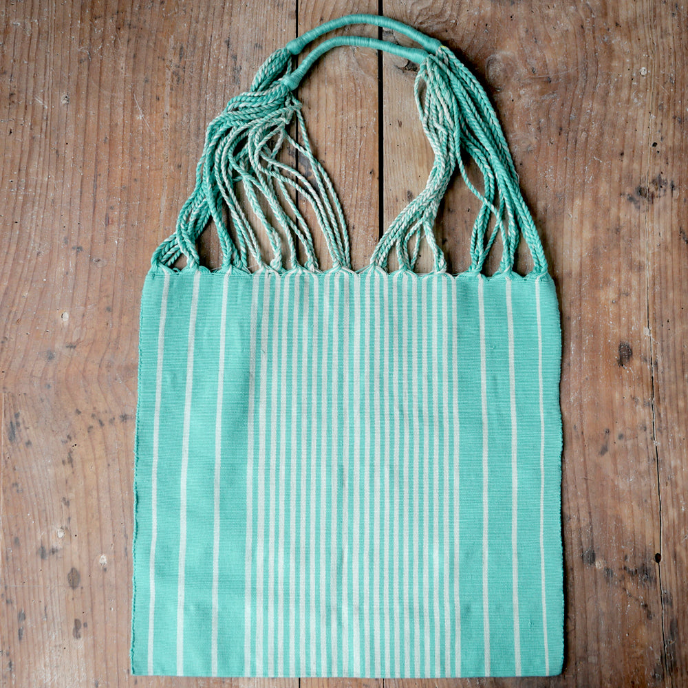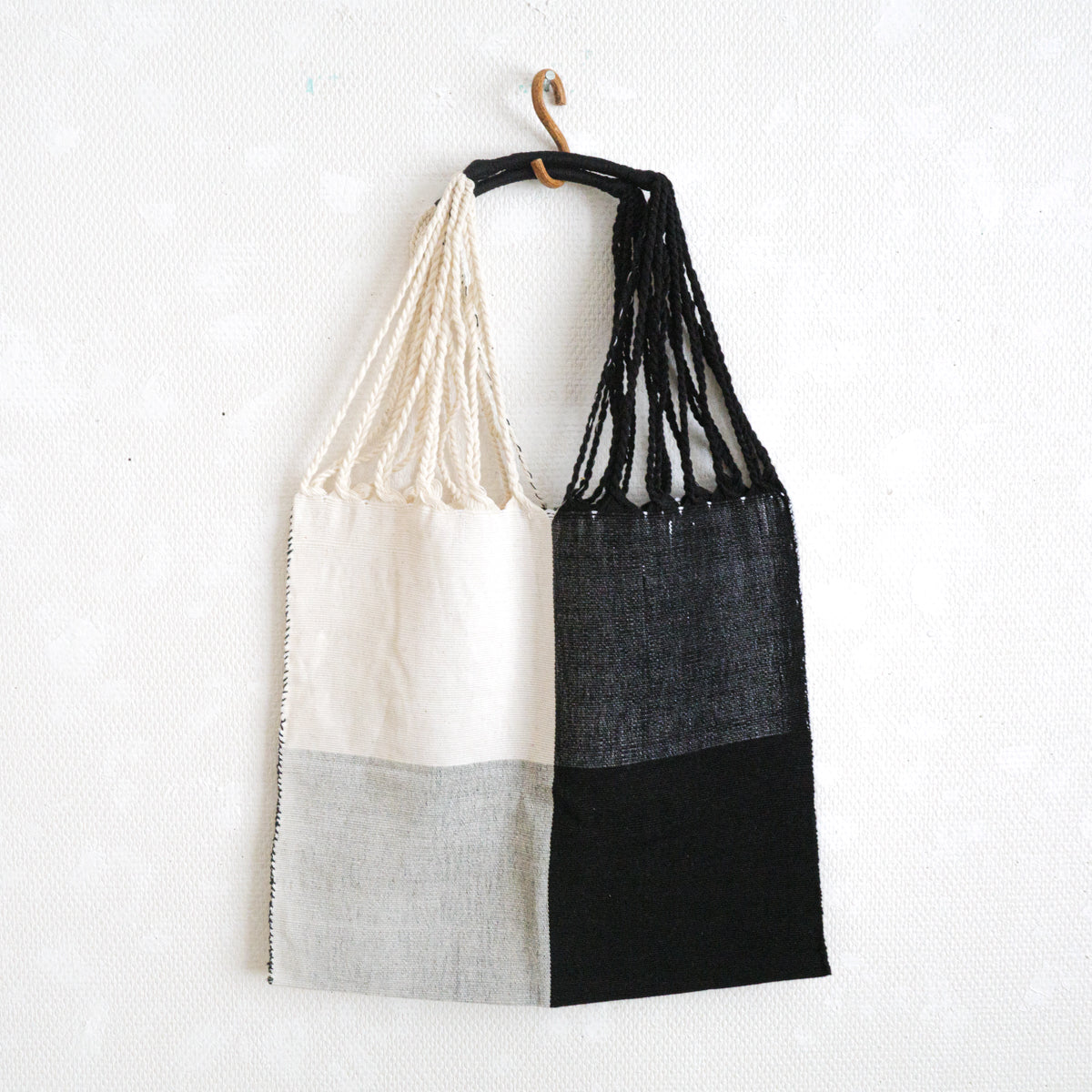 大人気のメキシコはチアパス州の手織り生地を使用したハンモックバッグ。上から広げると、まるでハンモックのような形をしております。布端のフリンジを持ち手にした独創的なデザインがなんとも可愛らしいです。マチはございませんが、見た目以上にたっぷり入り、物を入れた時の形もふんわりしていて綺麗です。こちらはMサイズになります。