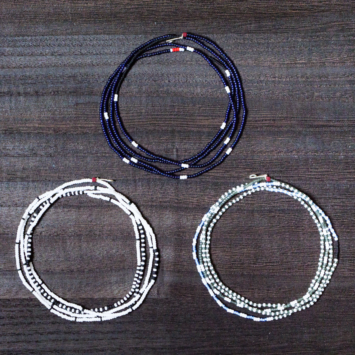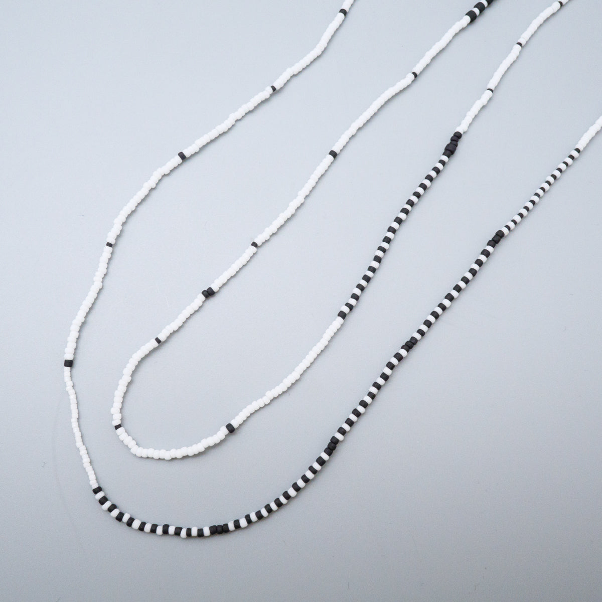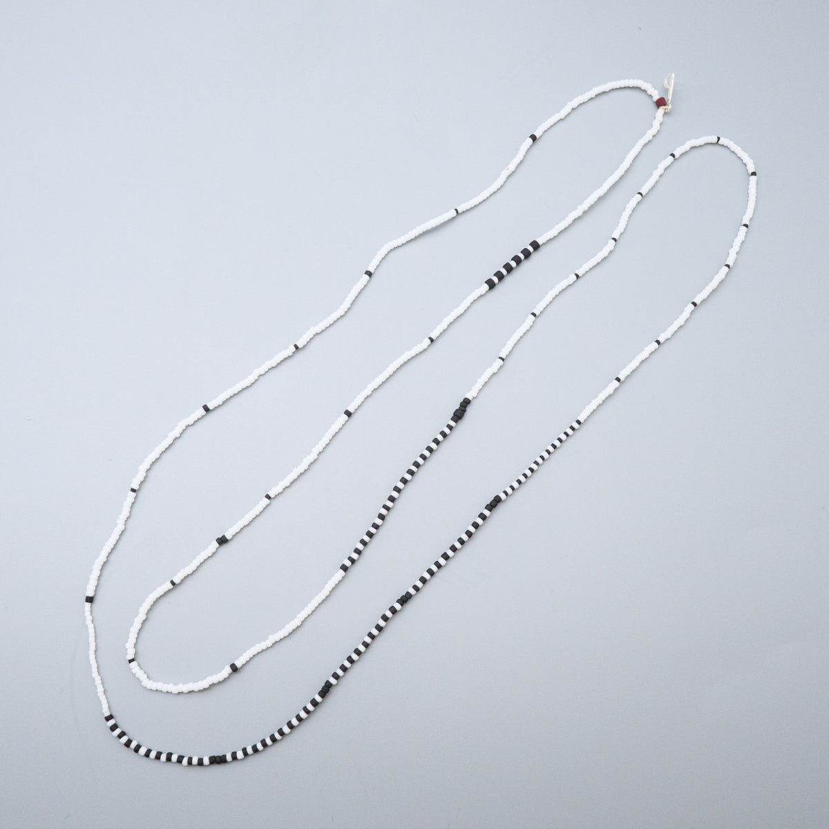 当店で大人気のインドネシアのバリのブランドPERAPERAKによるビーズのネックレス。こちらは通常のカラフルなタイプに比べ、男性でも付けられそうなモノトーン調の落ち着いた雰囲気のものになります。中にはシリコンゴムが入っているので伸縮性がありとても便利です。ぐるっと巻いて、短めのネックレスにもなりますし、さらにぐるぐる巻くとバングルやアンクレットとしてもご使用になれます。