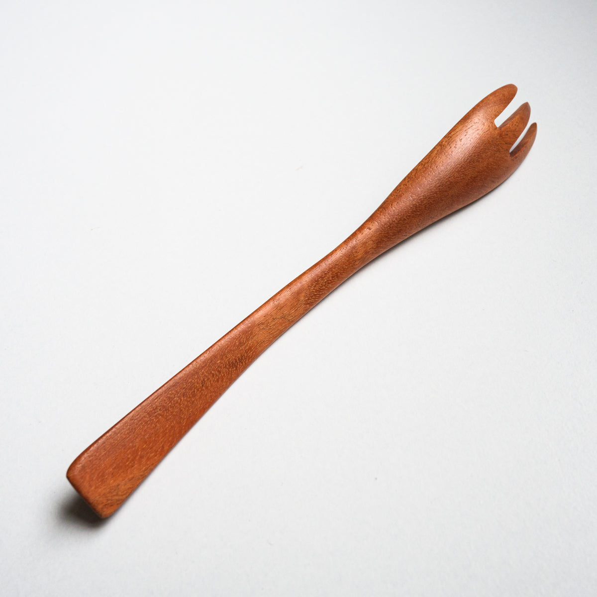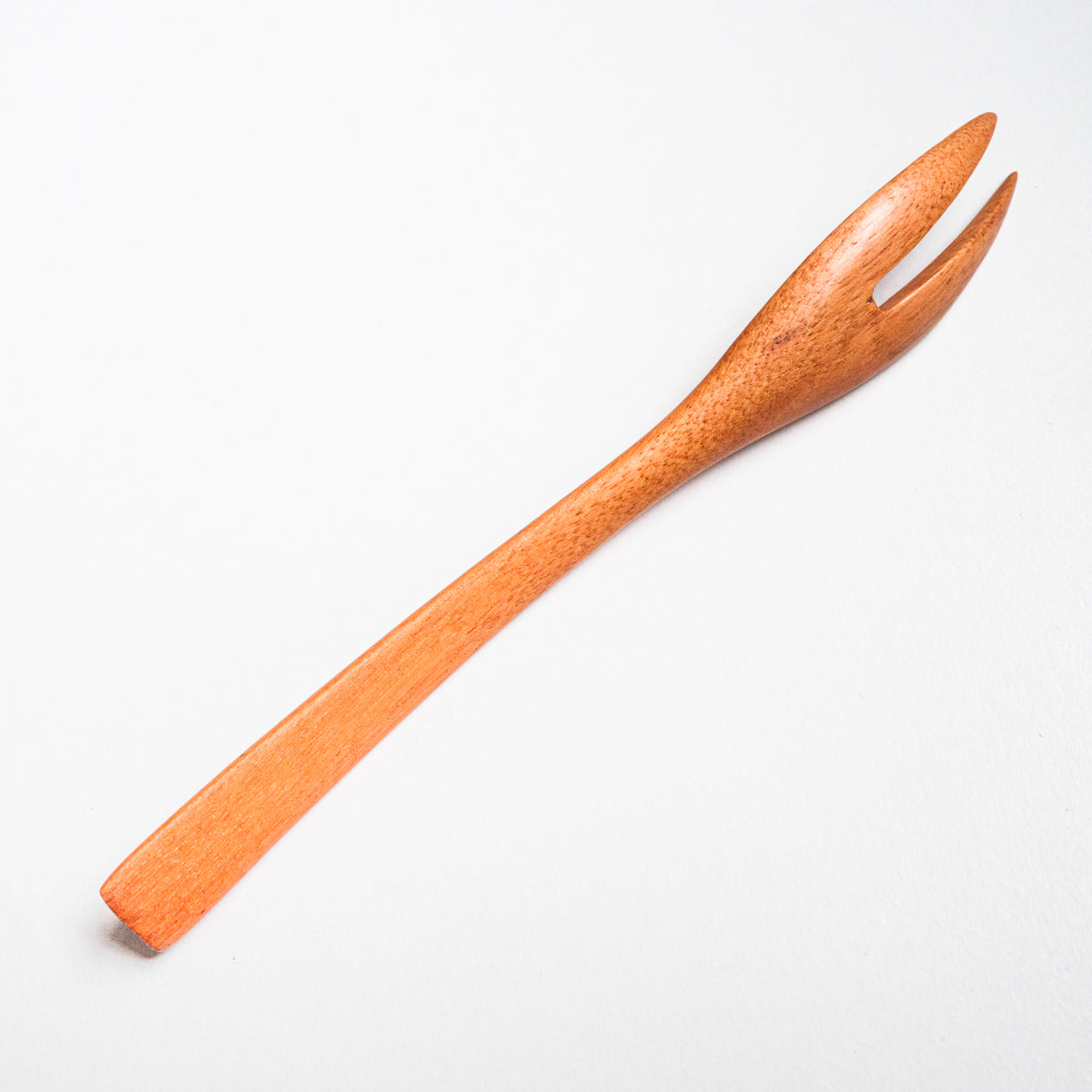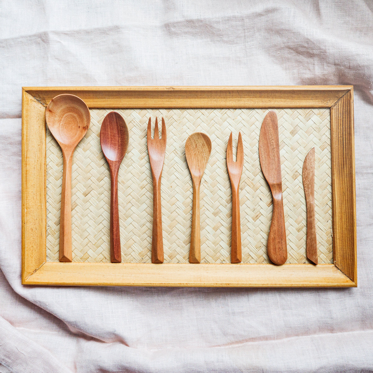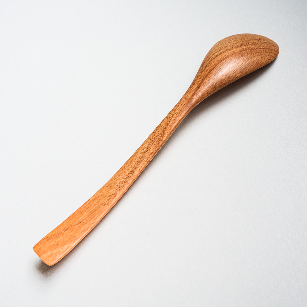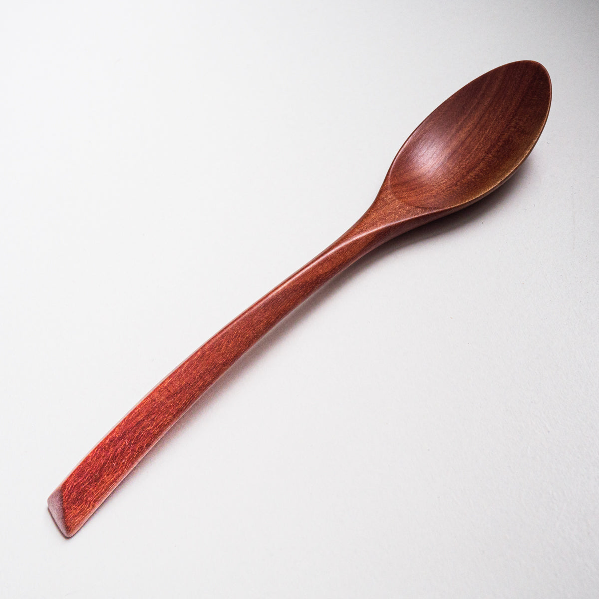 珍しいユーカリの木を削り出して、制作したカトラリー類。ユーカリの木はとても硬く、日本の支援団体が技術指導〜デザインしており、とても見栄えがよく、使いやすい形状になっています。