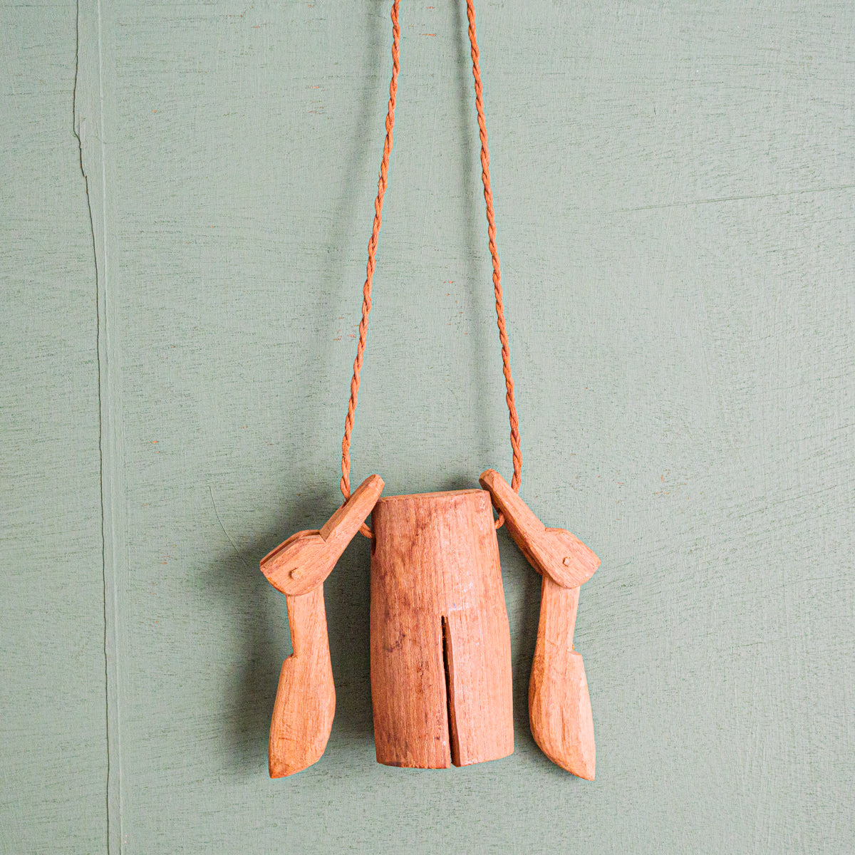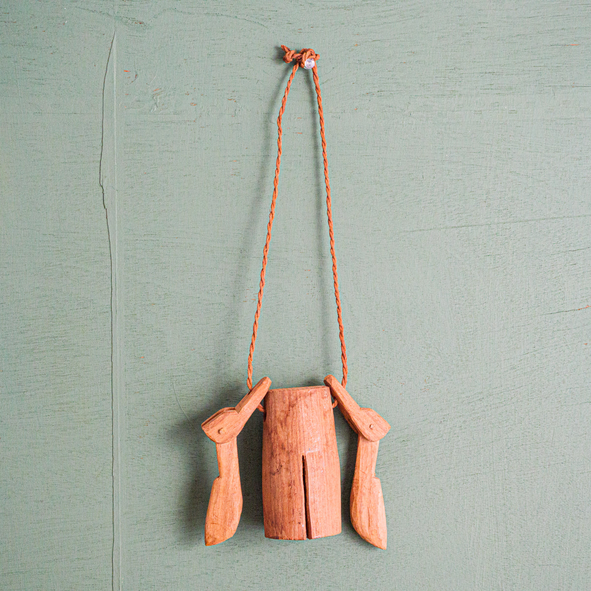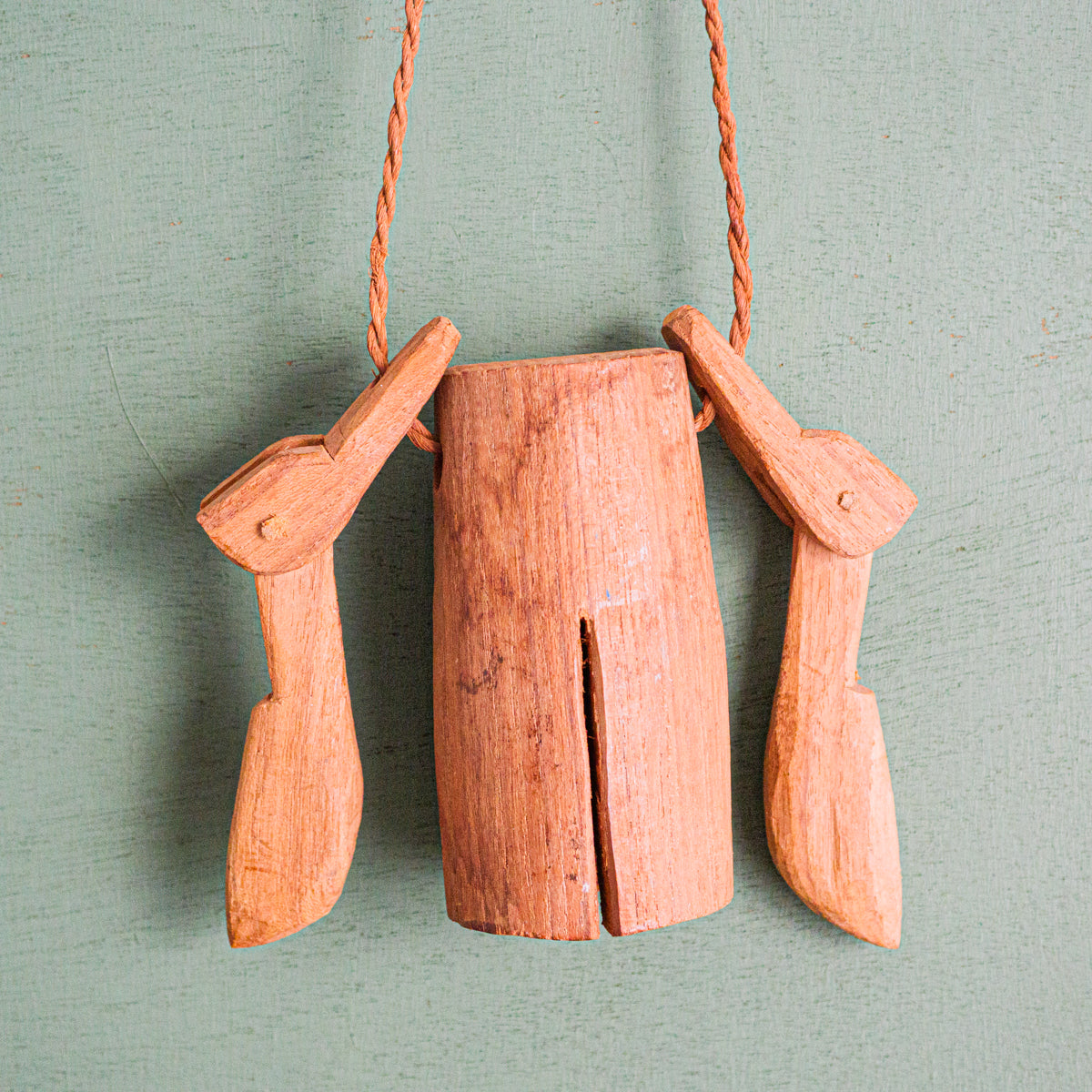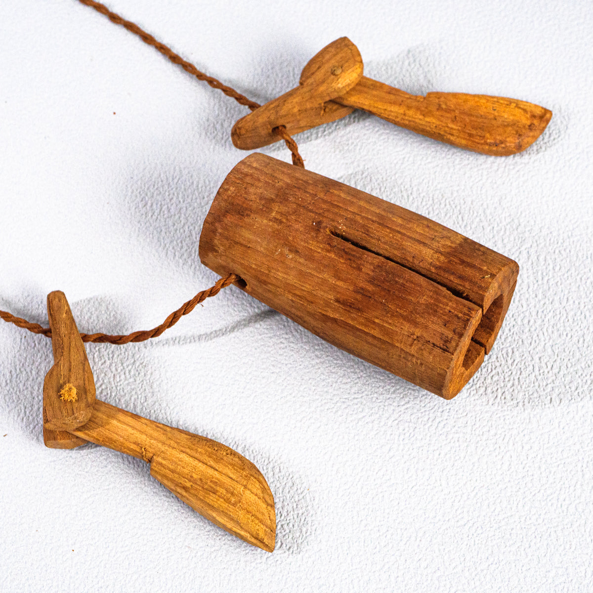 コロンコロンと心地よい音が鳴る、木製のベル。左右の木が中央の空洞の竹を鳴らすシンプルな仕組みです。こちらは牛が放牧されている時に付けられる鈴のような役割の生活道具。紐が通してあるので、簡単に壁にかけてインテリアにもなります。
