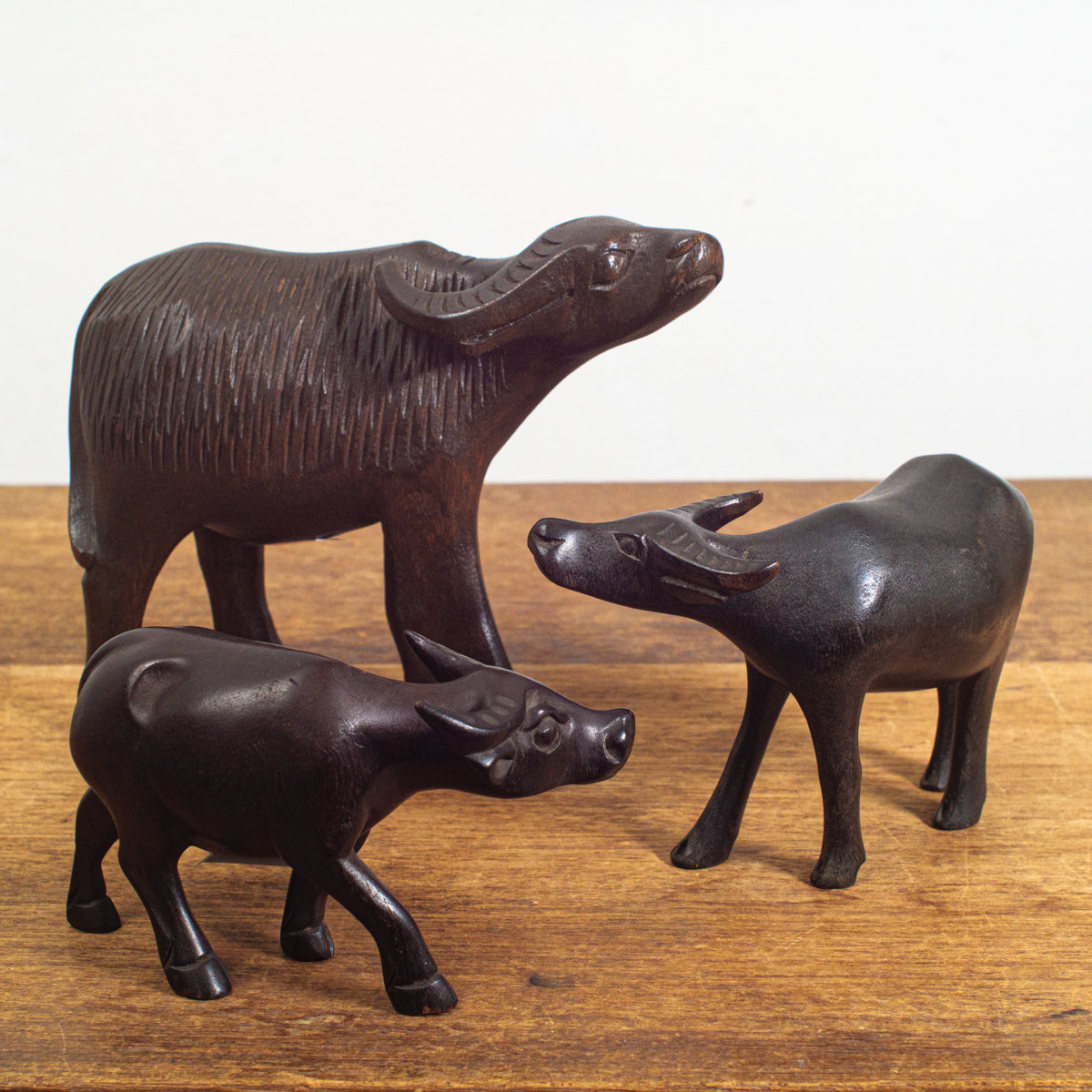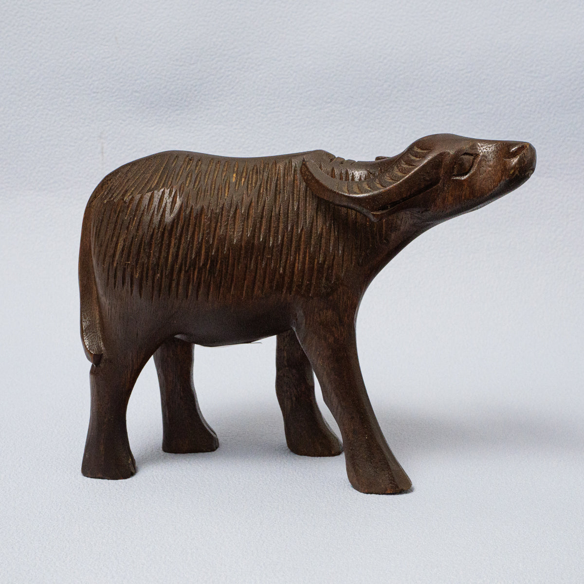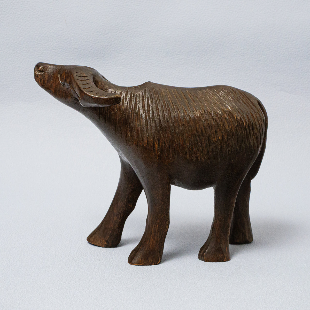 優雅な雰囲気の木彫りの水牛さん。かなり動きやディテールが精巧に作られています。温かいアジアの雰囲気を感じさせる逸品です。