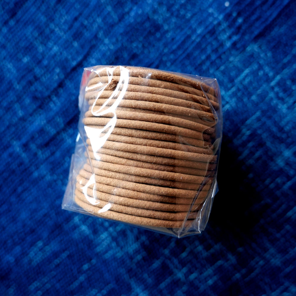 東南アジア各地で見られるサンダルウッド(白檀)のお香ですが、こちらは台湾国内で生産されている現地メーカーのもの。当店人気のパロサント香とは違う、まさに東洋の香り。店内でも時々焚いておりますが、個人的にはとても心が静まります。こちらは40枚入りのボックスセットで、1巻で約2時間ほどご使用になれます。