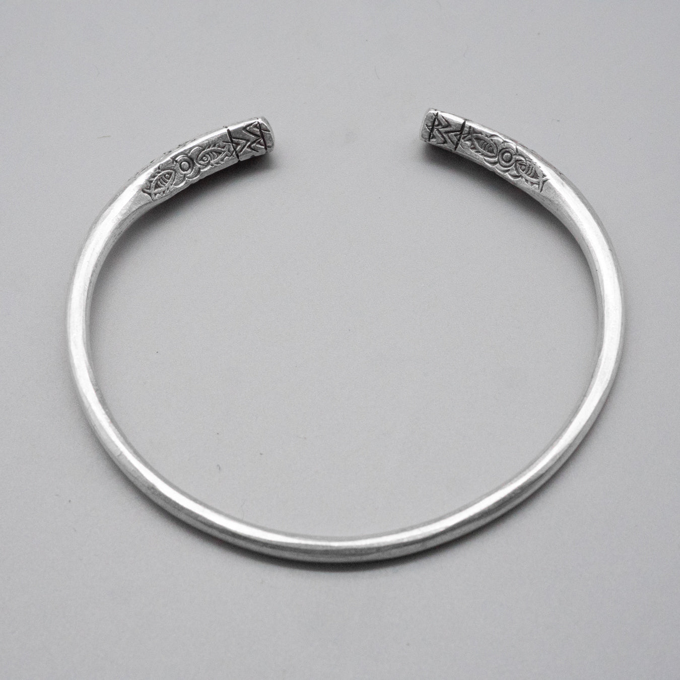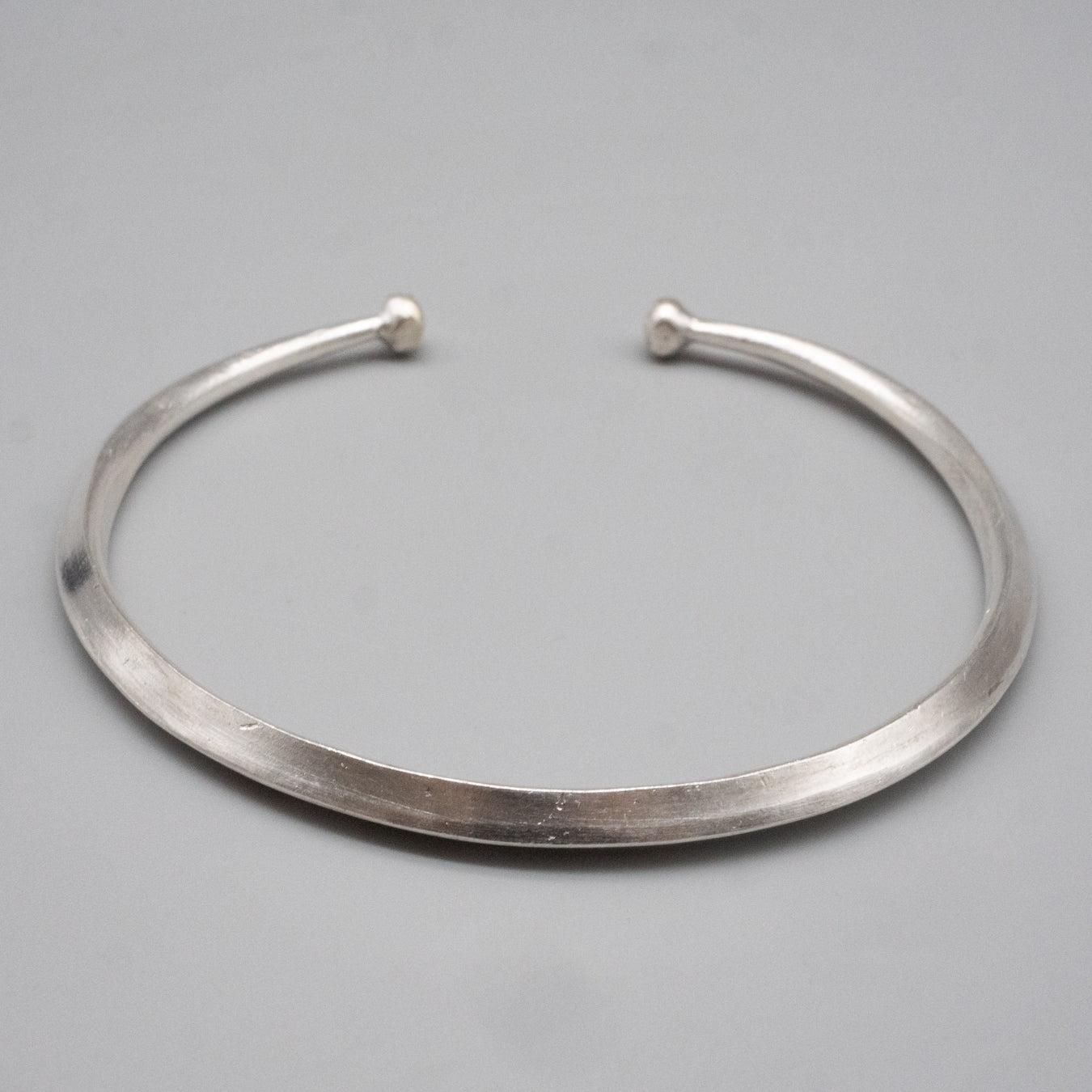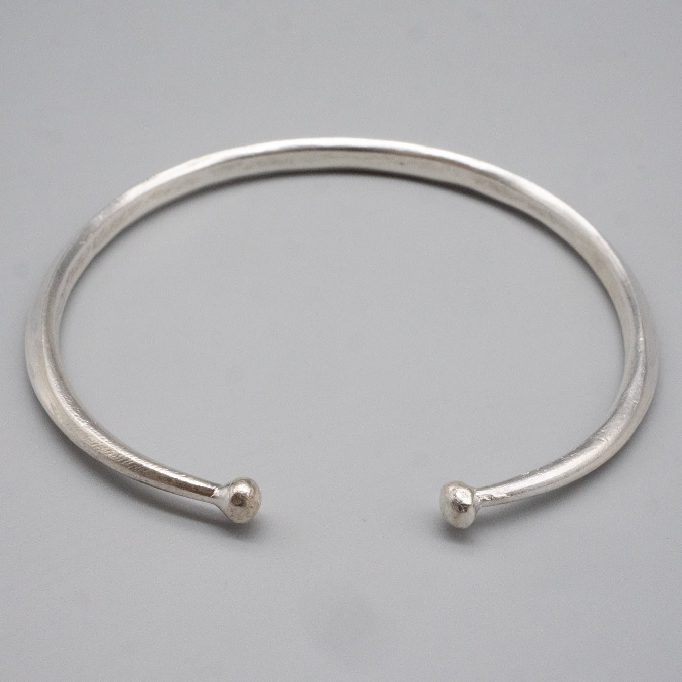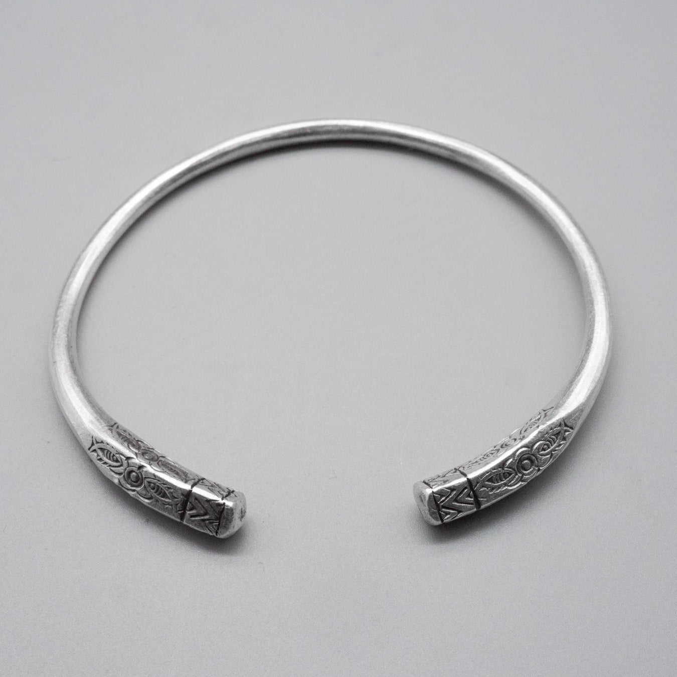 タイ北部からミャンマーにかけて分布する少数民族、カレン族が製作したシルバーアクセサリー。95%以上の高純度のシルバーで、軽くて柔らかいのが特徴です。さりげなく特徴的なデザインでとても付けやすいです。こちらのバングルは全てフリーサイズになります。