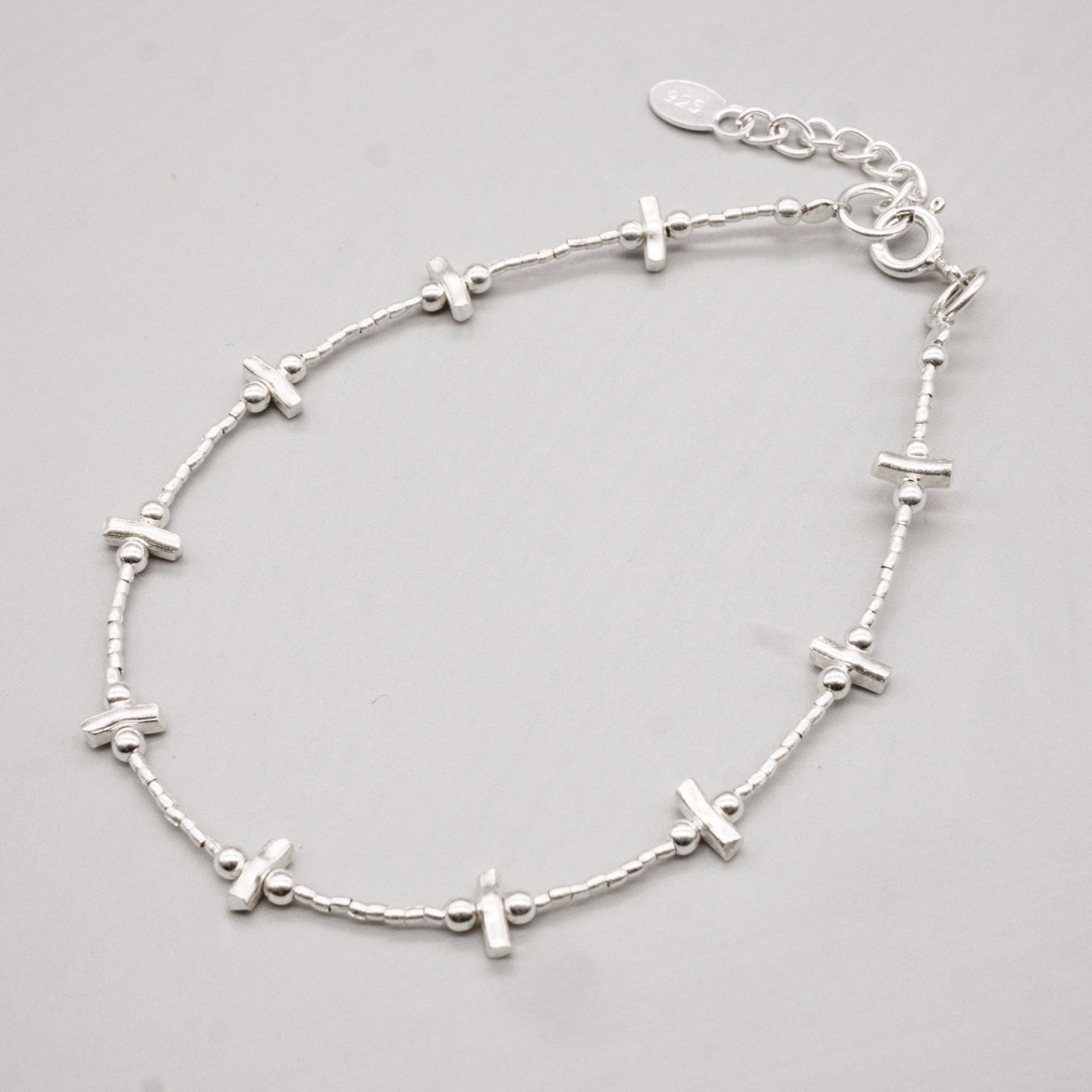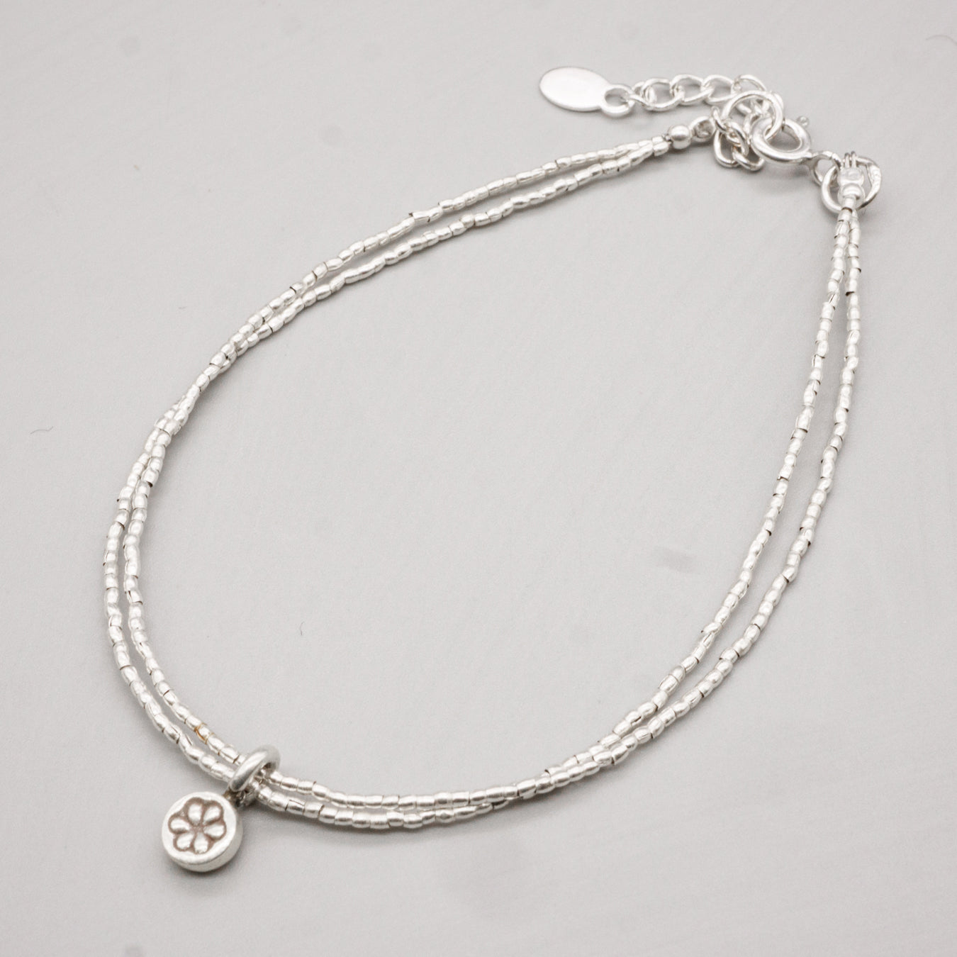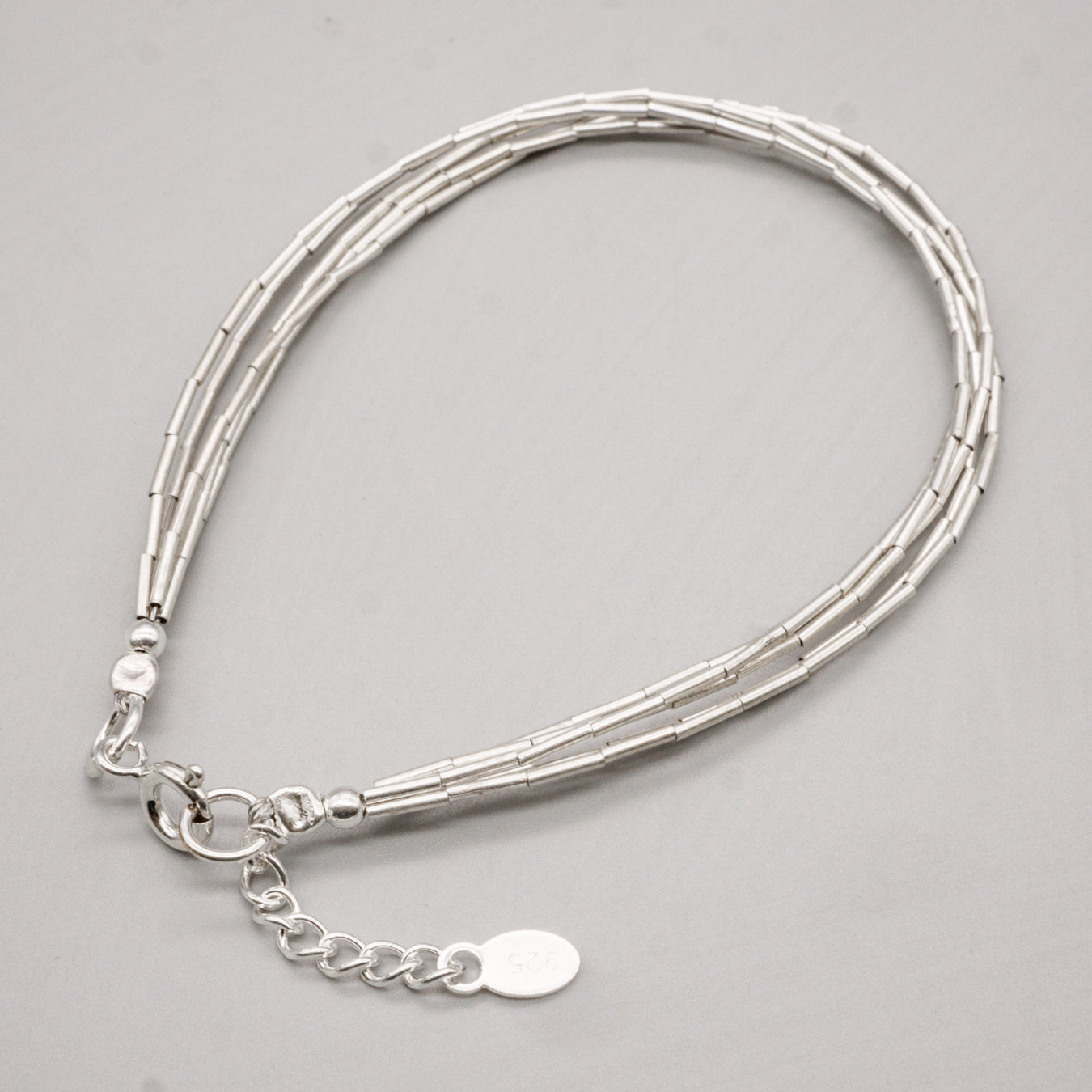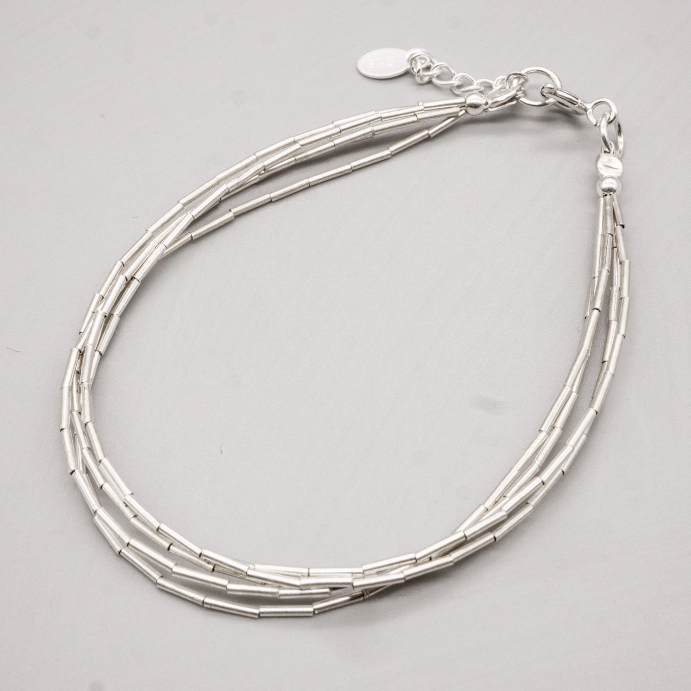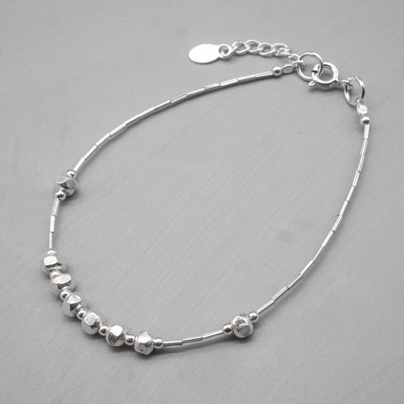 タイ北部からミャンマーにかけて分布する少数民族、カレン族が製作したシルバーアクセサリー。95%以上の高純度のシルバーで、軽くて柔らかいのが特徴です。さりげなく特徴的なデザインでとても付けやすいです。こちらはブレスレットになります。留め具の所からチェーンが出ており、長さの微調整が可能です。