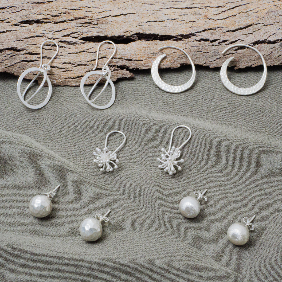 タイ北部からミャンマーにかけて分布する少数民族、カレン族が製作したシルバーアクセサリー。92.5%以上の高純度のシルバーで、軽くて柔らかいのが特徴です。さりげなく特徴的なデザインでとても付けやすいです。こちらは全てピアスタイプになります。黒ずみなどの使用感が気になる場合は、歯磨き粉で擦ると良くなります。
