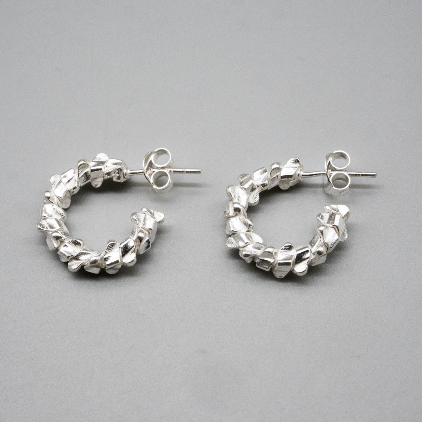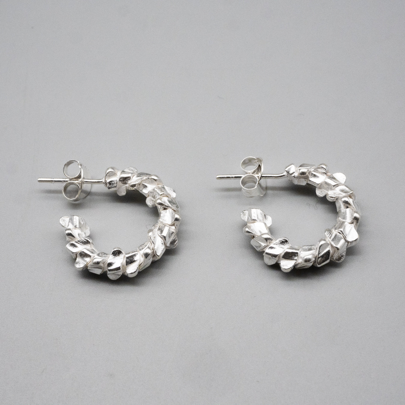 タイ北部からミャンマーにかけて分布する少数民族、カレン族が製作したシルバーアクセサリー。92.5%以上の高純度のシルバーで、軽くて柔らかいのが特徴です。さりげなく特徴的なデザインでとても付けやすいです。こちらは全てピアスタイプになります。黒ずみなどの使用感が気になる場合は、歯磨き粉で擦ると良くなります。