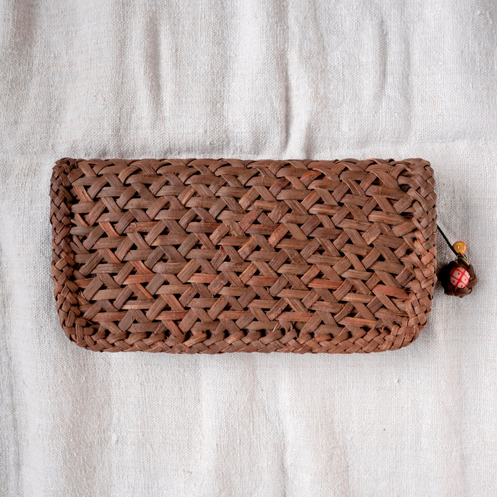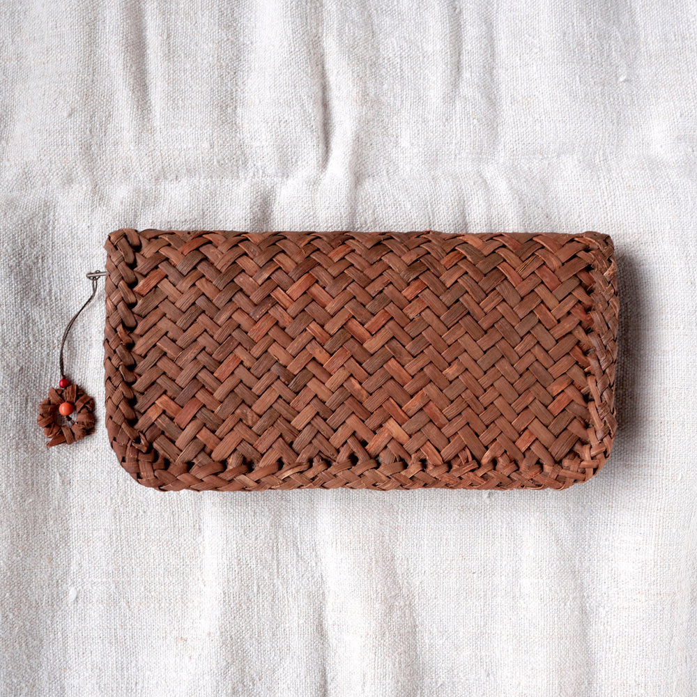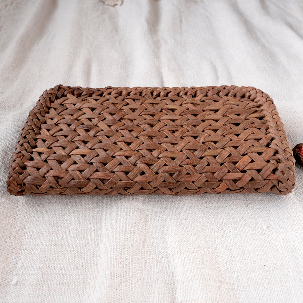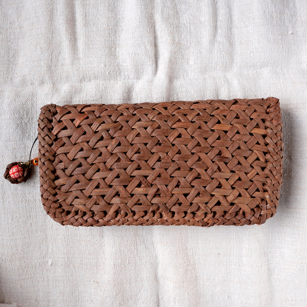 新潟の裂織り/山葡萄作家さん仁科俊子氏による山葡萄の長財布。内側には濡れに強い合皮を使用しております、長財布ならでは収納する場所がたくさん付いてます。使用するごとに、表面が手の脂でとても美しい飴色に経年変化をしてきます。
