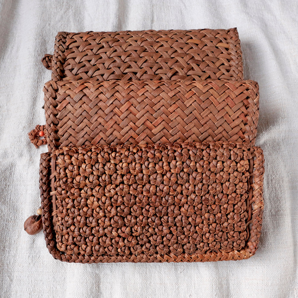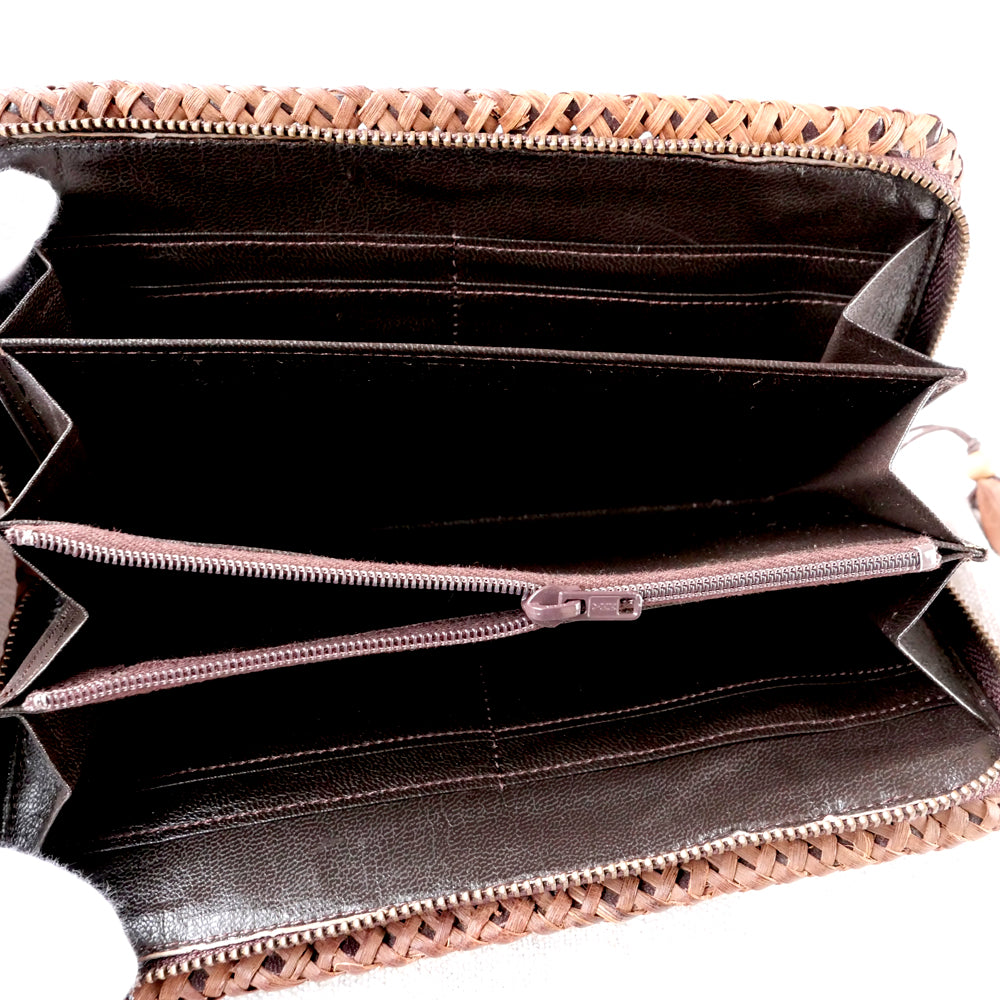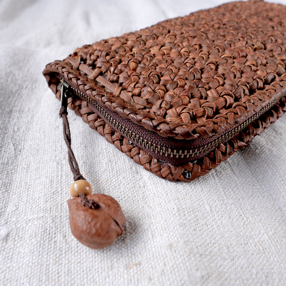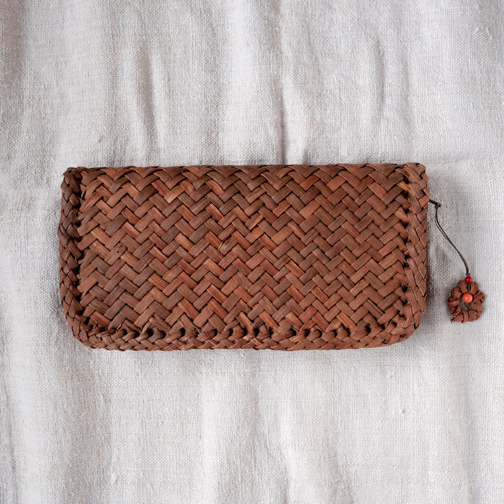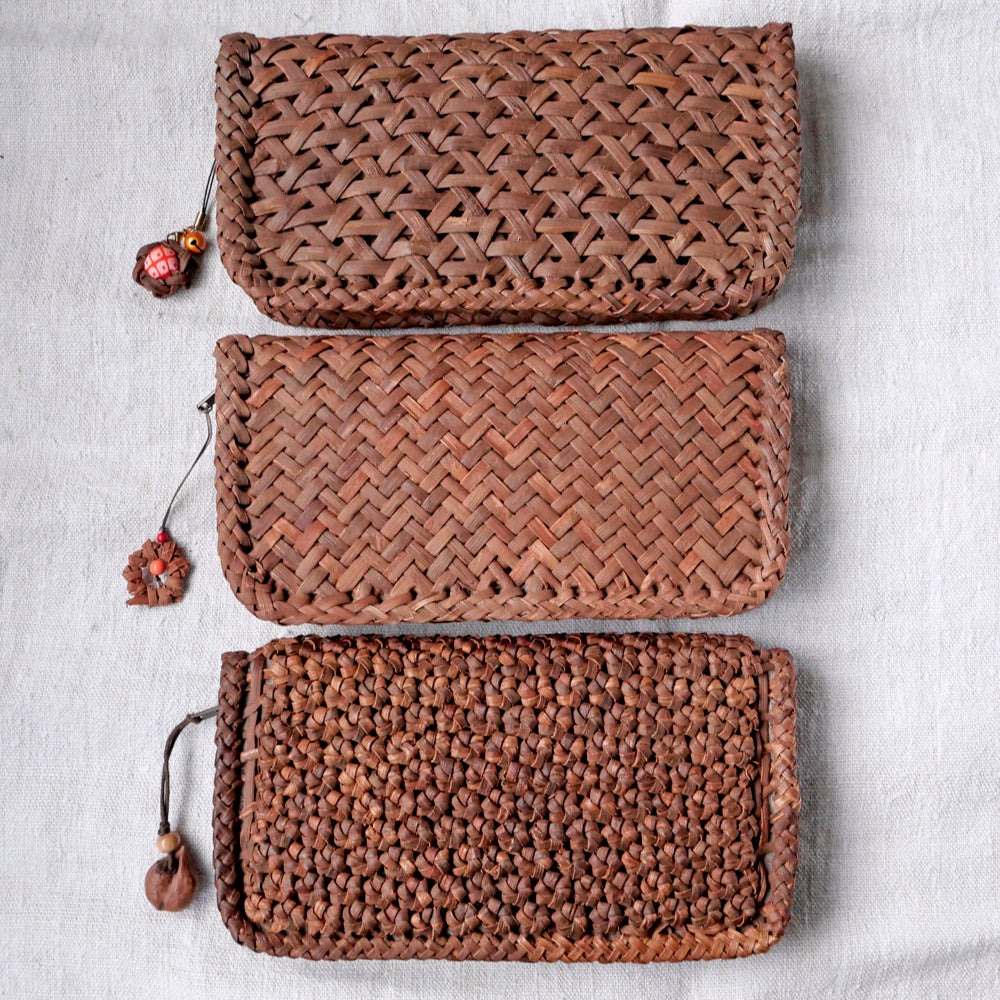 新潟の裂織り/山葡萄作家さん仁科俊子氏による山葡萄の長財布。内側には濡れに強い合皮を使用しております、長財布ならでは収納する場所がたくさん付いてます。使用するごとに、表面が手の脂でとても美しい飴色に経年変化をしてきます。