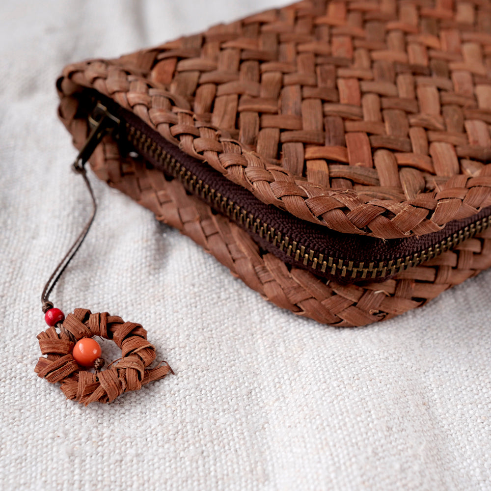テッセン模様編み = 180g - 主素材:山葡萄, 合皮, ファスナー