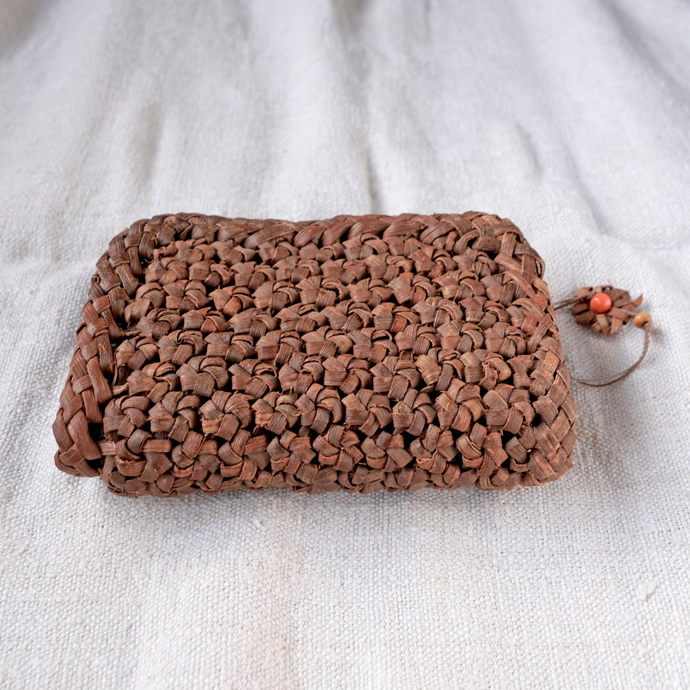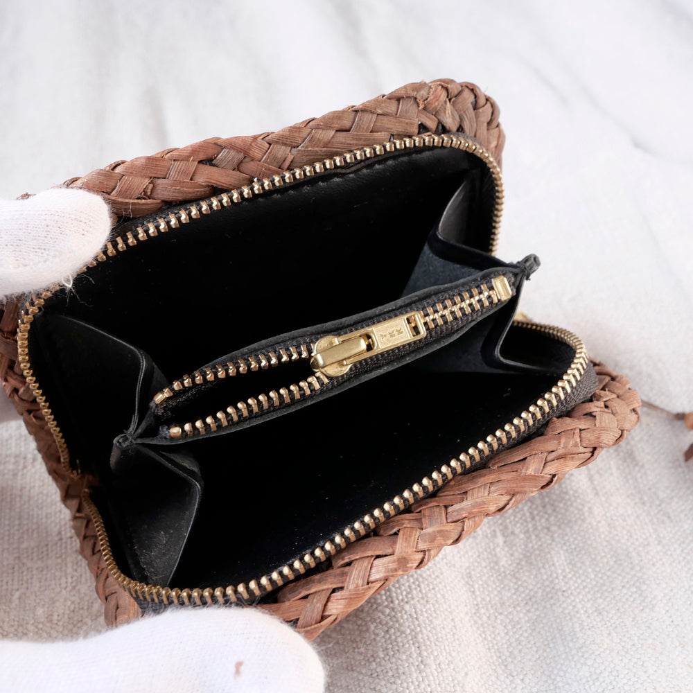 新潟の裂織り/山葡萄作家さん仁科俊子氏による山葡萄の小型のお財布。内側には濡れに強い合皮を使用しております、小さいので、持ち歩きにとても便利です。サイズ的にお札は折りたたんで頂くか、コインケースとして使用する形となります。使用するごとに、表面が手の脂でとても美しい飴色に経年変化をしてきます。