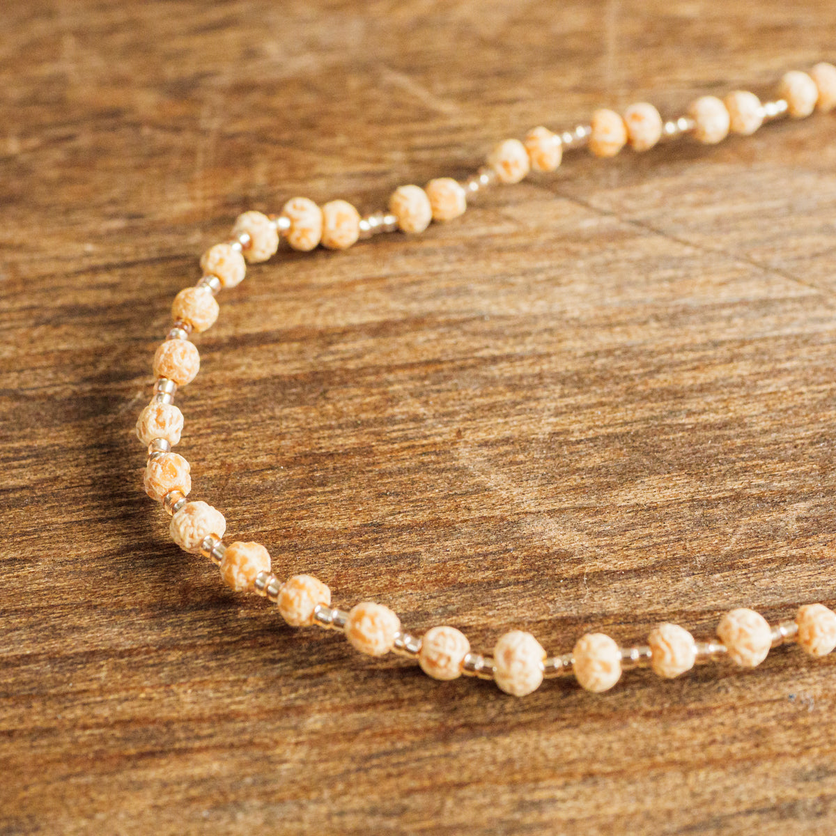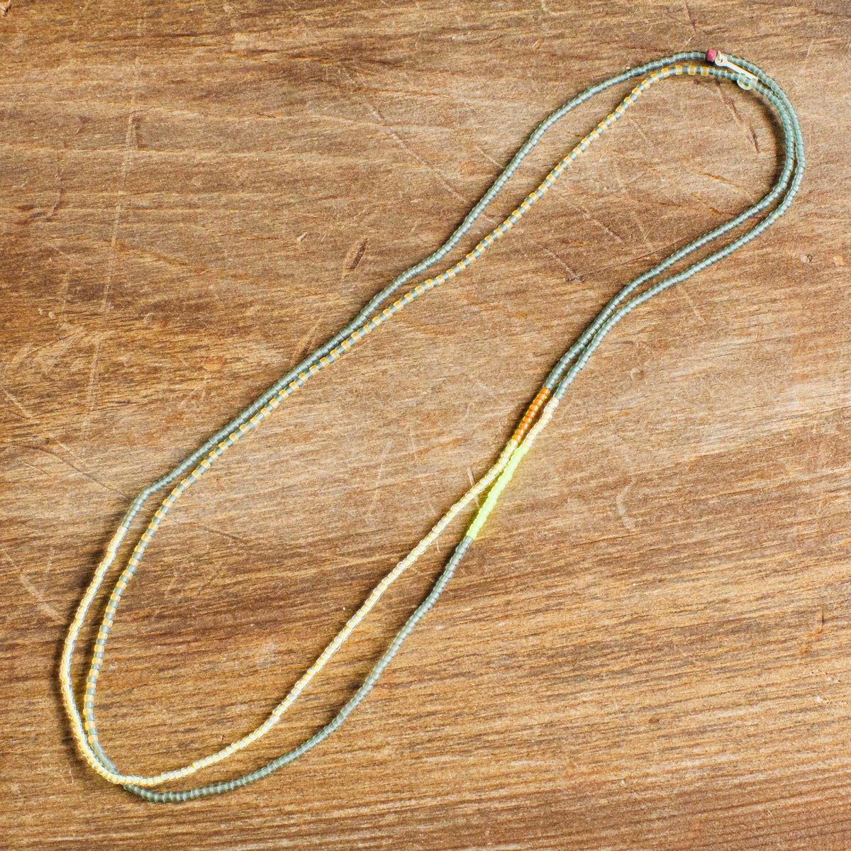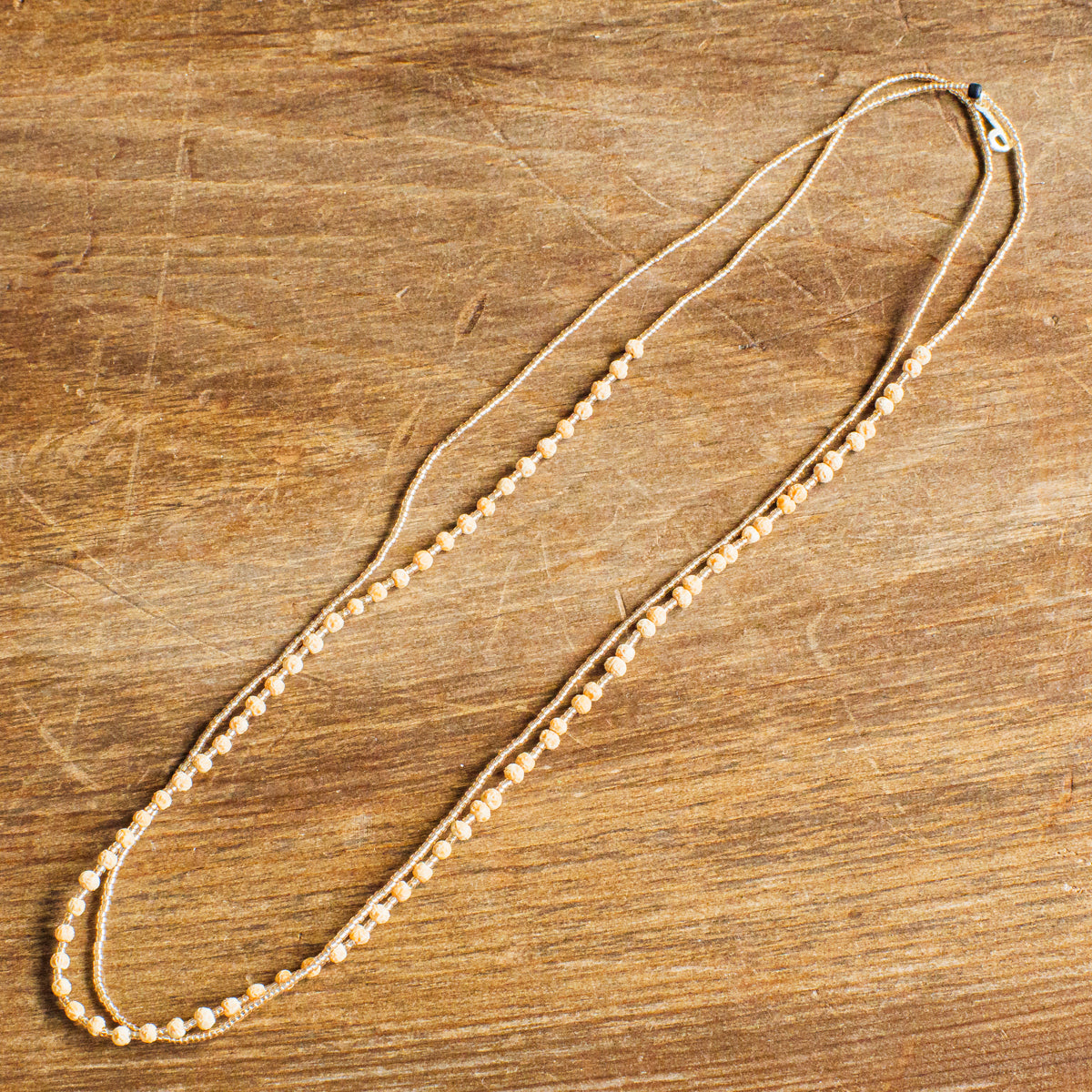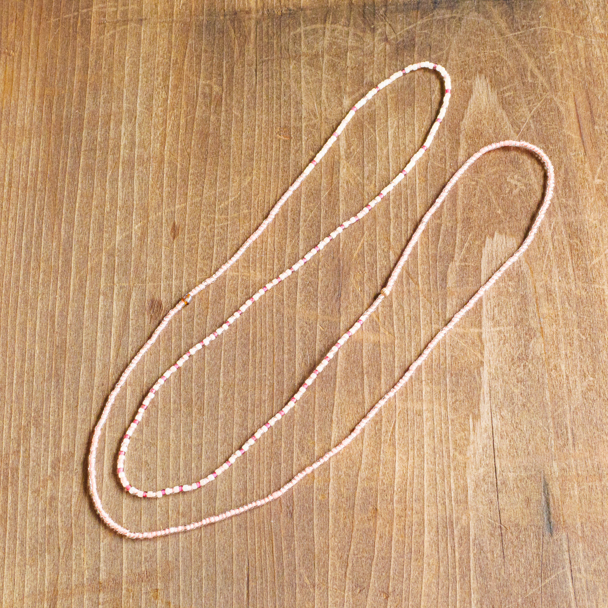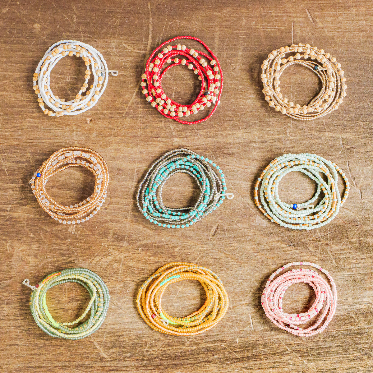 当店で大人気のインドネシアのバリのブランドPERAPERAKによるビーズのネックレス。中にはシリコンゴムが入っているので伸縮性がありとても便利です。ぐるっと巻いて、短めのネックレスにもなりますし、さらにぐるぐる巻くとバングルやアンクレットとしてもご使用になれます。表記のとおり、一部のデザインには菩提樹の実が付いています。
