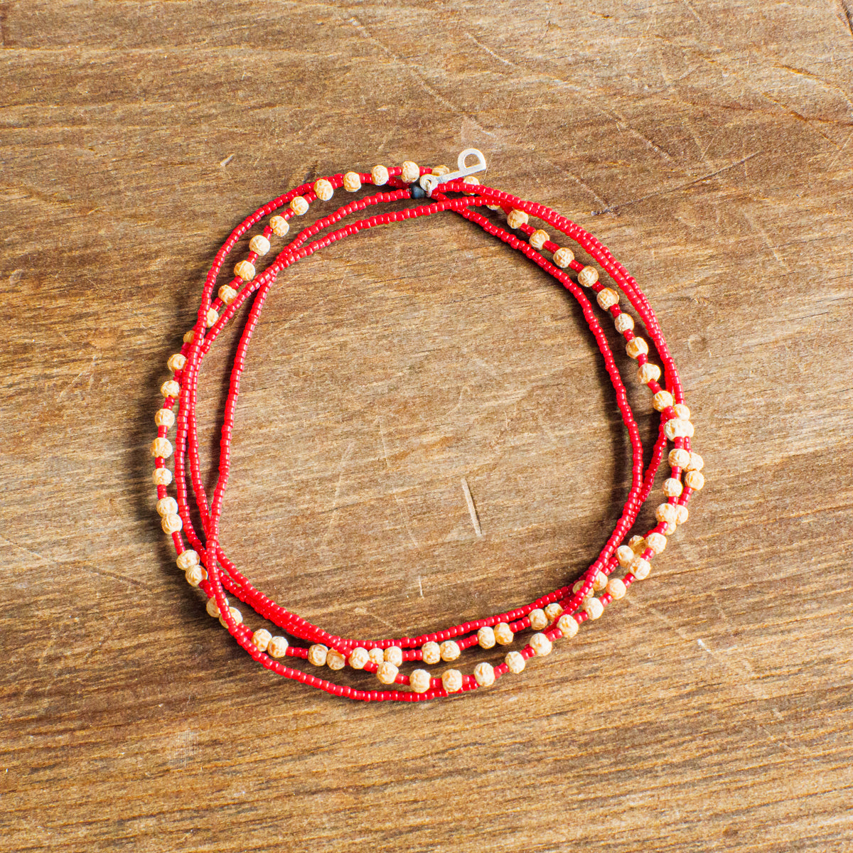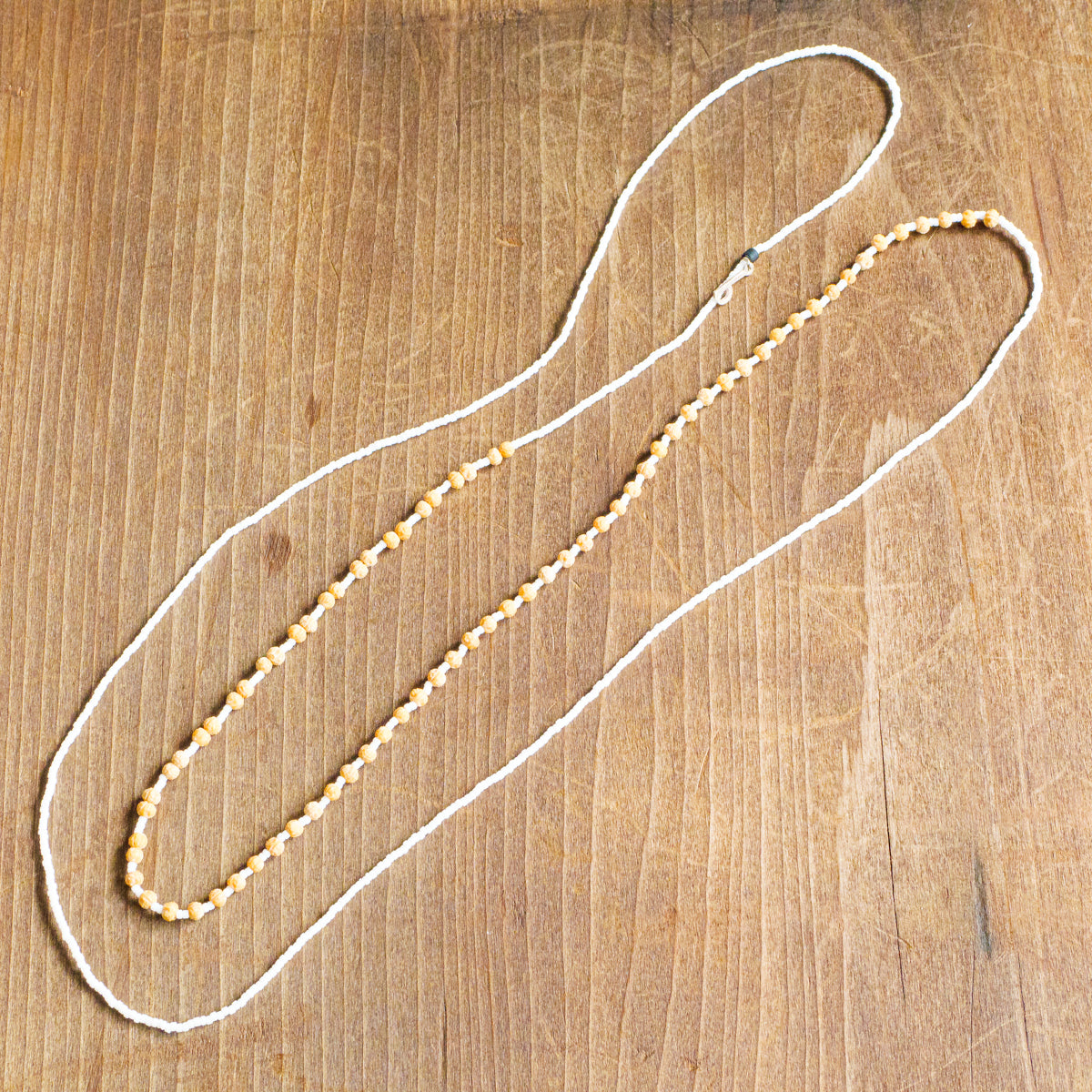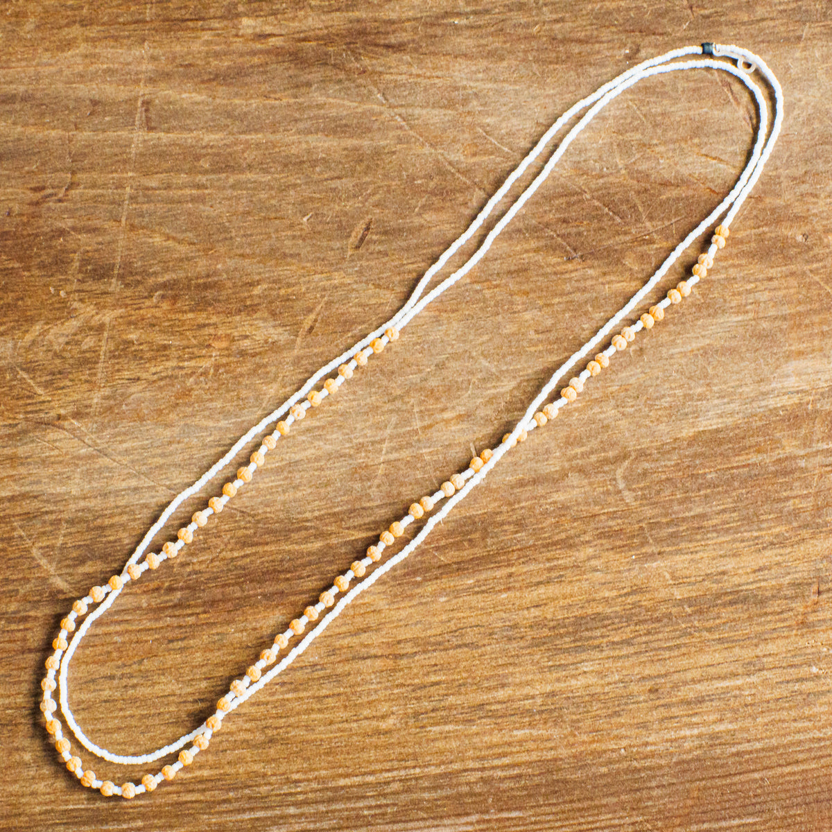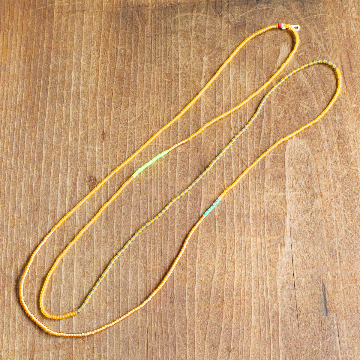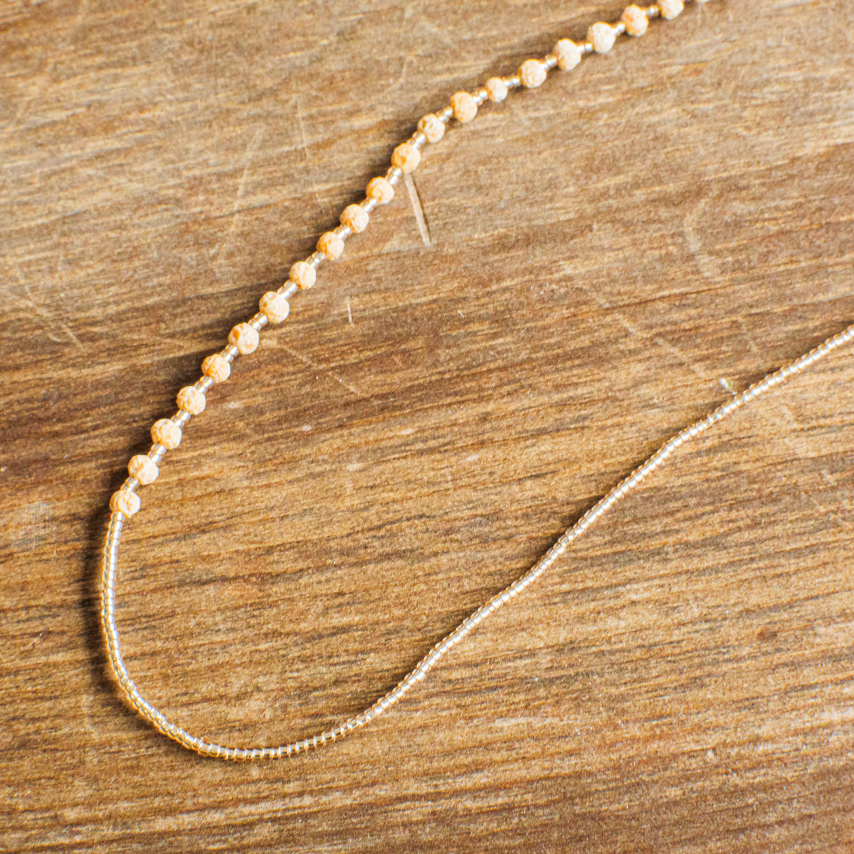当店で大人気のインドネシアのバリのブランドPERAPERAKによるビーズのネックレス。中にはシリコンゴムが入っているので伸縮性がありとても便利です。ぐるっと巻いて、短めのネックレスにもなりますし、さらにぐるぐる巻くとバングルやアンクレットとしてもご使用になれます。表記のとおり、一部のデザインには菩提樹の実が付いています。