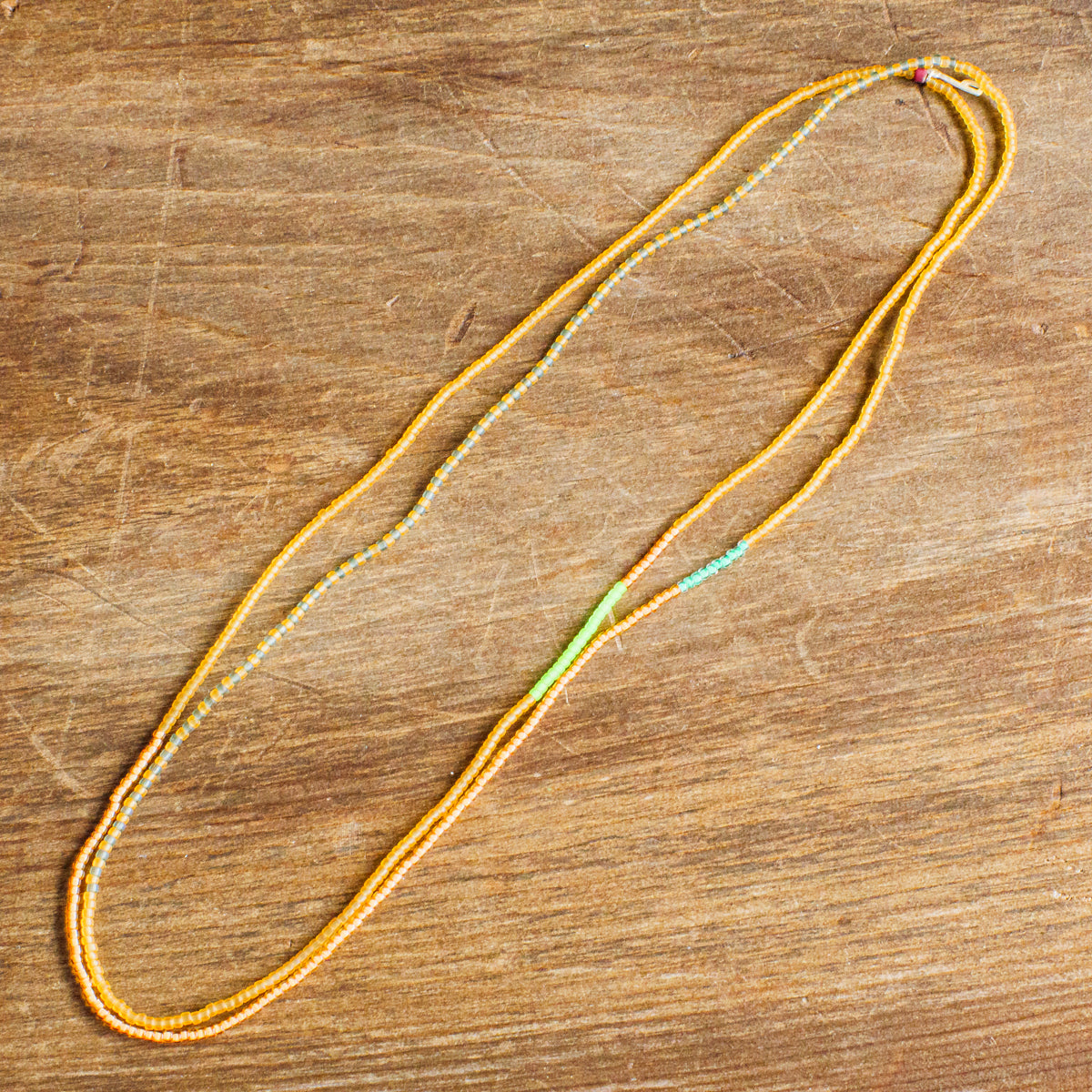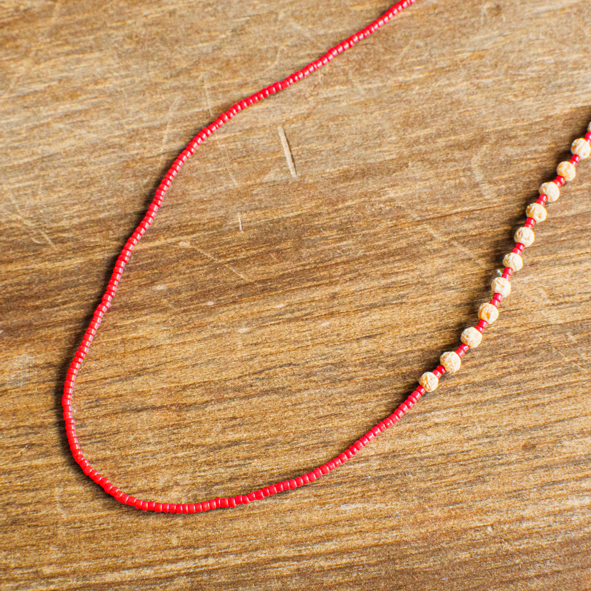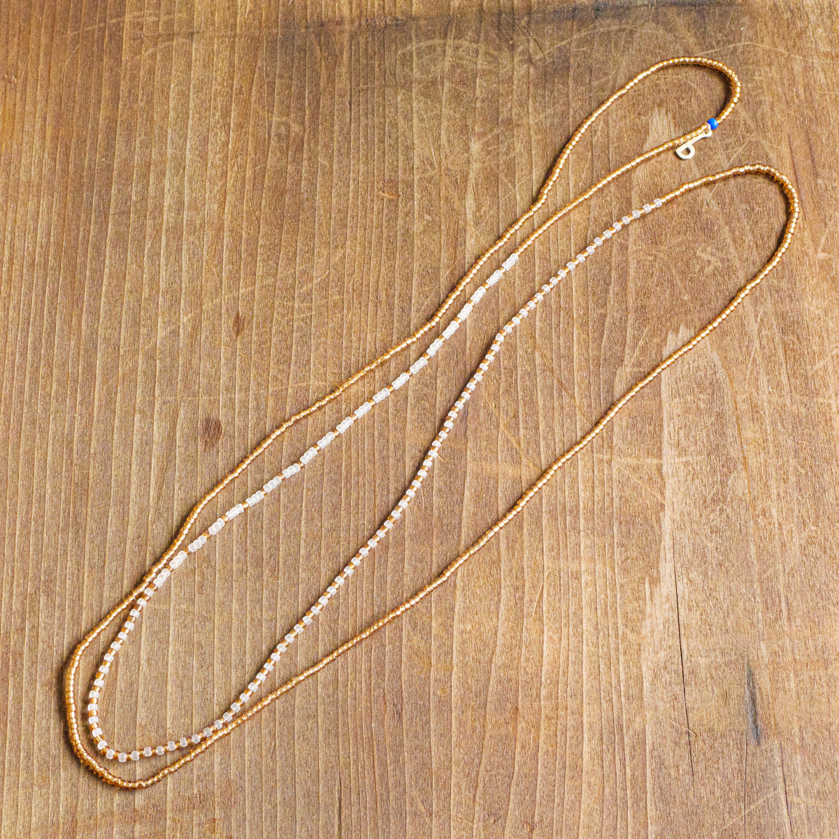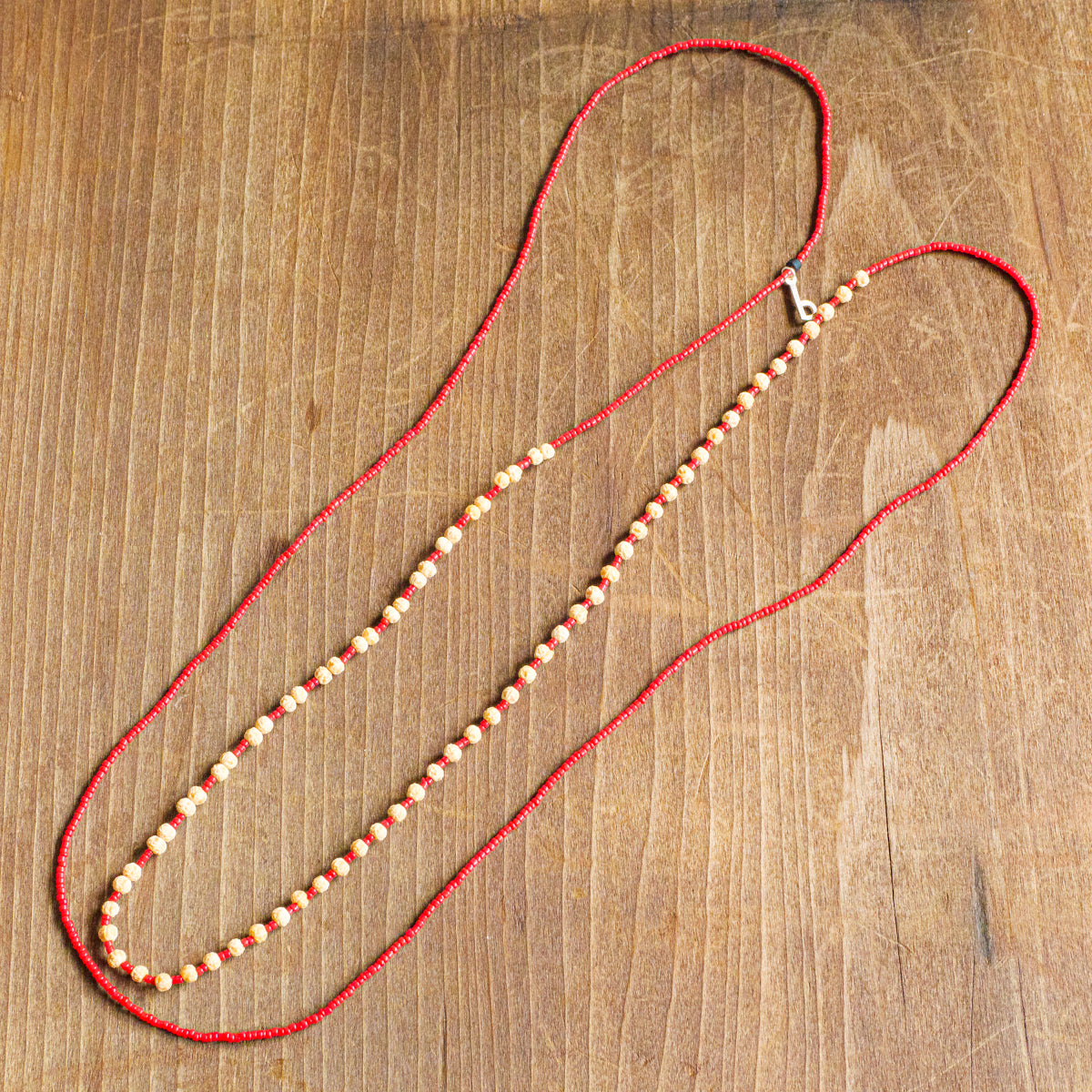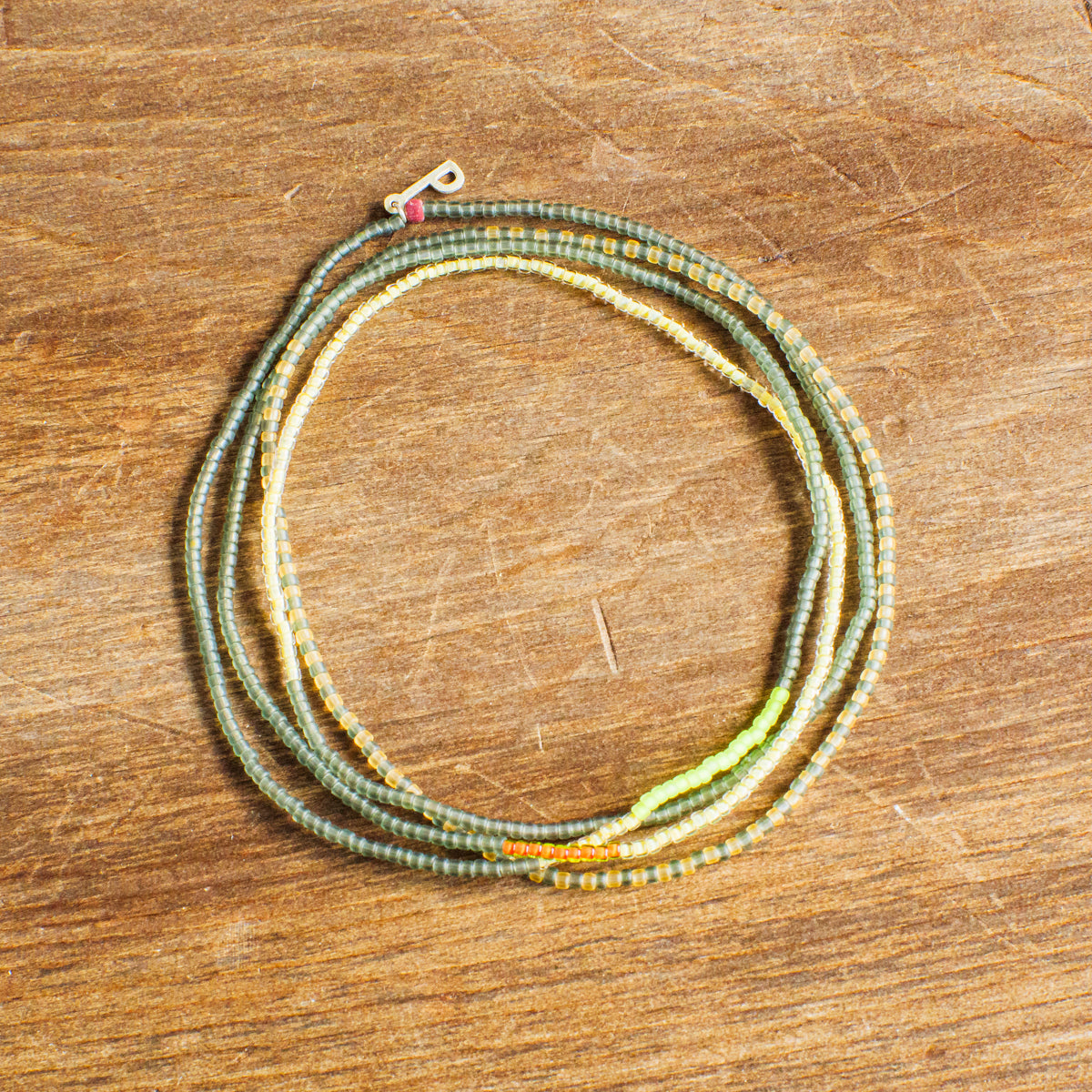 当店で大人気のインドネシアのバリのブランドPERAPERAKによるビーズのネックレス。中にはシリコンゴムが入っているので伸縮性がありとても便利です。ぐるっと巻いて、短めのネックレスにもなりますし、さらにぐるぐる巻くとバングルやアンクレットとしてもご使用になれます。表記のとおり、一部のデザインには菩提樹の実が付いています。