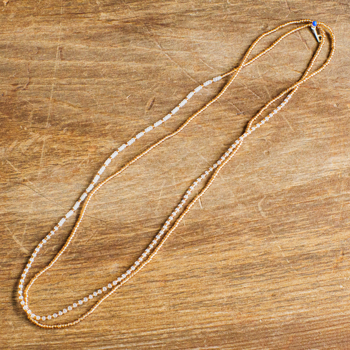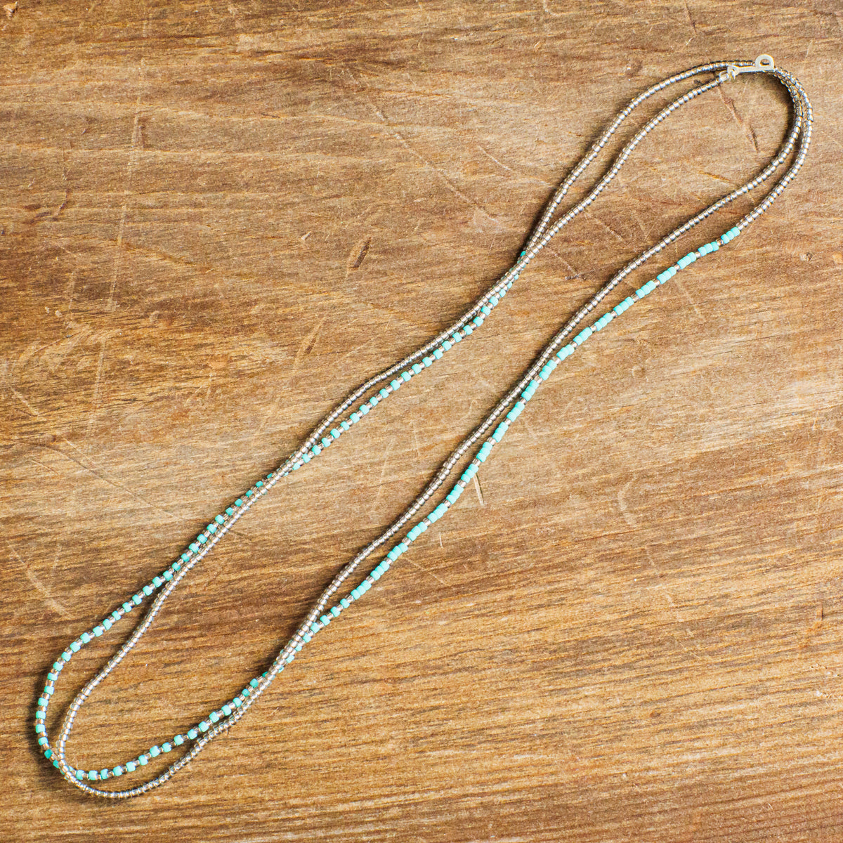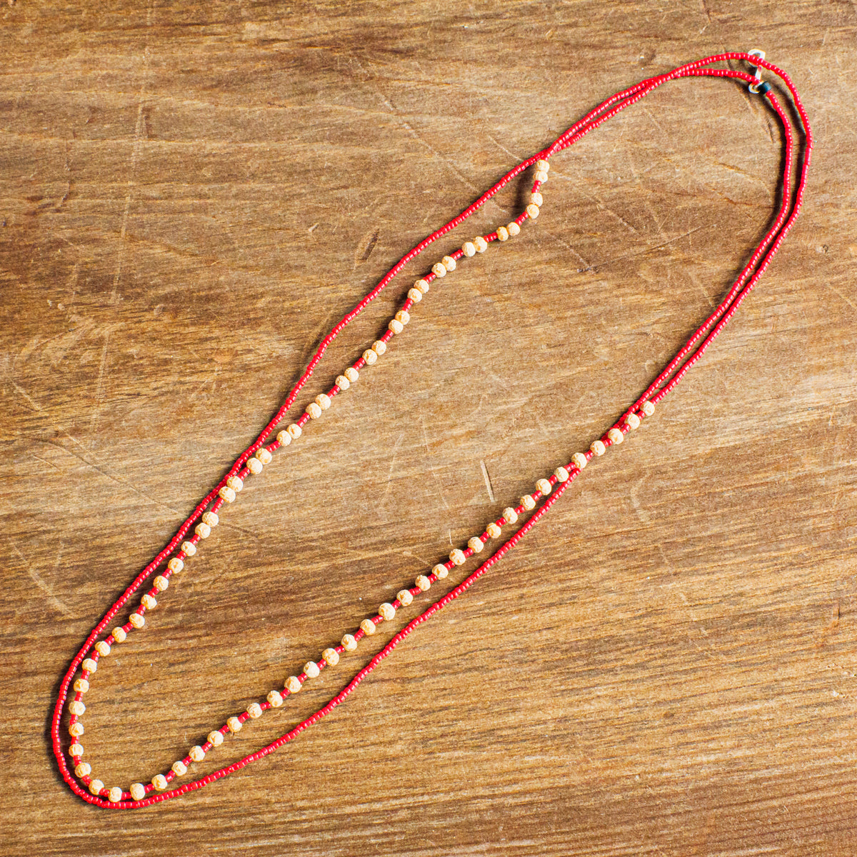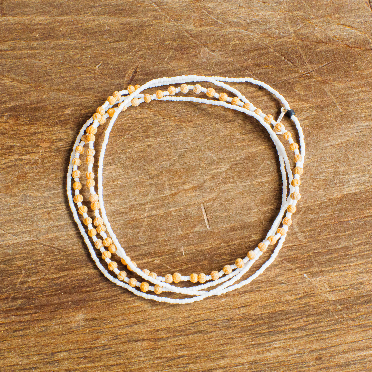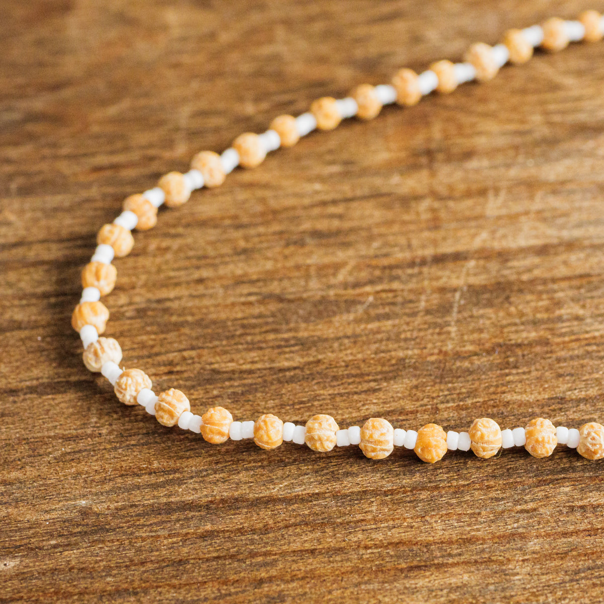 当店で大人気のインドネシアのバリのブランドPERAPERAKによるビーズのネックレス。中にはシリコンゴムが入っているので伸縮性がありとても便利です。ぐるっと巻いて、短めのネックレスにもなりますし、さらにぐるぐる巻くとバングルやアンクレットとしてもご使用になれます。表記のとおり、一部のデザインには菩提樹の実が付いています。