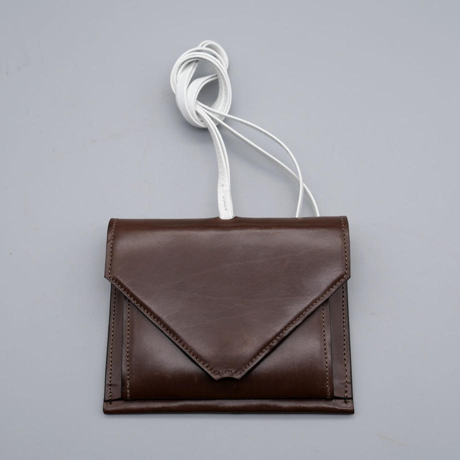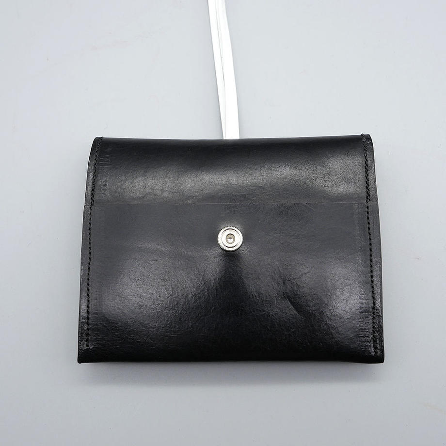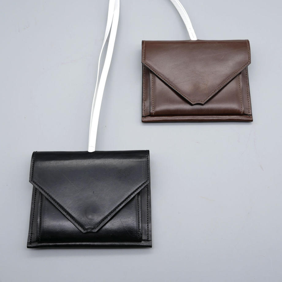 国内のSCOTEJPN(エスコートと読む)ブランドによる国産仔牛革レザーを使用したコインケース。とても端正なルックスで、首から下げれるように付いた白紐が素敵です。こちらの紐は内側から引っ張ればスルッと簡単に抜けますので、普通のコインケースとしてもご使用になれます。 背面にはカード入れ部分、内側にはカード入れ部が2つに、コインの収納ポケットがございまして、通常のカードサイズ(クレカ、SUICA等)であれば、どのカード部分にも収まり、それぞれに数枚づつ入れられます。ブラックとブラウンの2色展開。