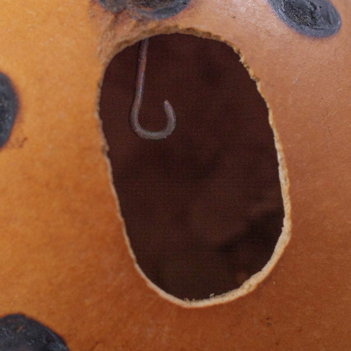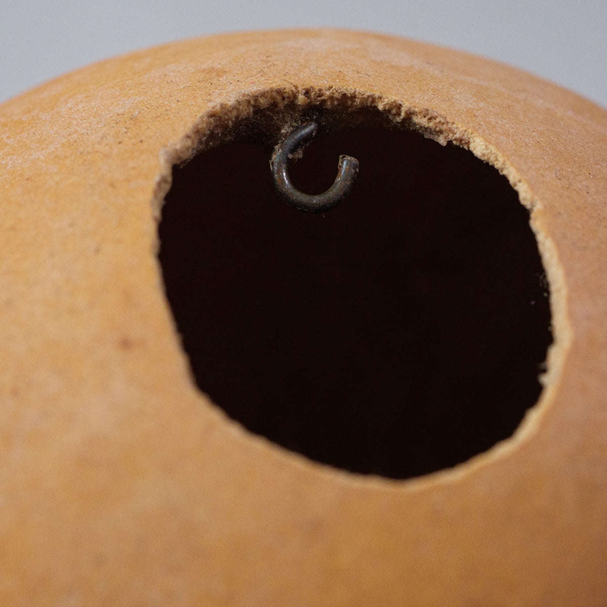 ※ 転倒防止のために、画像にあるように足裏部分には引っ付き虫を付けてありますが、ご自宅では外して頂いても大丈夫です。ひょうたんは割れやすい素材ですので、過度な力で扱わないようにお願いします。