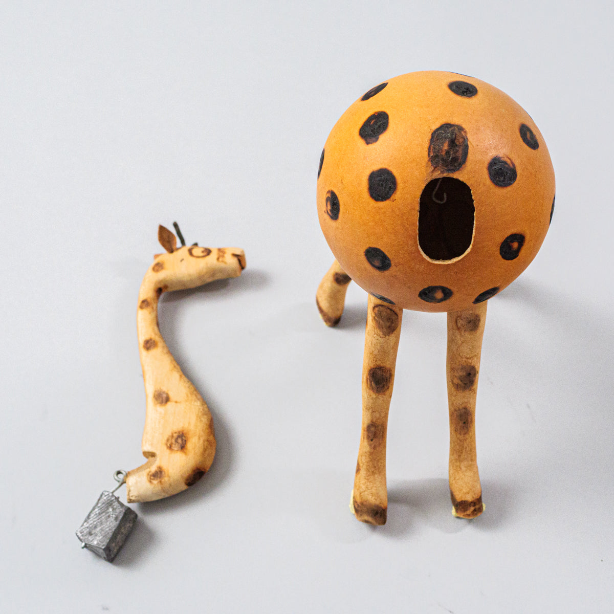 キリン = 95g(送料設定用重量271g) - 主材質:ひょうたん、金属、革(ウサギの耳)