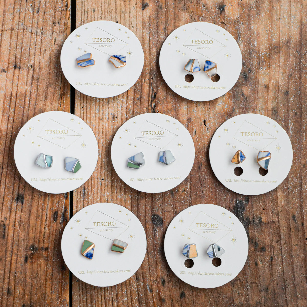 陶器片ピアス・イヤリング(cakeraシリーズ)