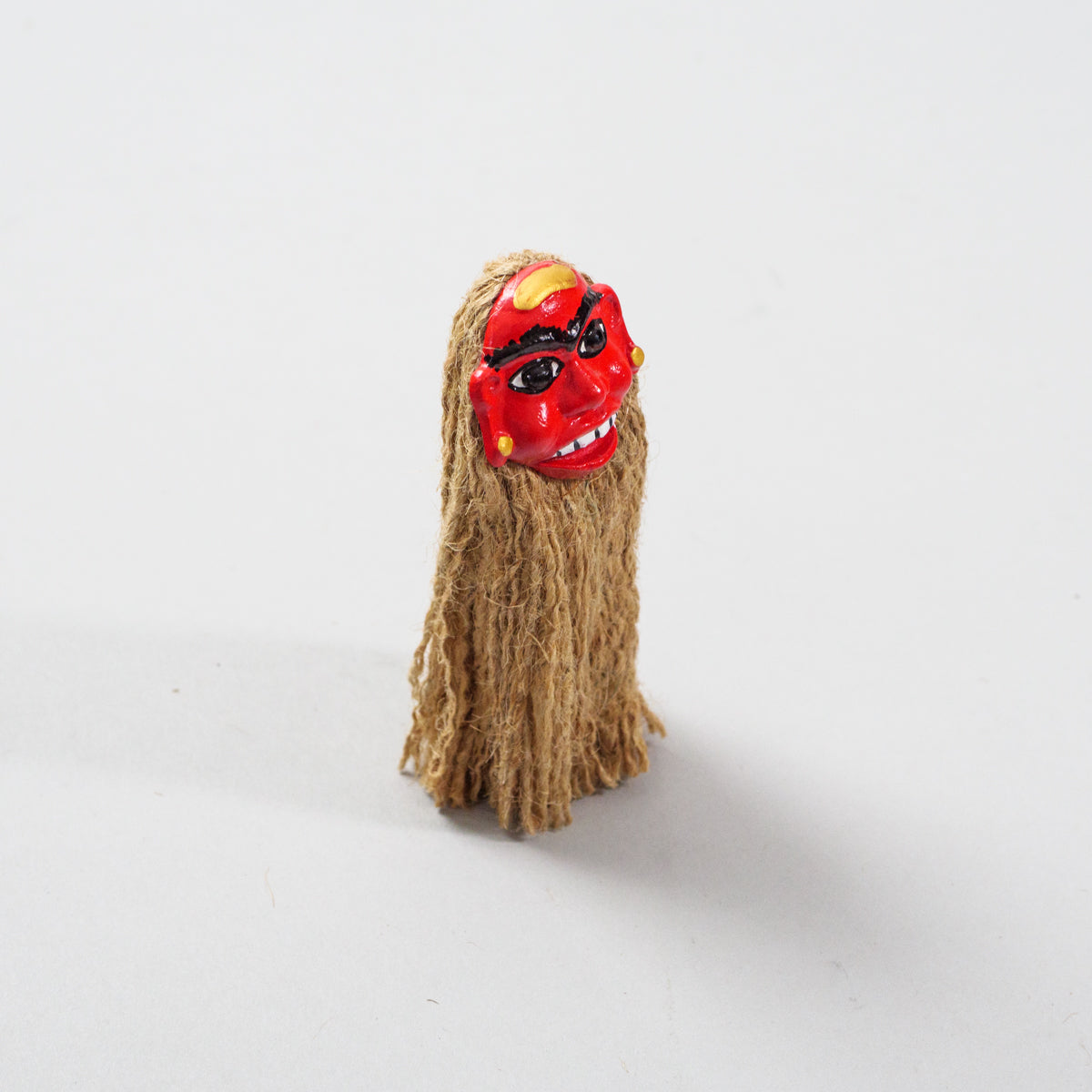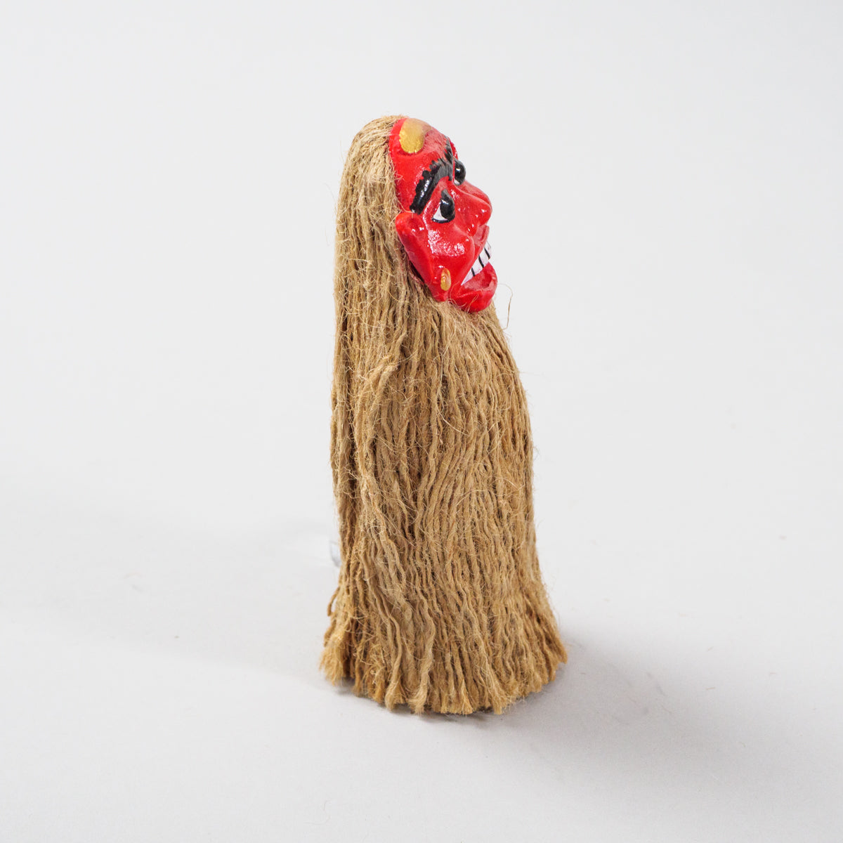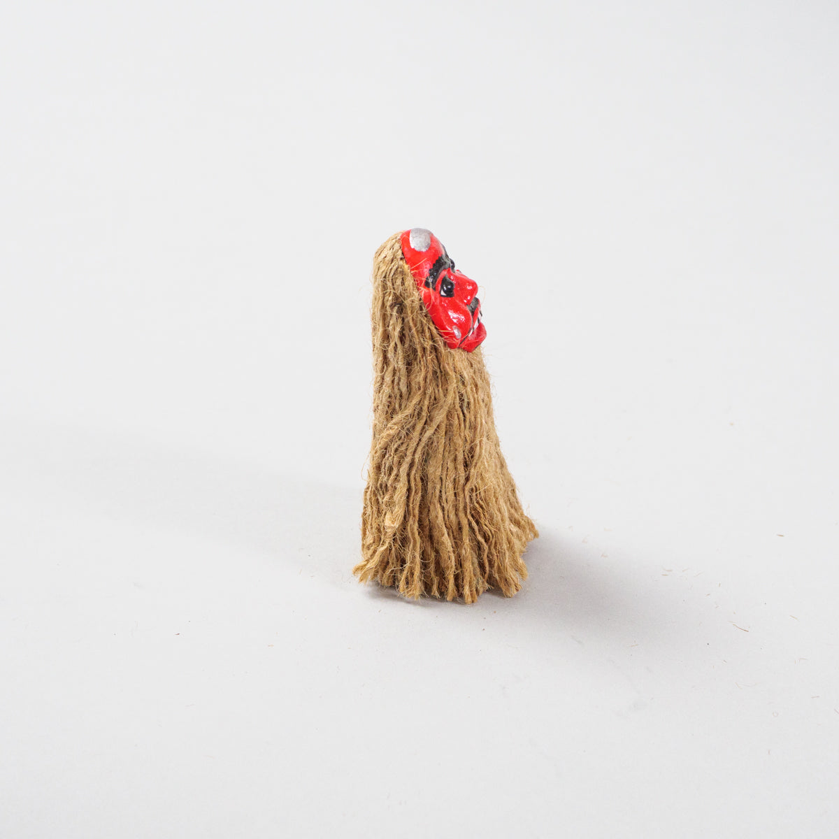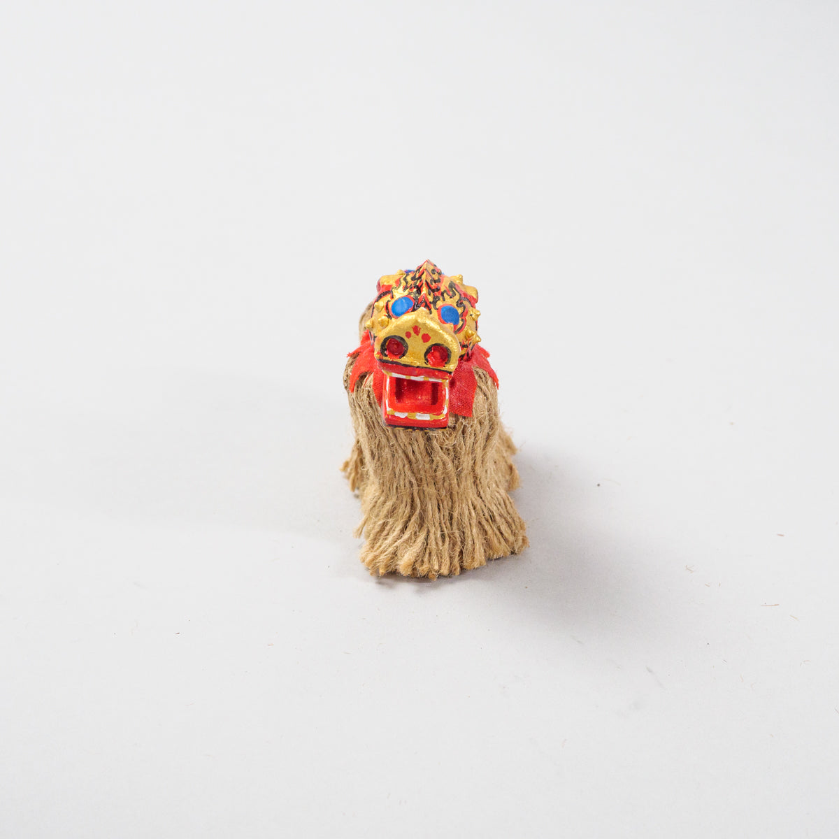 木材と麻紐で作られたラオスのお正月に登場する精霊人形のプーニュ・ニャーニュ・シィン。諸説があるのですが、人間が作り出した精霊がプーニュとニャーニュで、その遣いが獅子のシィンとのことです。すっとぼけた、真っ赤なお顔が可愛らしい置物人形で、芯には木材が使用されており、胴体部分には麻紐が垂れ下がっています。なお獅子のお顔部分は紙粘土で作られているため、お取り扱いにご注意ください。