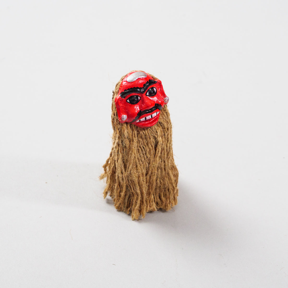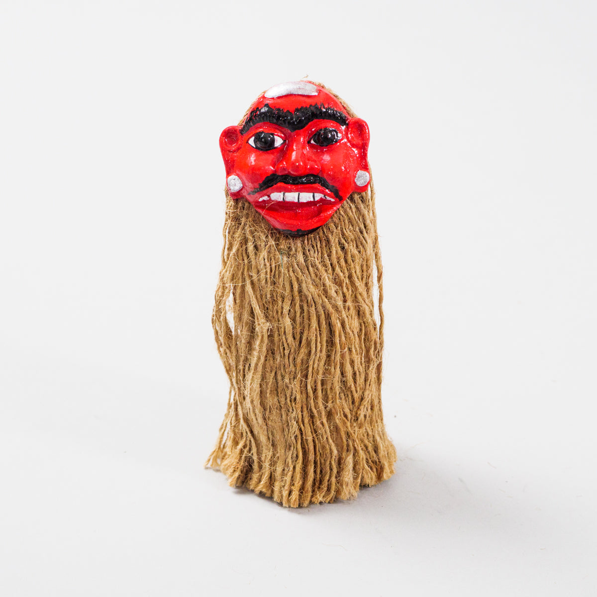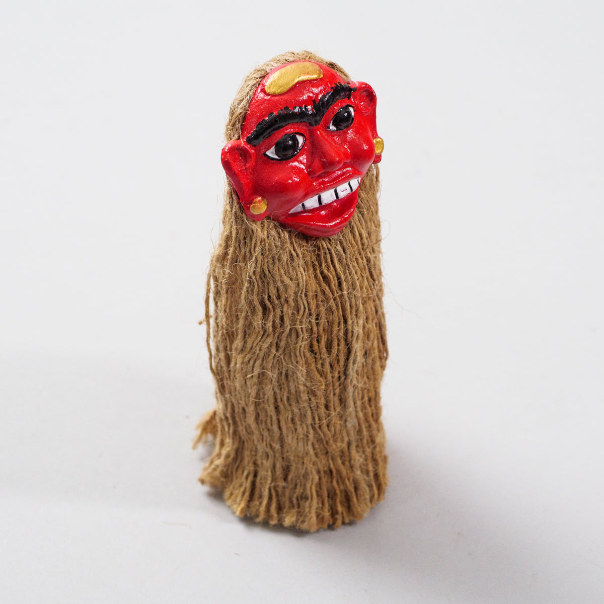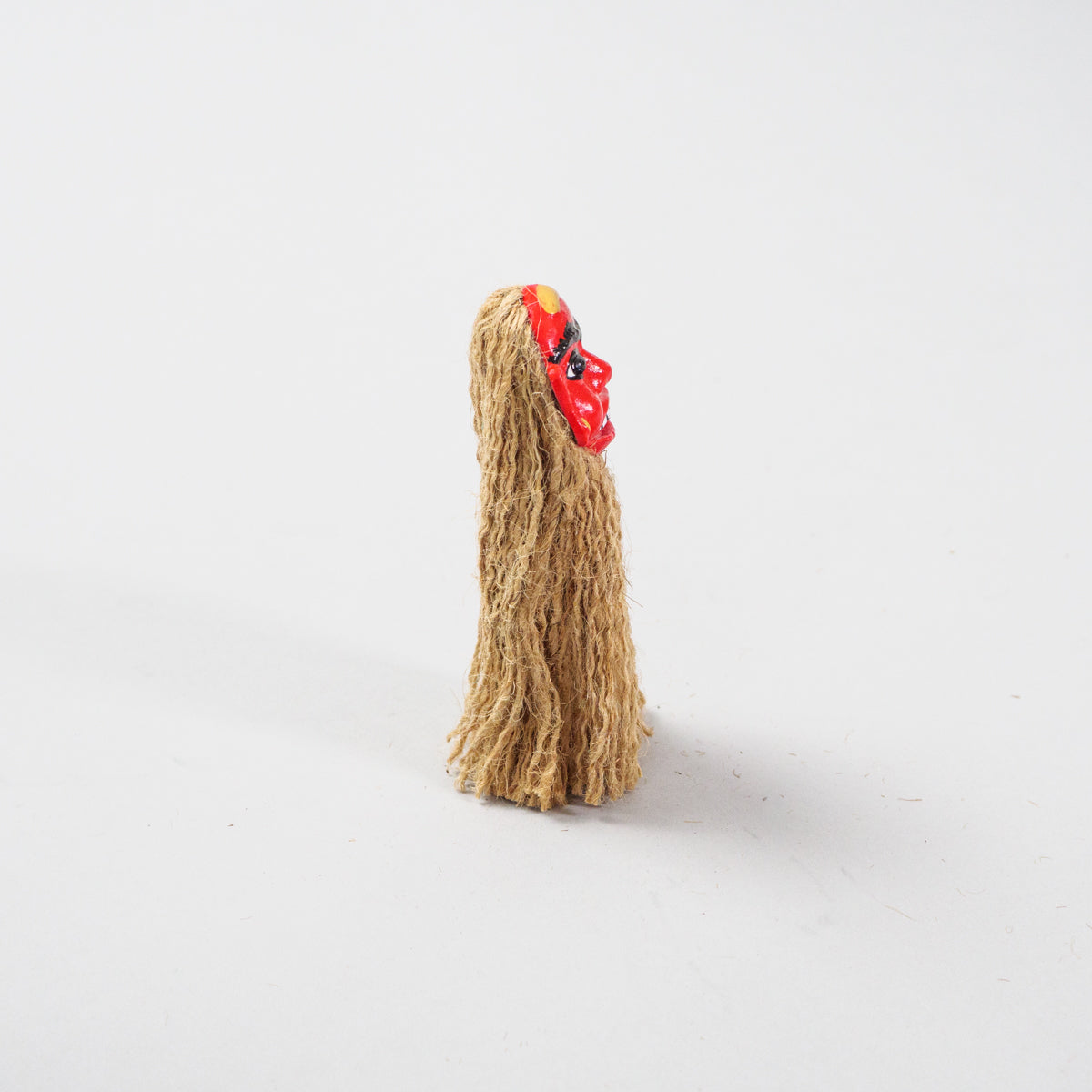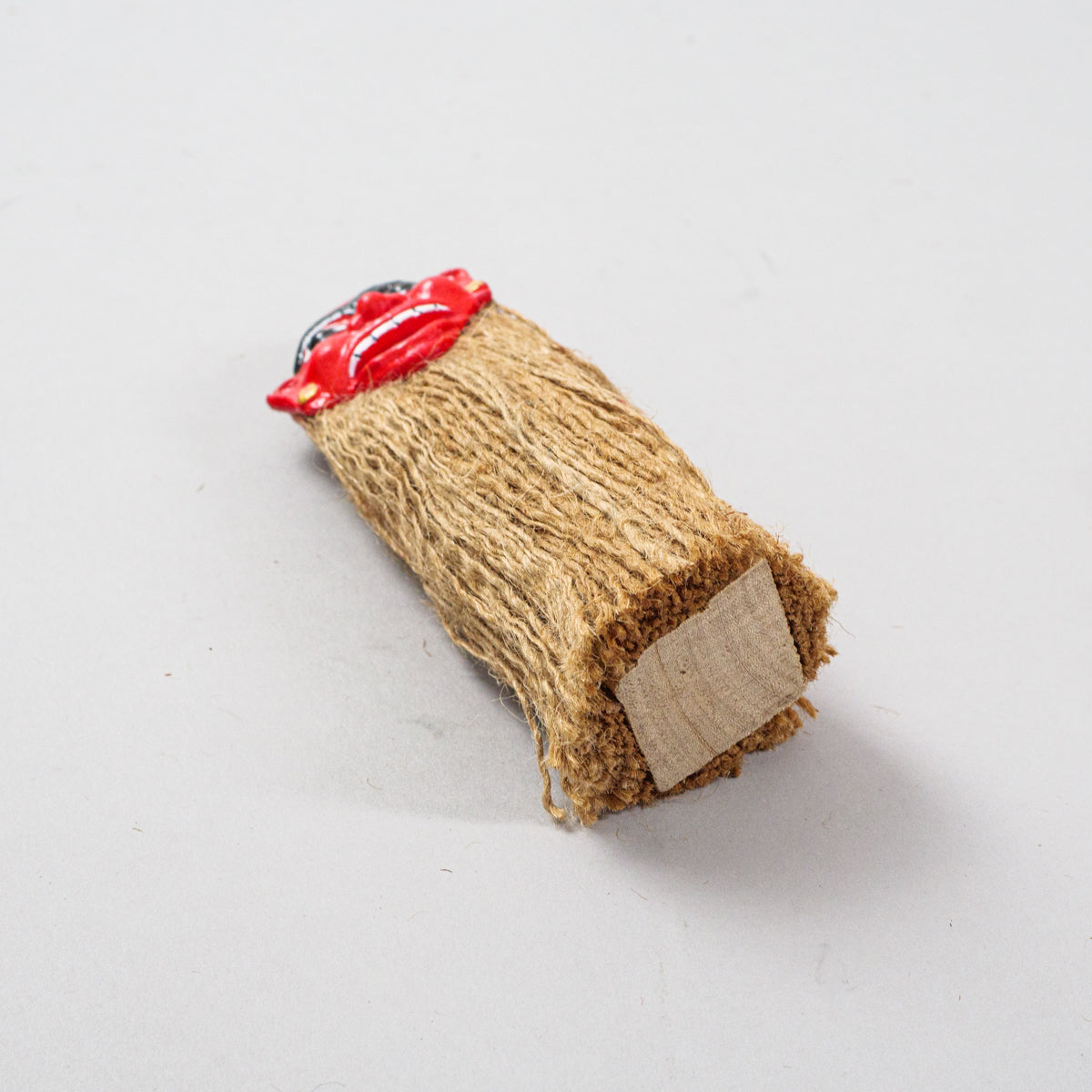 木材と麻紐で作られたラオスのお正月に登場する精霊人形のプーニュ・ニャーニュ・シィン。諸説があるのですが、人間が作り出した精霊がプーニュとニャーニュで、その遣いが獅子のシィンとのことです。すっとぼけた、真っ赤なお顔が可愛らしい置物人形で、芯には木材が使用されており、胴体部分には麻紐が垂れ下がっています。なお獅子のお顔部分は紙粘土で作られているため、お取り扱いにご注意ください。