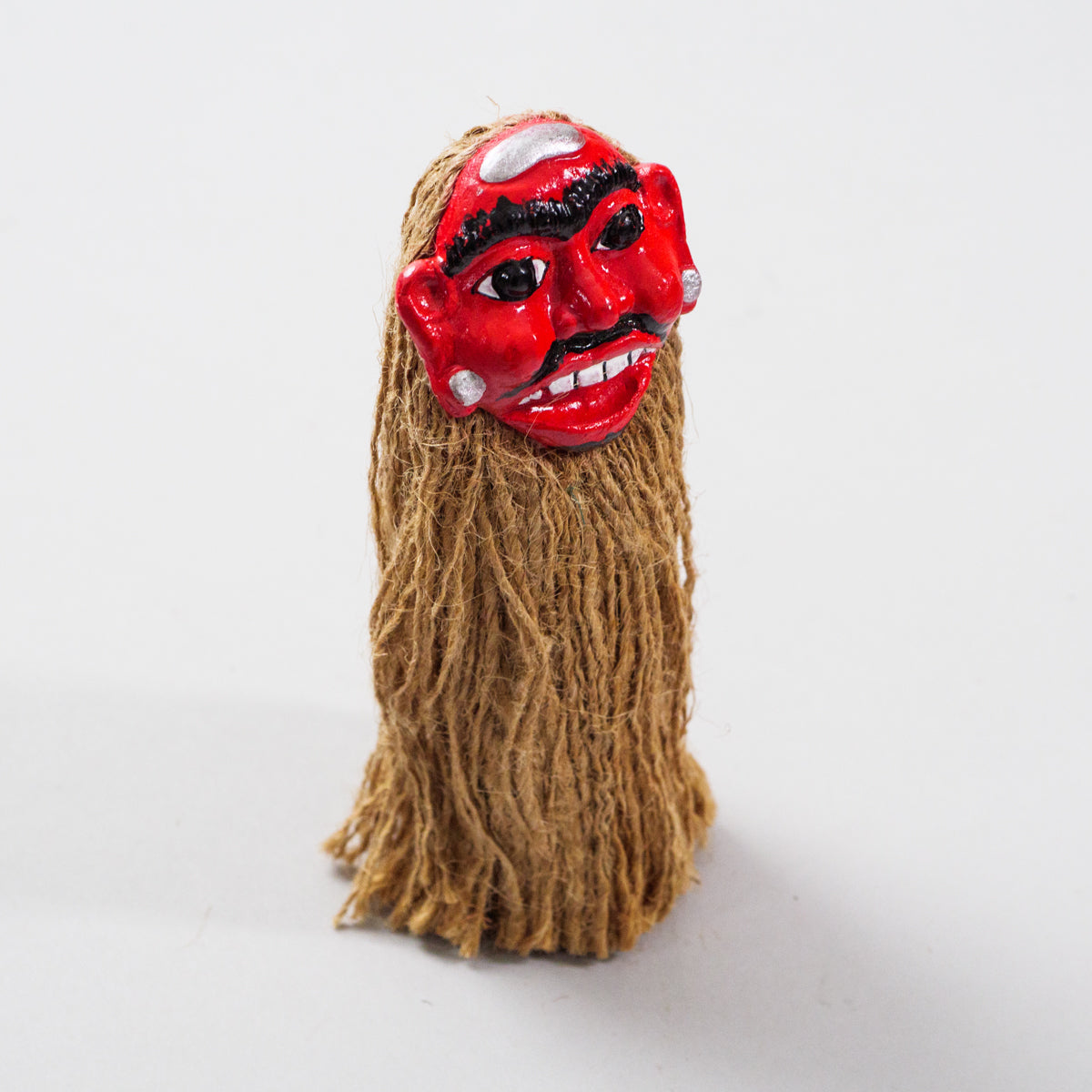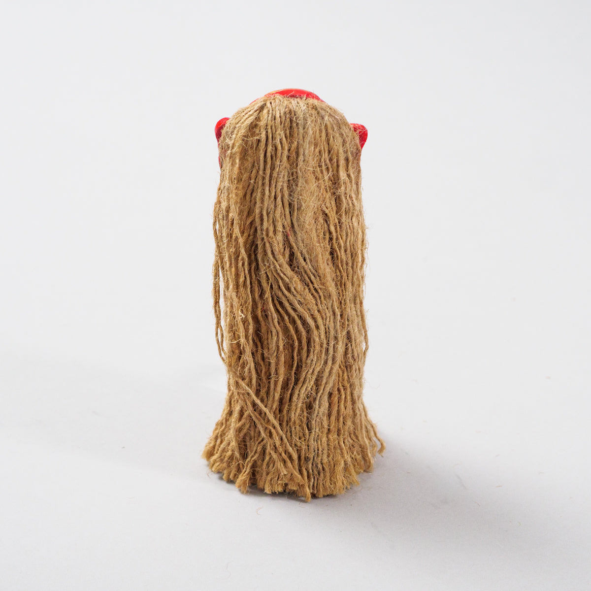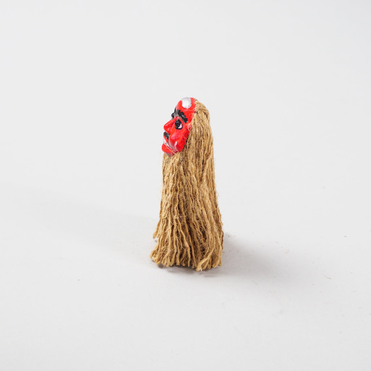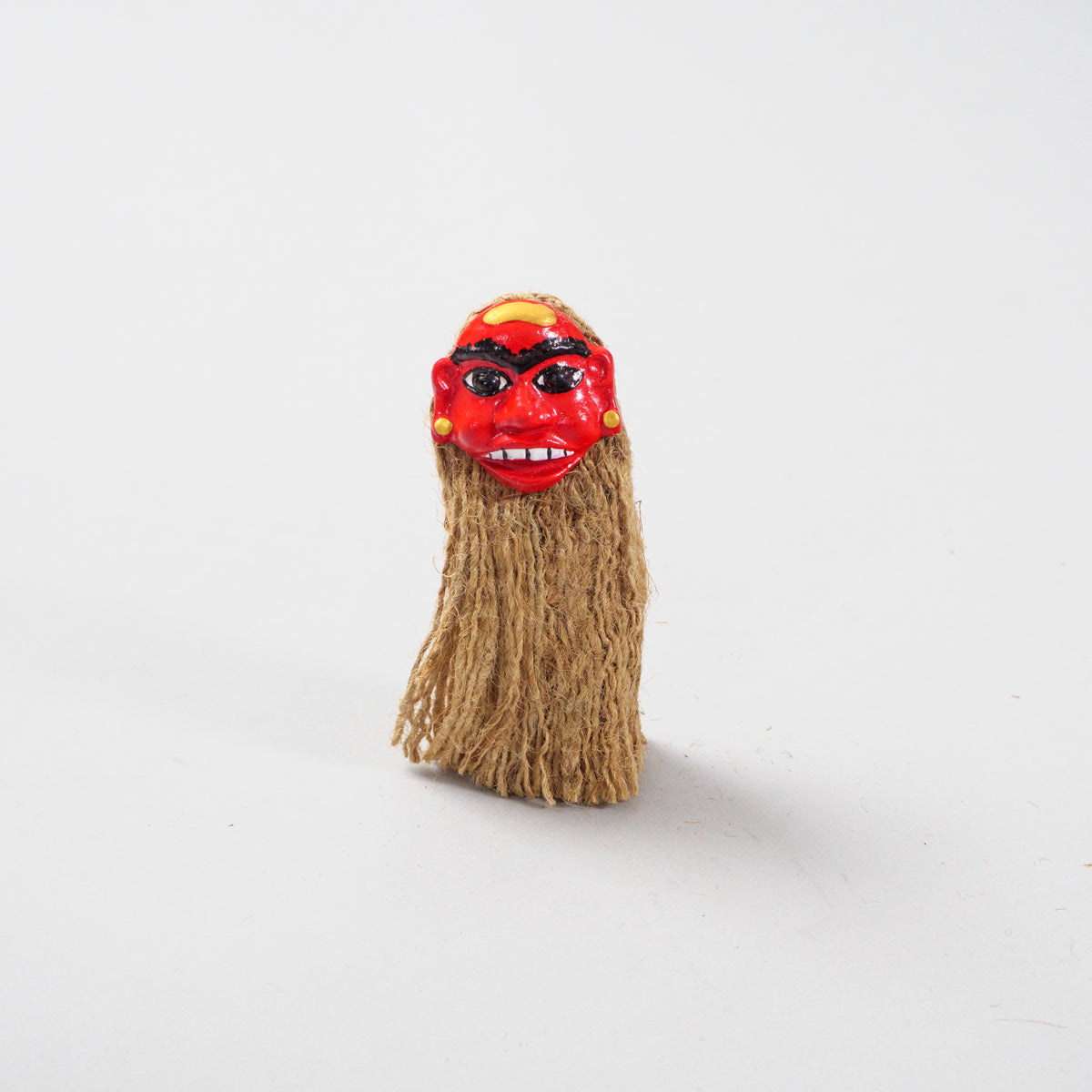 木材と麻紐で作られたラオスのお正月に登場する精霊人形のプーニュ・ニャーニュ・シィン。諸説があるのですが、人間が作り出した精霊がプーニュとニャーニュで、その遣いが獅子のシィンとのことです。すっとぼけた、真っ赤なお顔が可愛らしい置物人形で、芯には木材が使用されており、胴体部分には麻紐が垂れ下がっています。なお獅子のお顔部分は紙粘土で作られているため、お取り扱いにご注意ください。