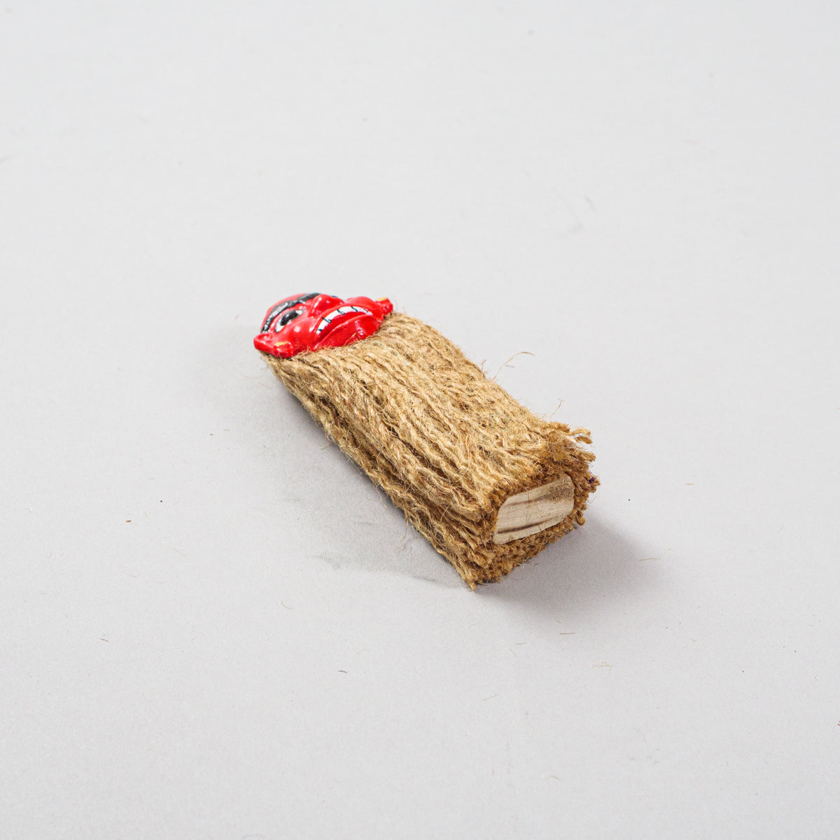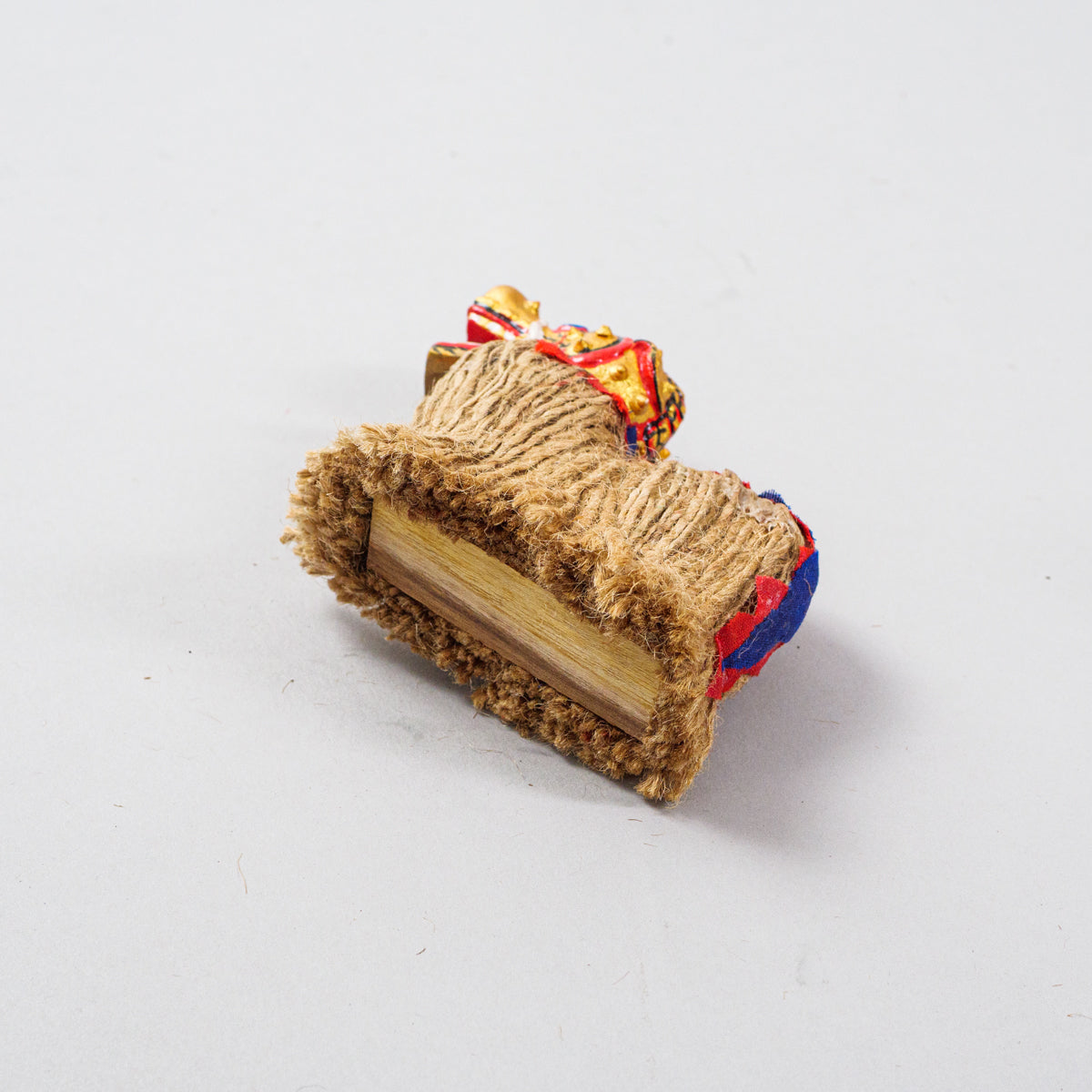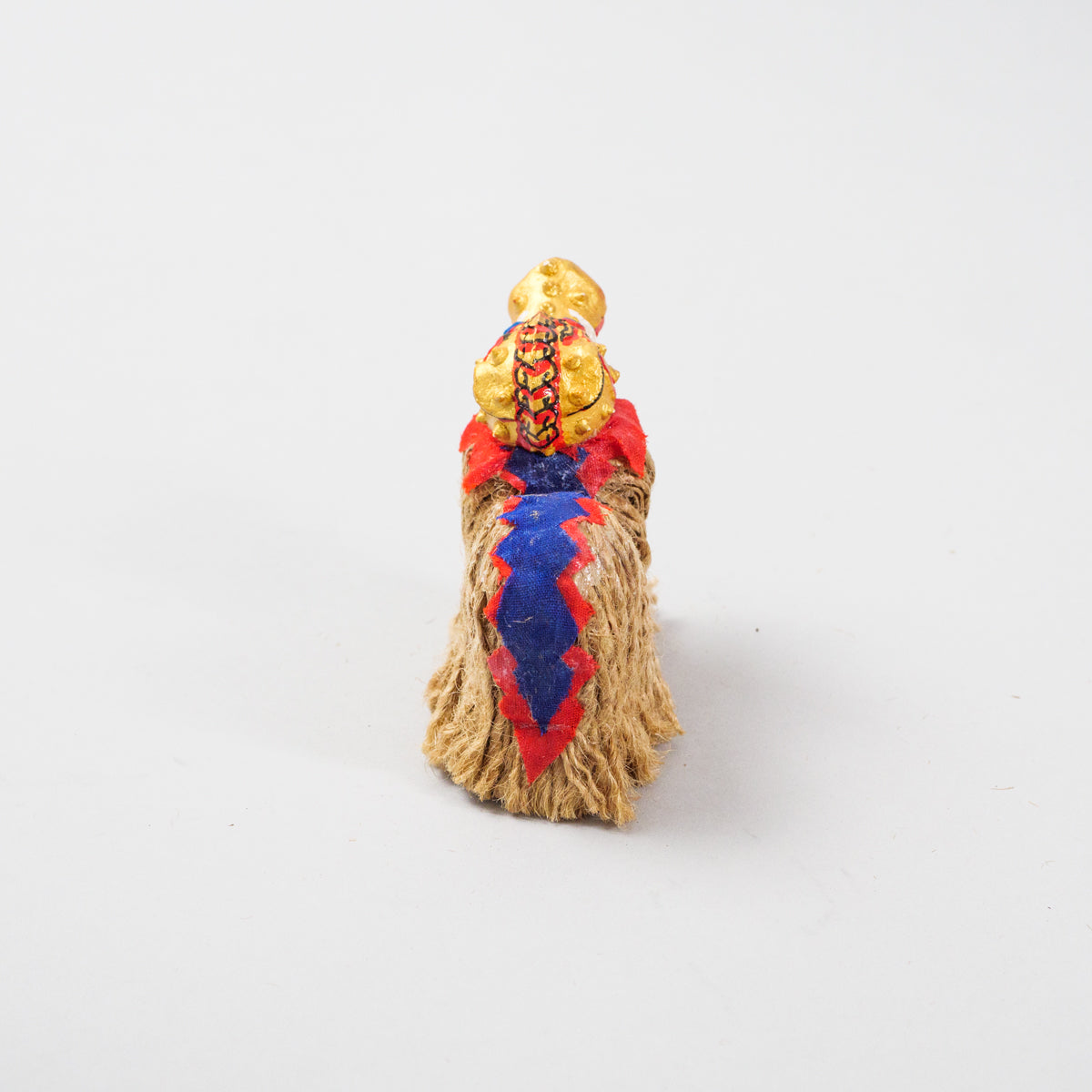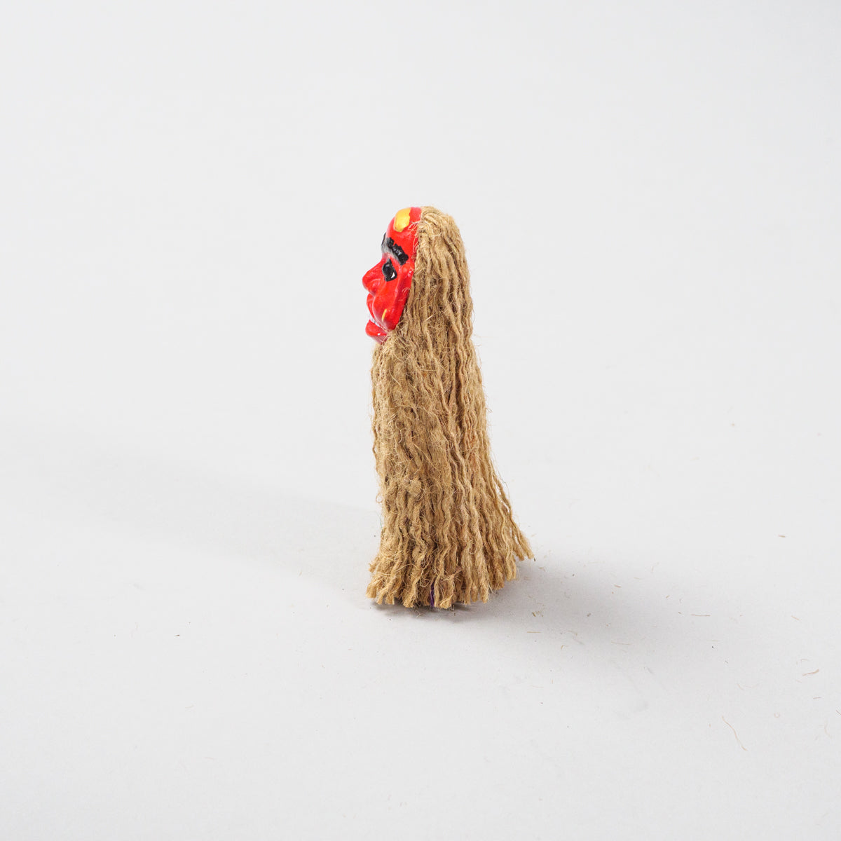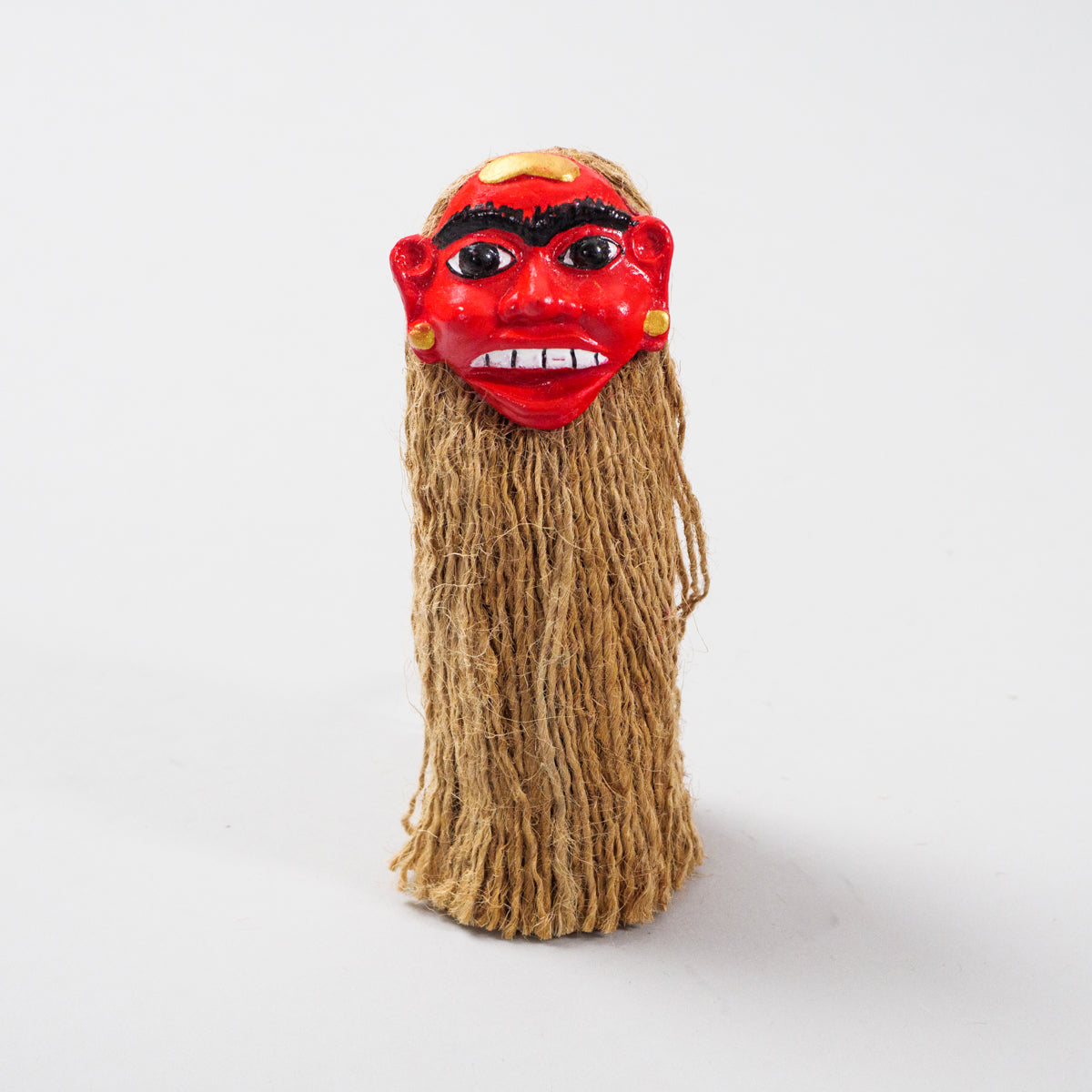木材と麻紐で作られたラオスのお正月に登場する精霊人形のプーニュ・ニャーニュ・シィン。諸説があるのですが、人間が作り出した精霊がプーニュとニャーニュで、その遣いが獅子のシィンとのことです。すっとぼけた、真っ赤なお顔が可愛らしい置物人形で、芯には木材が使用されており、胴体部分には麻紐が垂れ下がっています。なお獅子のお顔部分は紙粘土で作られているため、お取り扱いにご注意ください。