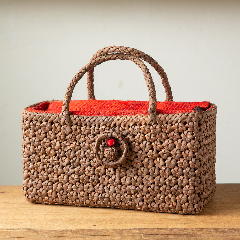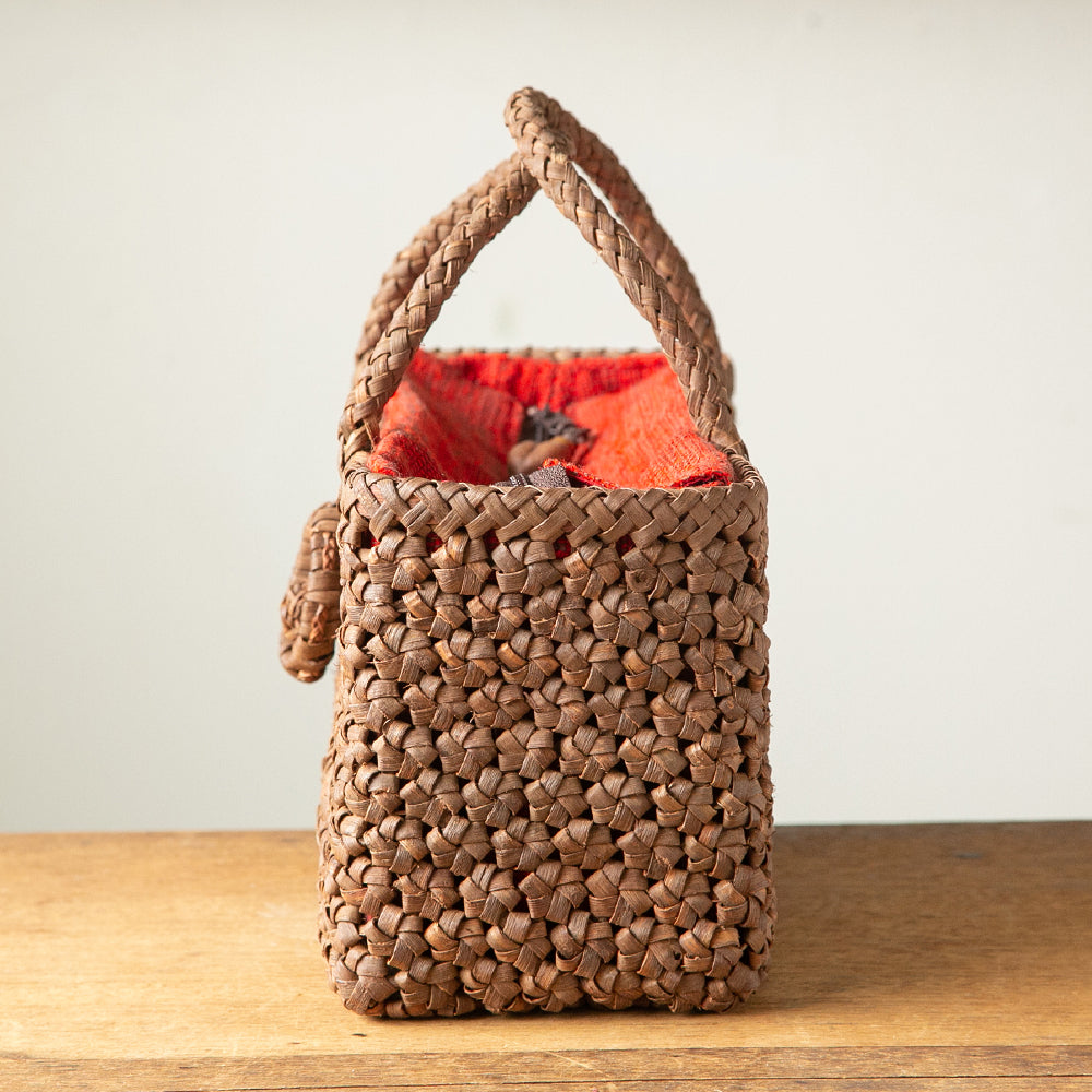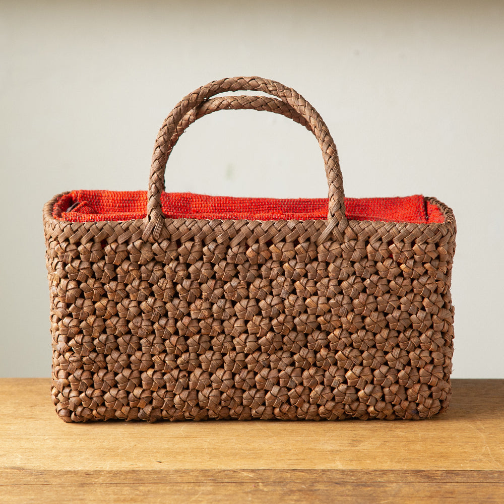 新潟の裂織り/山葡萄作家さん仁科俊子氏による山葡萄のバスケット。地元の新潟の素材を使用し、内側には裂織の中敷付き。山葡萄のカゴは親子3代使用できると言われる程丈夫で、使用するごとに、手の脂でとても美しい飴色に経年変化をしてきます。