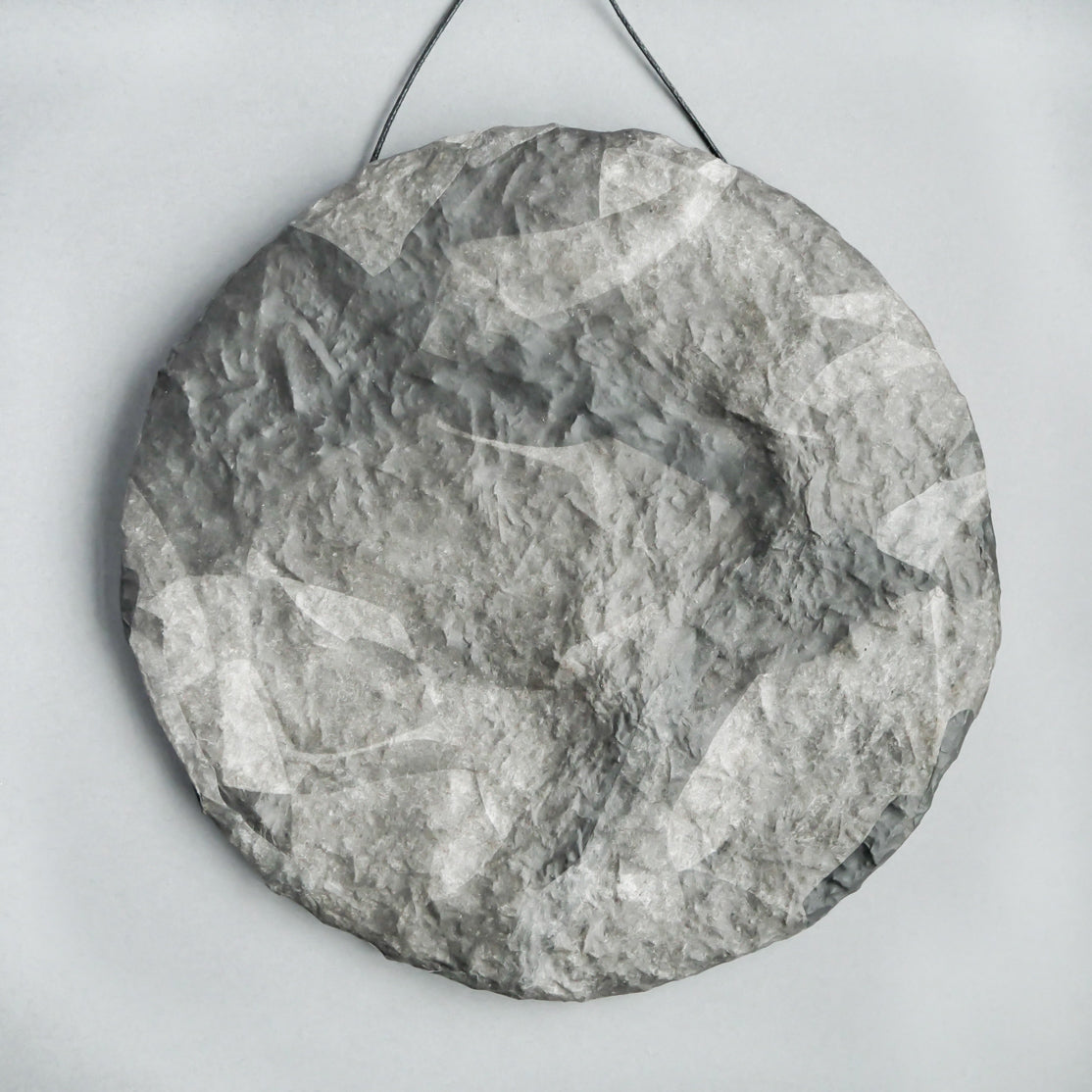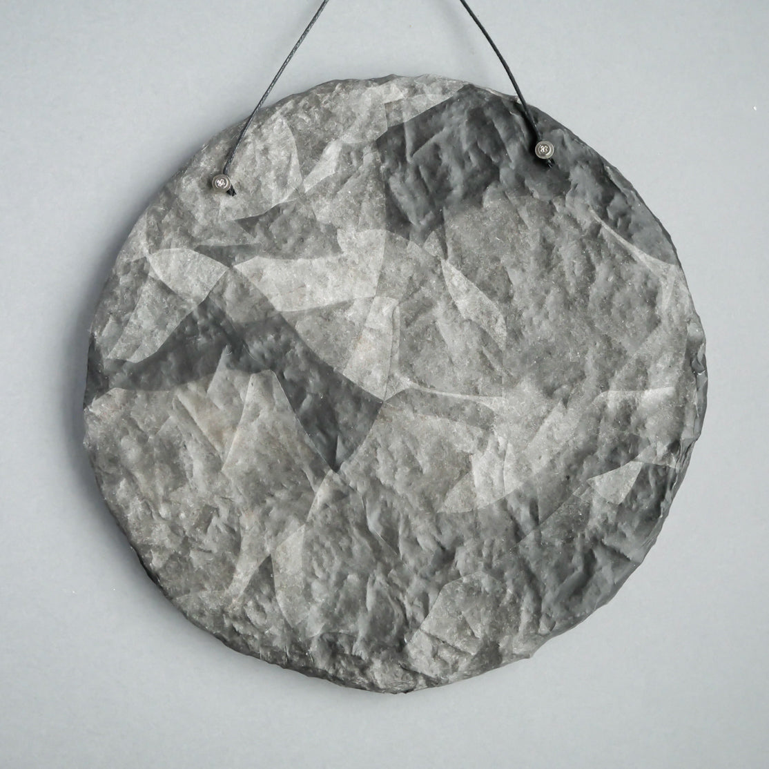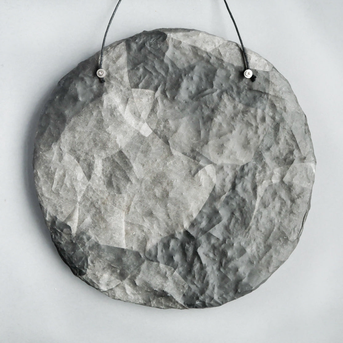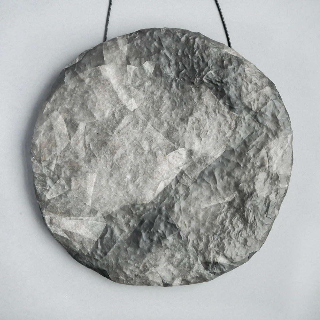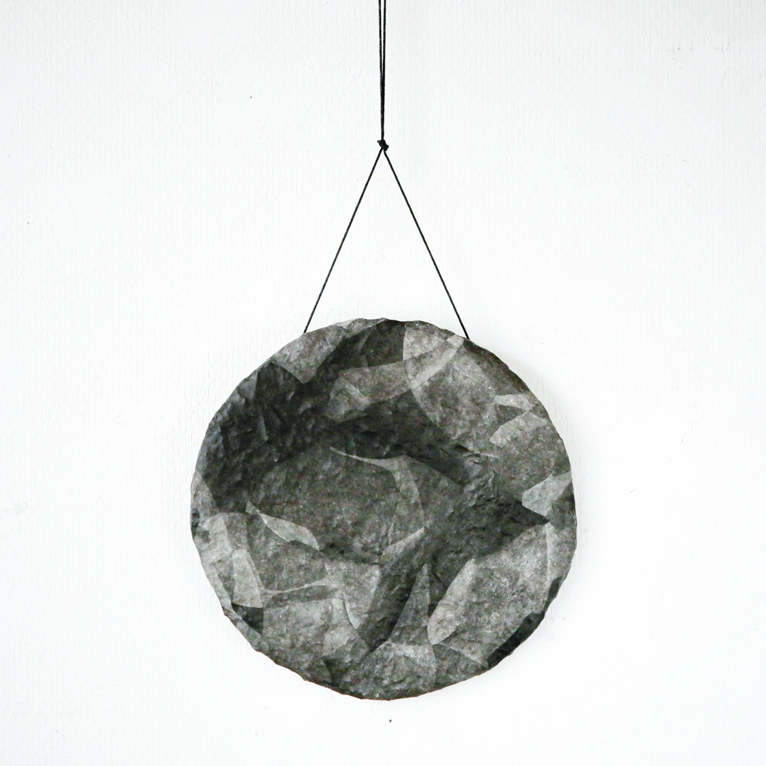 台湾の美術作家、林希羽(V vv studio)による壁掛けオブジェ。こちらは芯の部分を茶紙で成形し、表面に幾重にも習字の半紙を重ね、さらに表面をグルーで固めて制作したもの。最後の写真のように背面にはネジ2つで、壁掛け用の紐を固定しております。モノクロの質感が美しいミニマルなインテリアです。