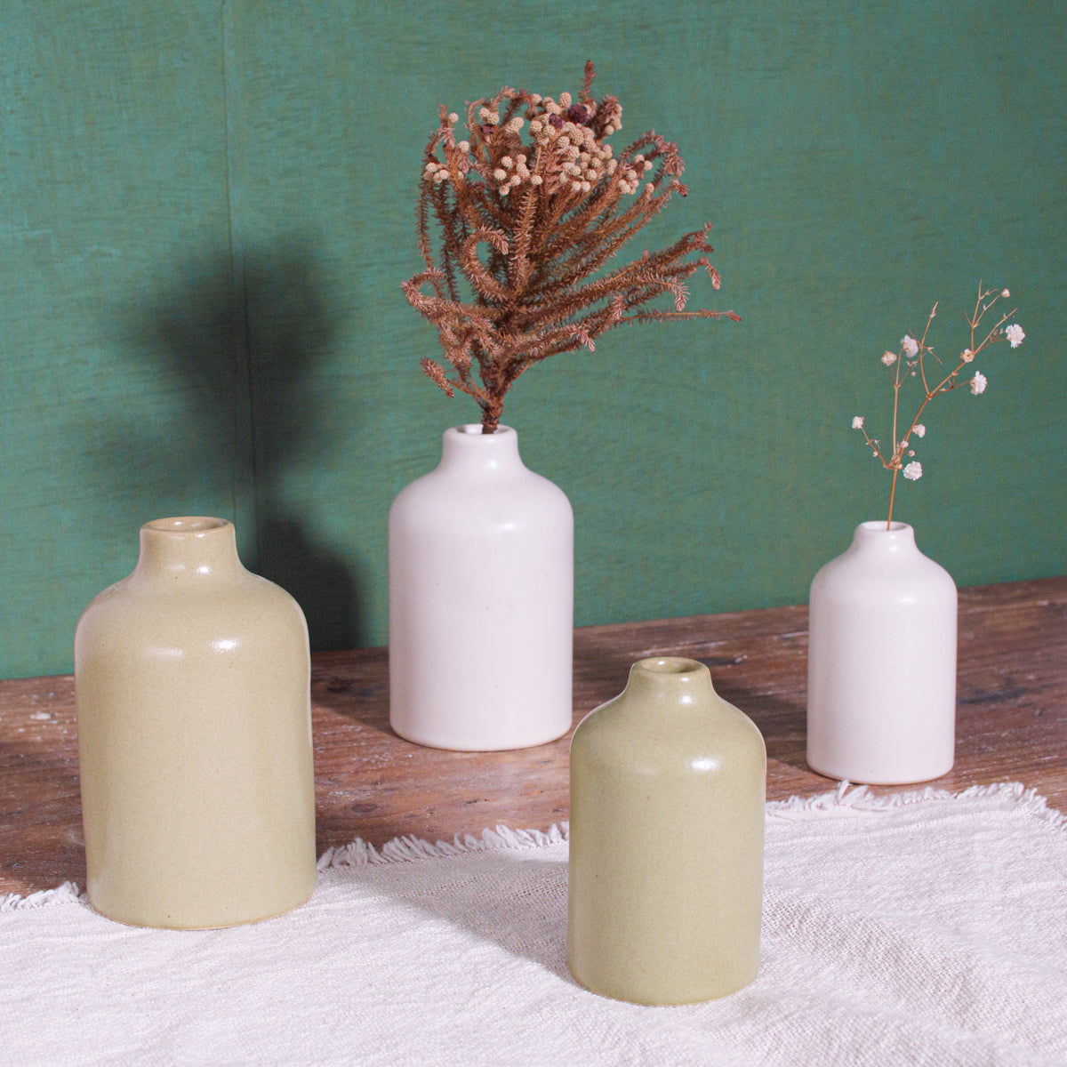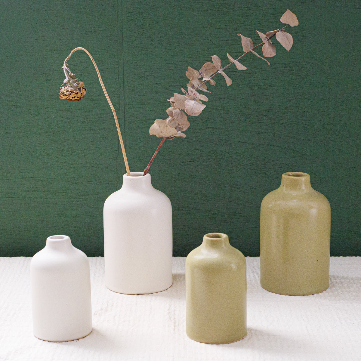 インドネシアの古都ジョグジャカルタ郊外にある小さな陶器工房と共同制作した一輪挿し入れ。SとLの2サイズあり、さらにライトグリーンとホワイトの2色展開となります。