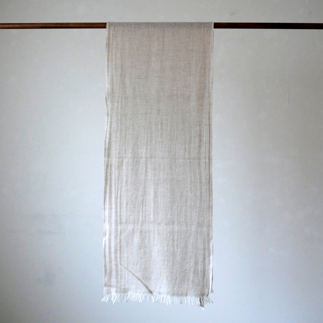 とても繊維が細く弾力性があり、極上の柔らかさを誇る高級素材である手織りのカシミヤのマフラー。同シリーズのものと比べ、幅が半分ほどの細いマフラータイプになります。ヒマラヤ山脈に生息する山羊の毛を使用したものです。保温性や保湿性に優れており、とても重宝します。お洗濯の際にはドライクリーニングに出してください。