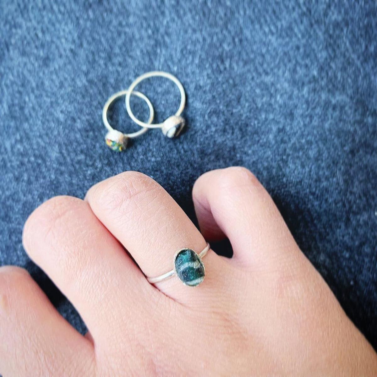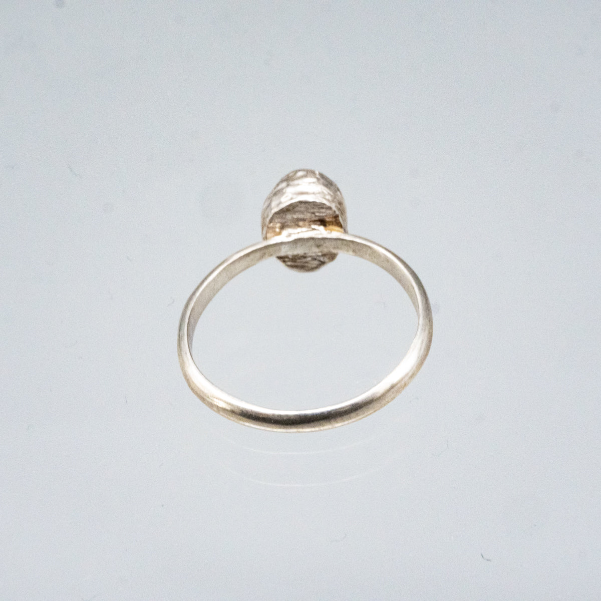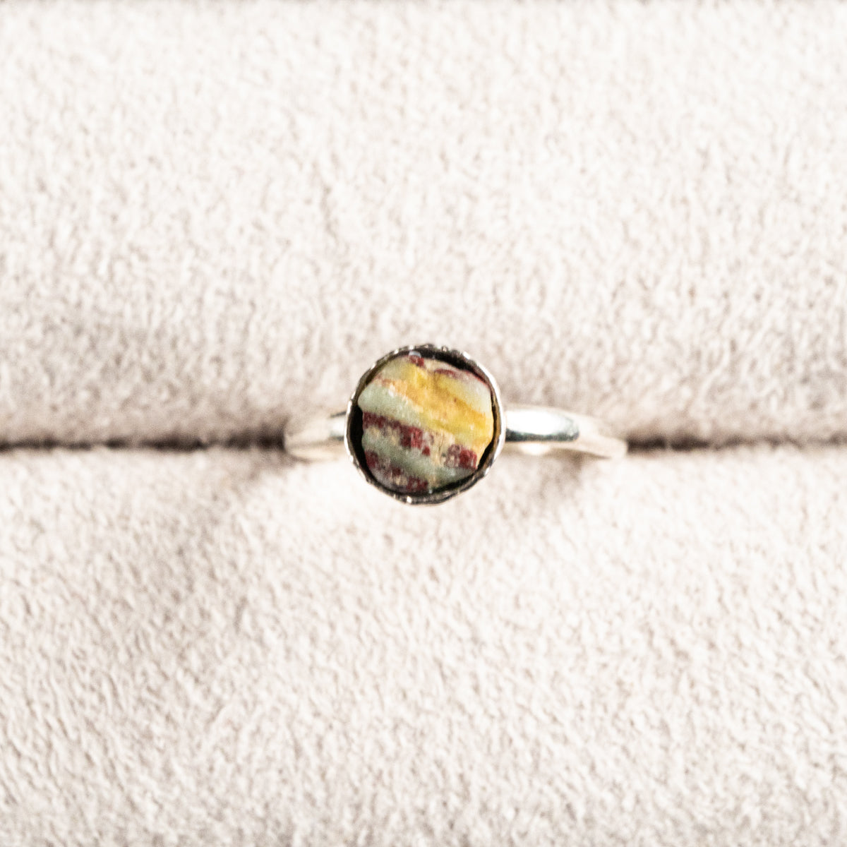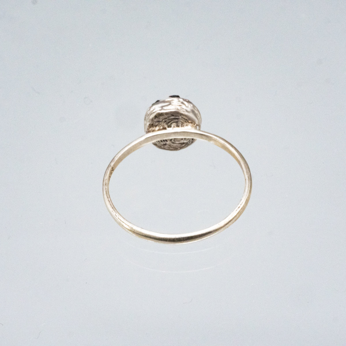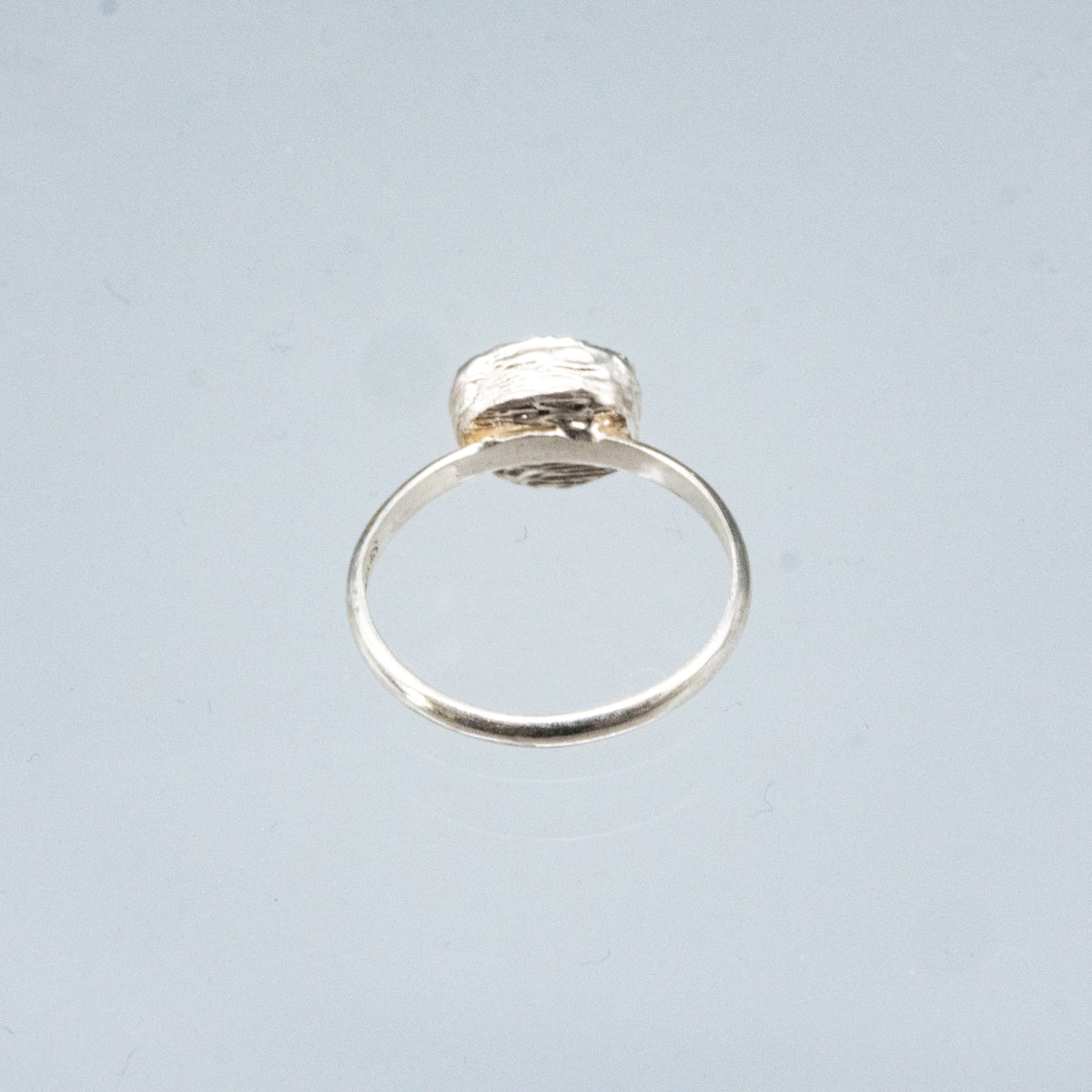 東京のアトリエサジが1000〜2000年前くらいの古代ローマンモザイクとんぼ玉破片(ガラス)の形を丸く使えるようにし、シルバー925のリングとして仕上げた美しいワンアンドオンリーなリング。 長い年月を経て新たな形で蘇った歴史を感じる逸品です。