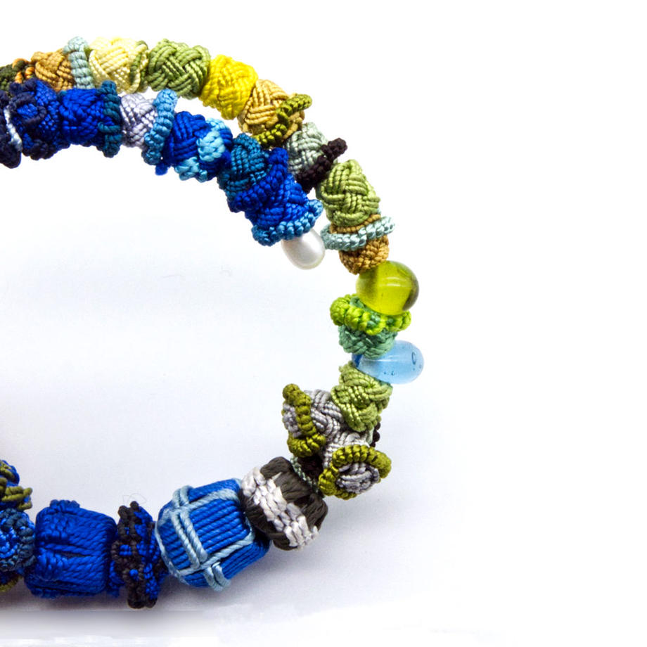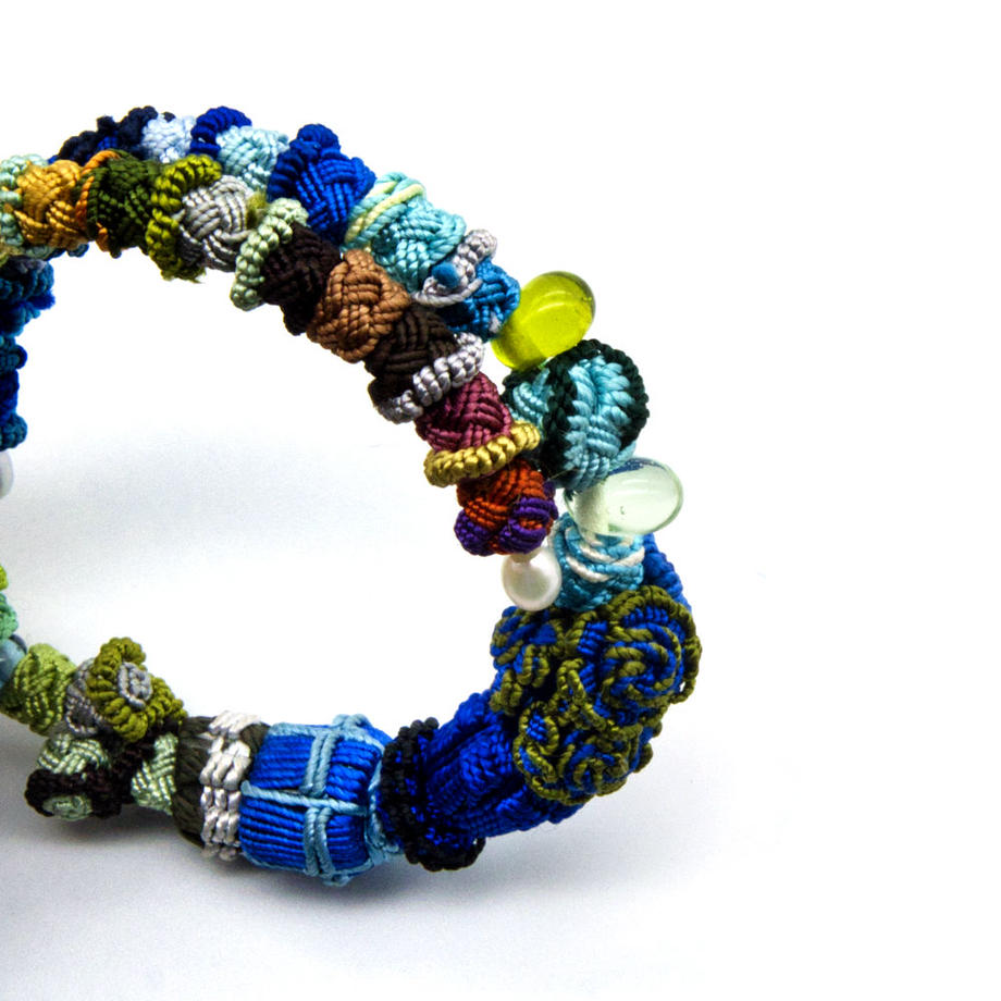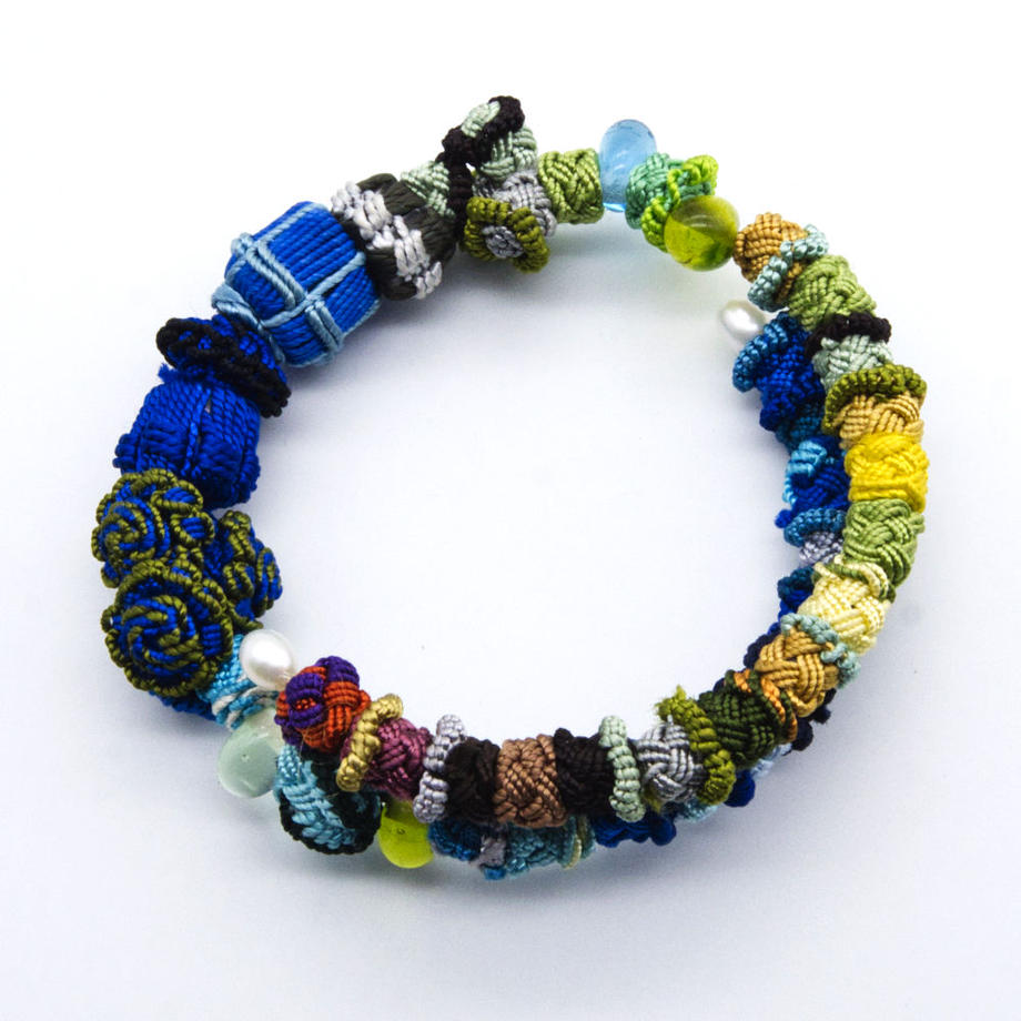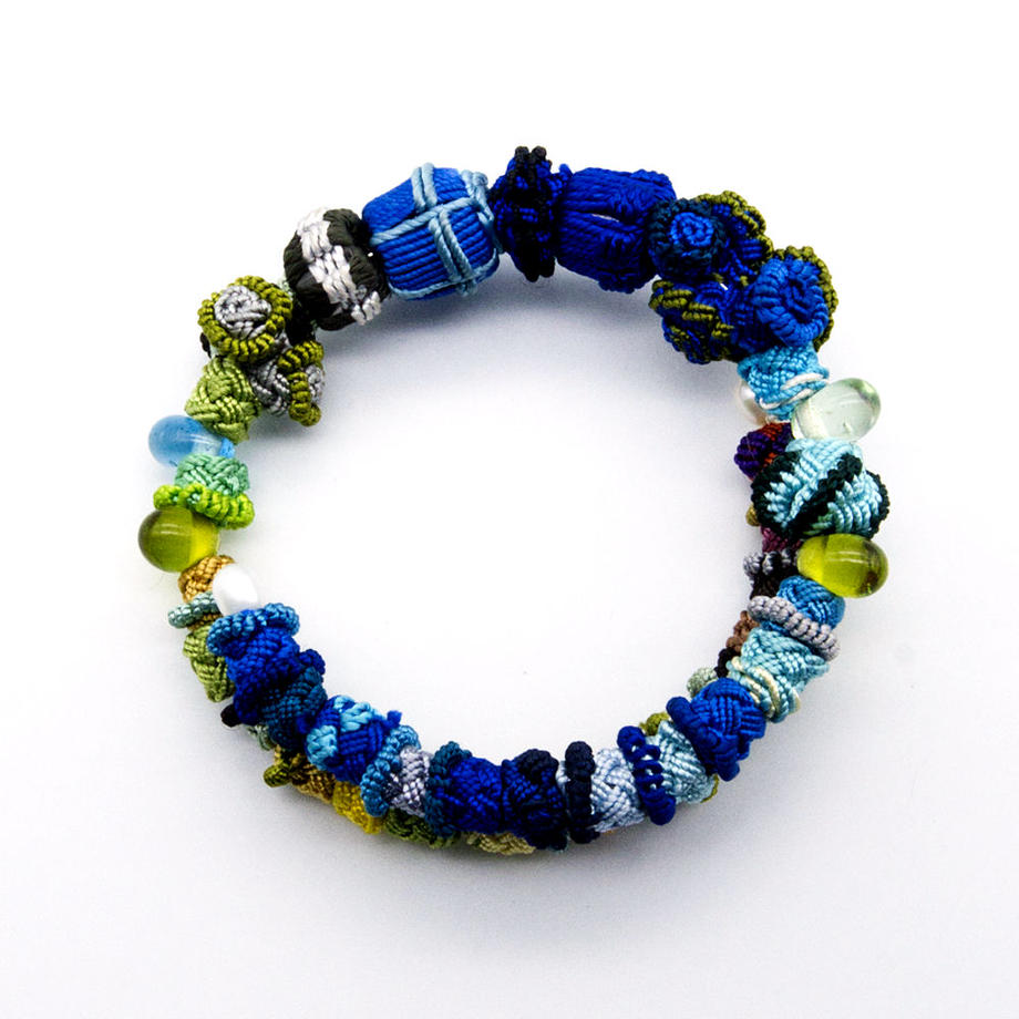 モロッコの女性たちが作っている、サボテンの繊維で作られたボタンを東京のブランド、アトリエサジ によってアクセサリーにしたもの。とても軽量なので普段使いとしてオススメです。こちらは自由に開閉する記憶形状のような作りなのでフリーサイズになります。