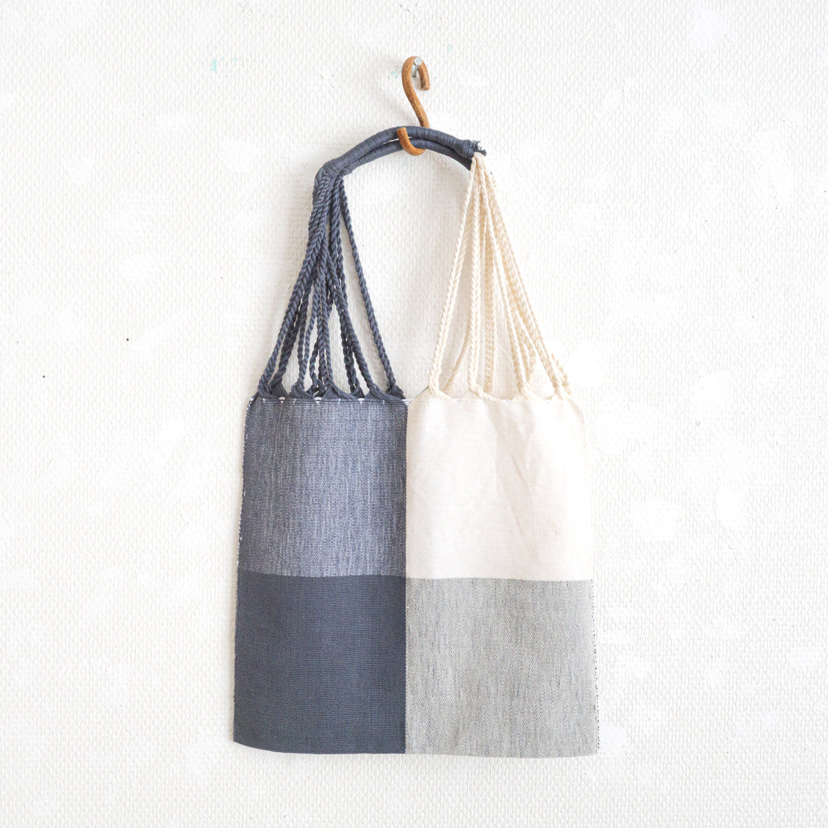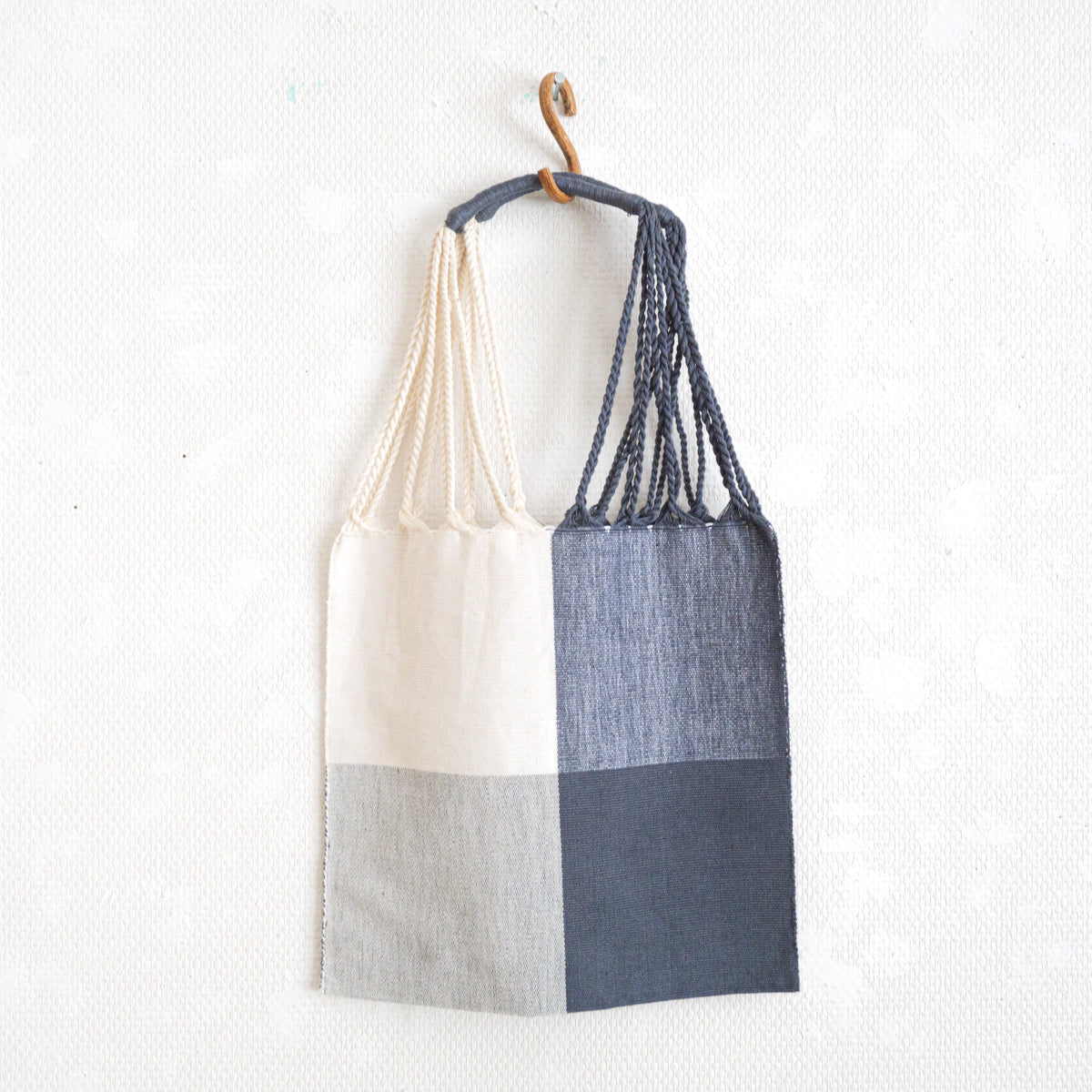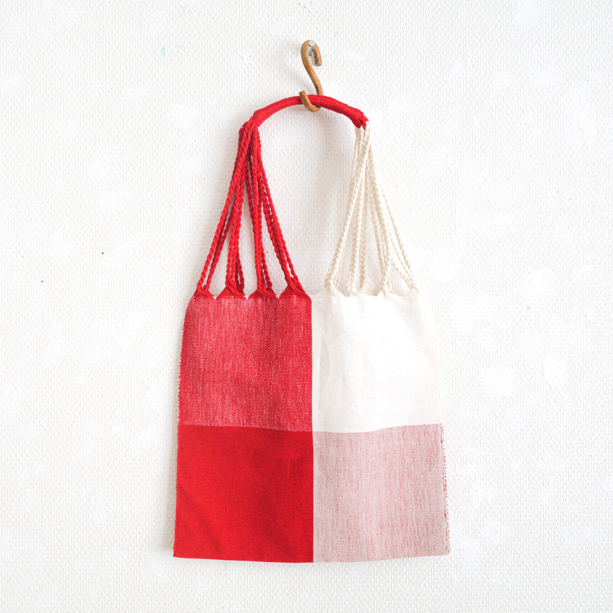 大人気のメキシコはチアパス州の手織り生地を使用したハンモックバッグ。上から広げると、まるでハンモックのような形をしております。布端のフリンジを持ち手にした独創的なデザインがなんとも可愛らしいです。マチはございませんが、見た目以上にたっぷり入り、物を入れた時の形もふんわりしていて綺麗です。こちらは可愛らしいSサイズになります。