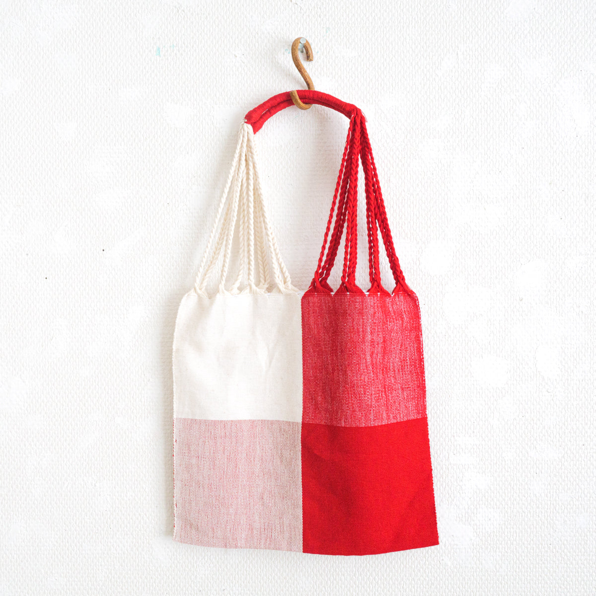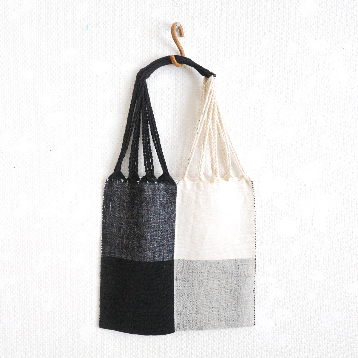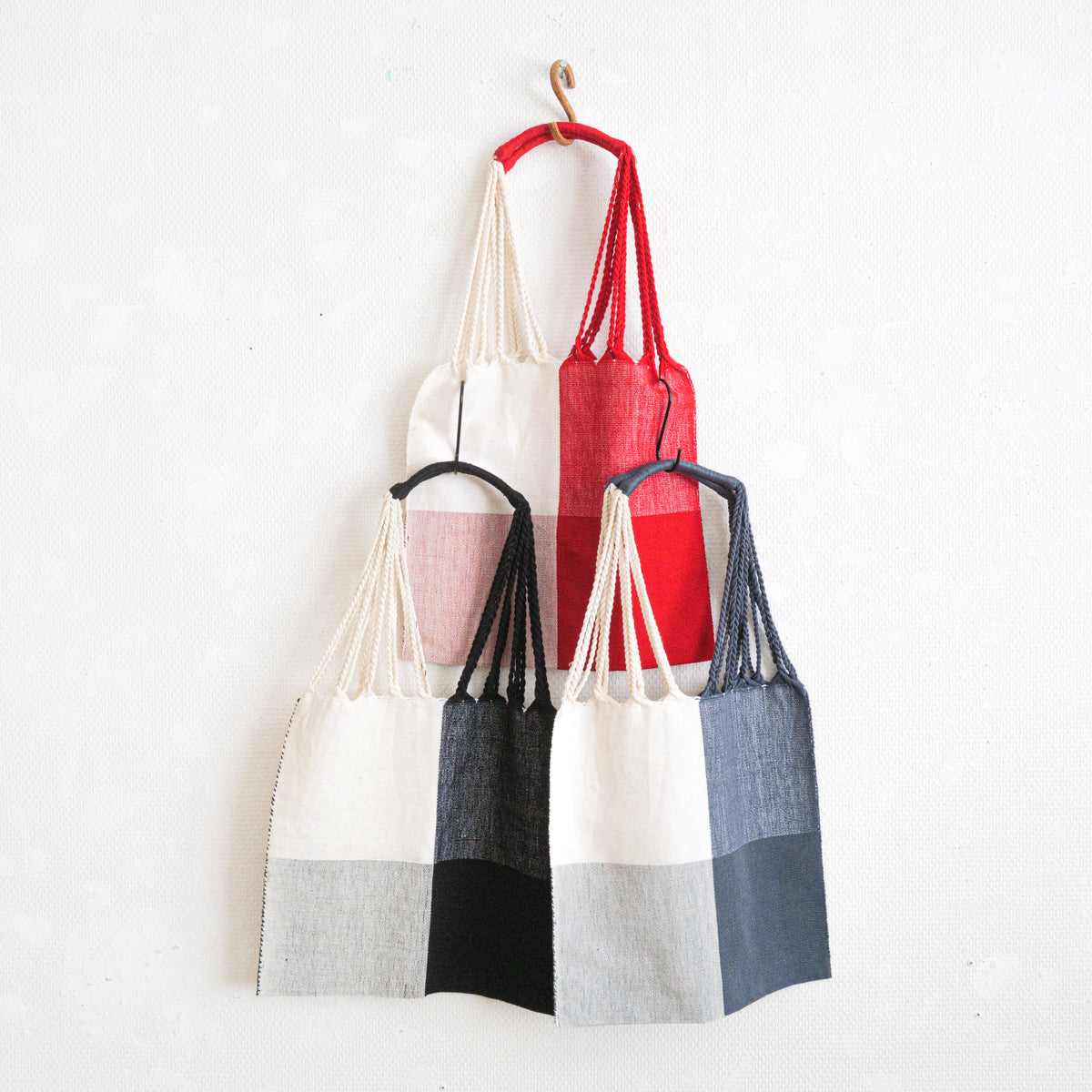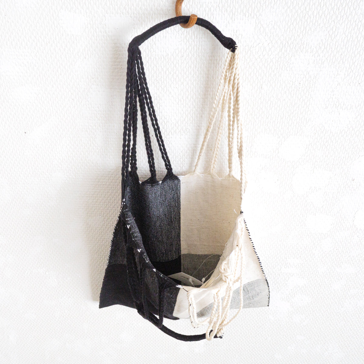 大人気のメキシコはチアパス州の手織り生地を使用したハンモックバッグ。上から広げると、まるでハンモックのような形をしております。布端のフリンジを持ち手にした独創的なデザインがなんとも可愛らしいです。マチはございませんが、見た目以上にたっぷり入り、物を入れた時の形もふんわりしていて綺麗です。こちらは可愛らしいSサイズになります。