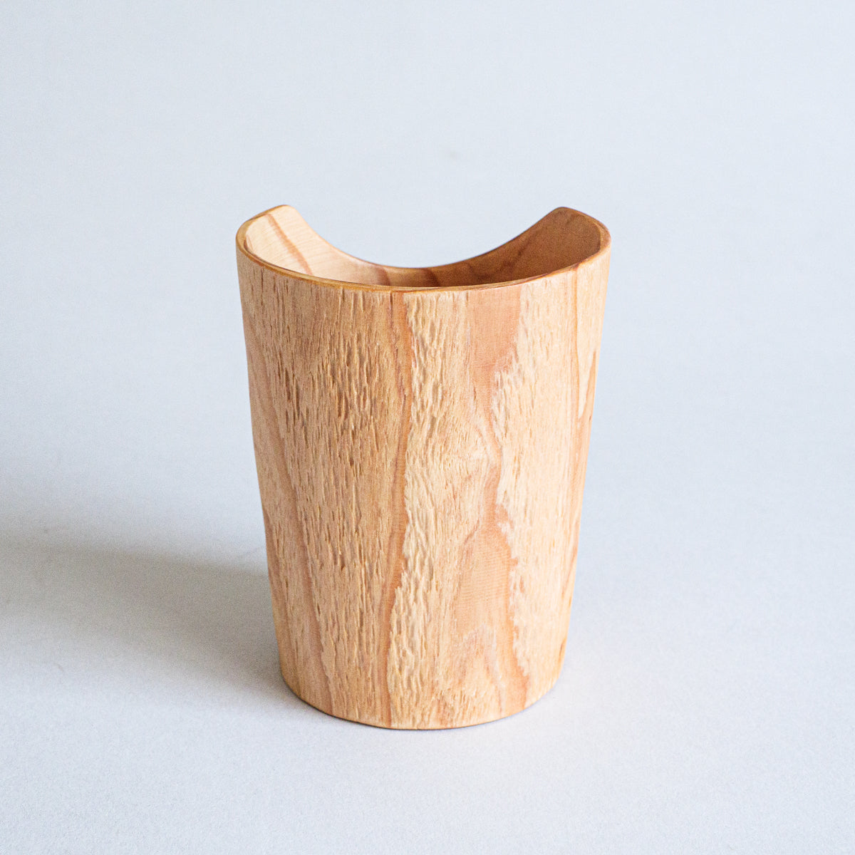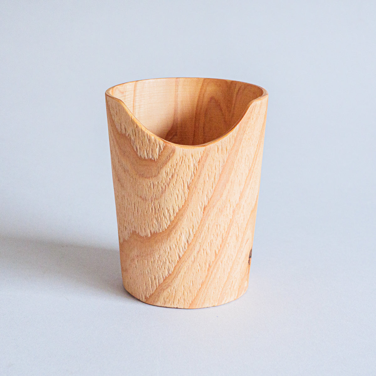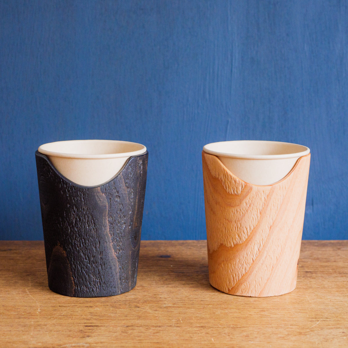 当店のロングセラーアイテム。鹿児島県霧島市の山中にある工房FUQUGI(フクギ)にて、制作された紙コップホルダー。一般的な紙コップのサイズが入る大きさです。表面は安全な食用のウレタン塗装を施してあり、普通に洗剤で洗えるのも嬉しいところです。木製製品ですので、長い間の漬け置きや電子レンジ、食洗機のご使用は避けてください。